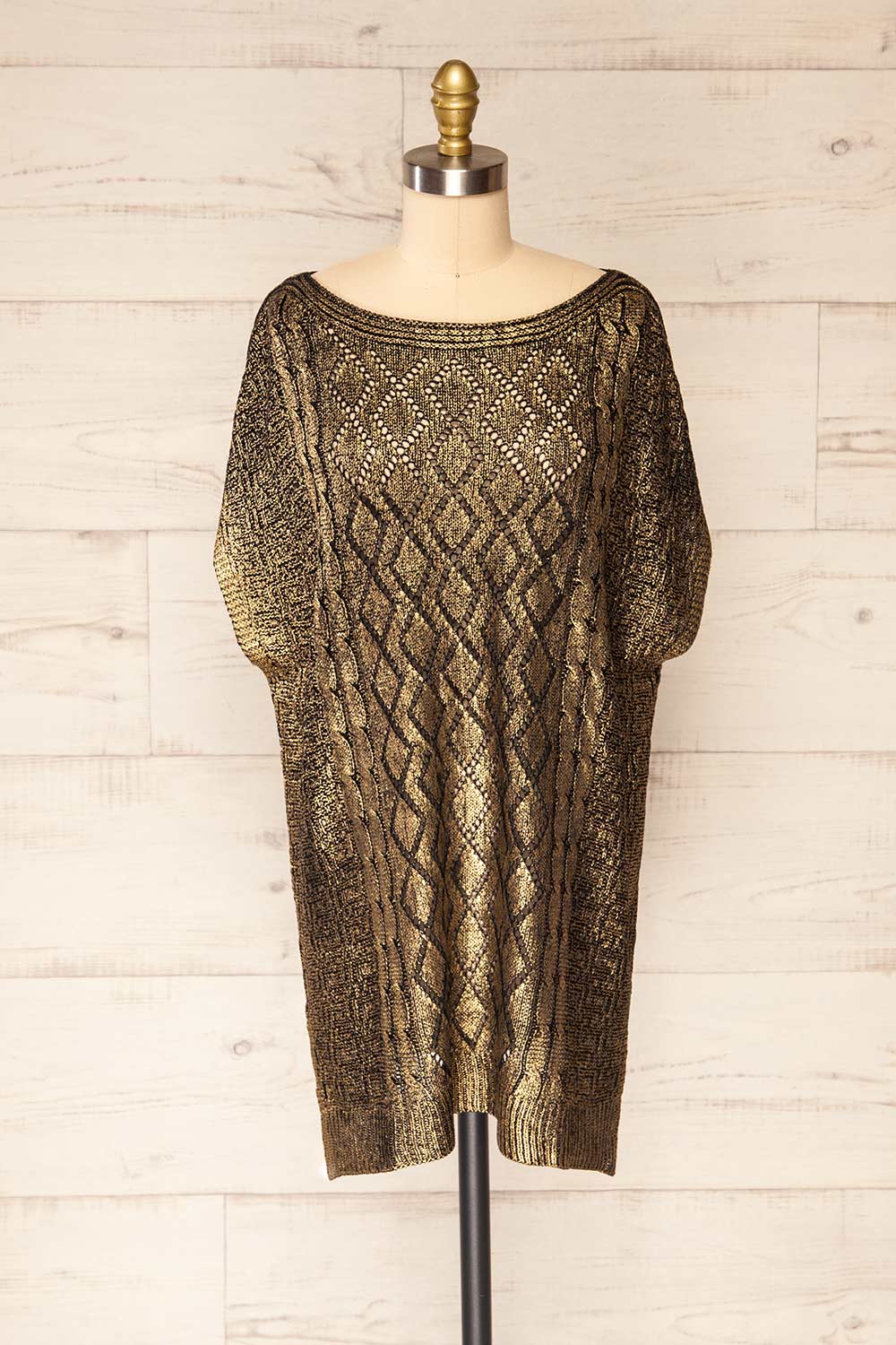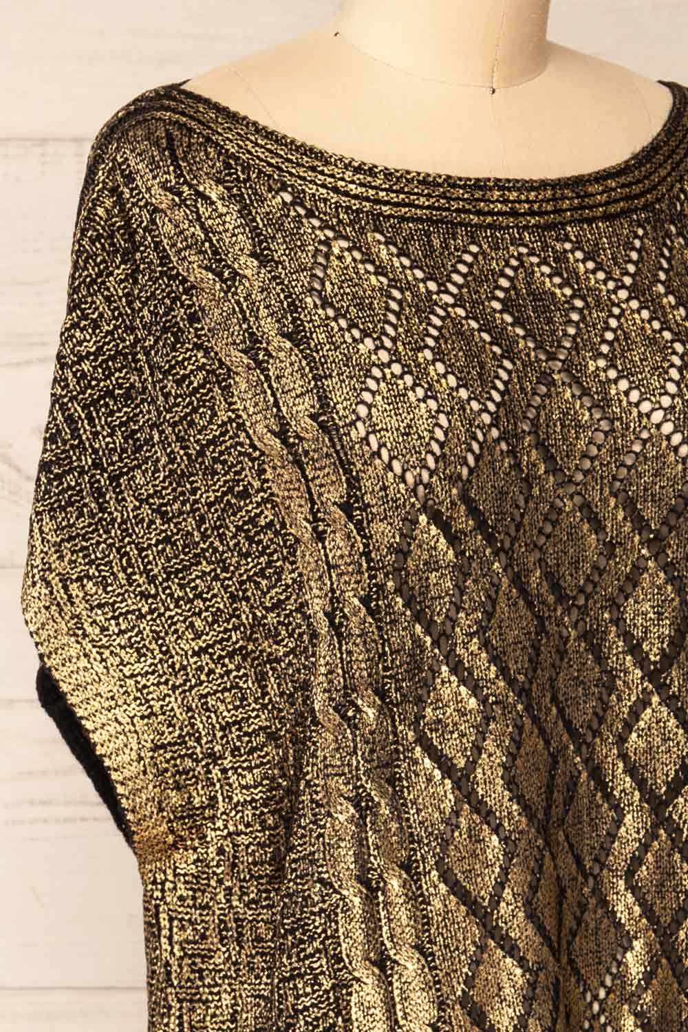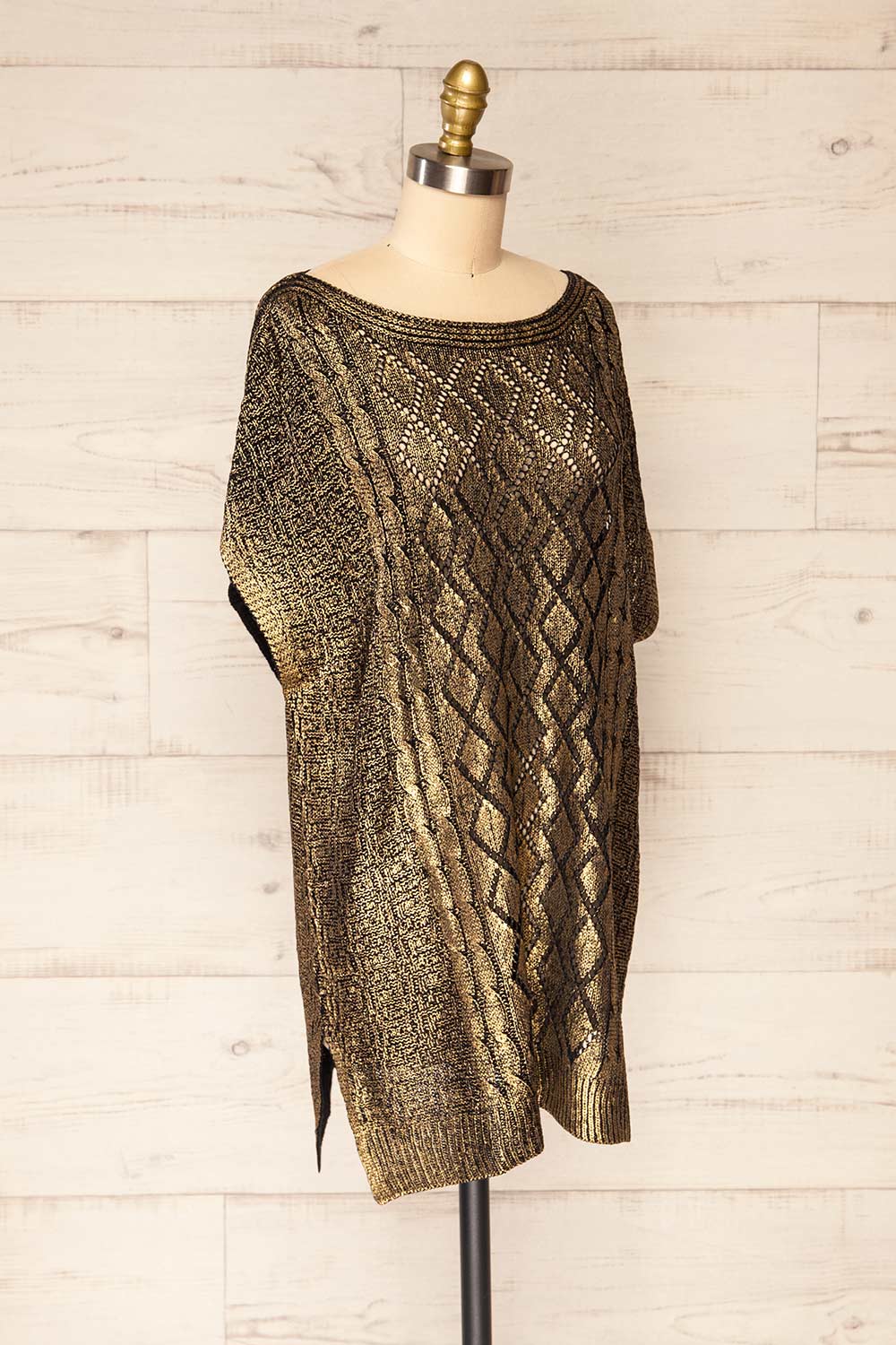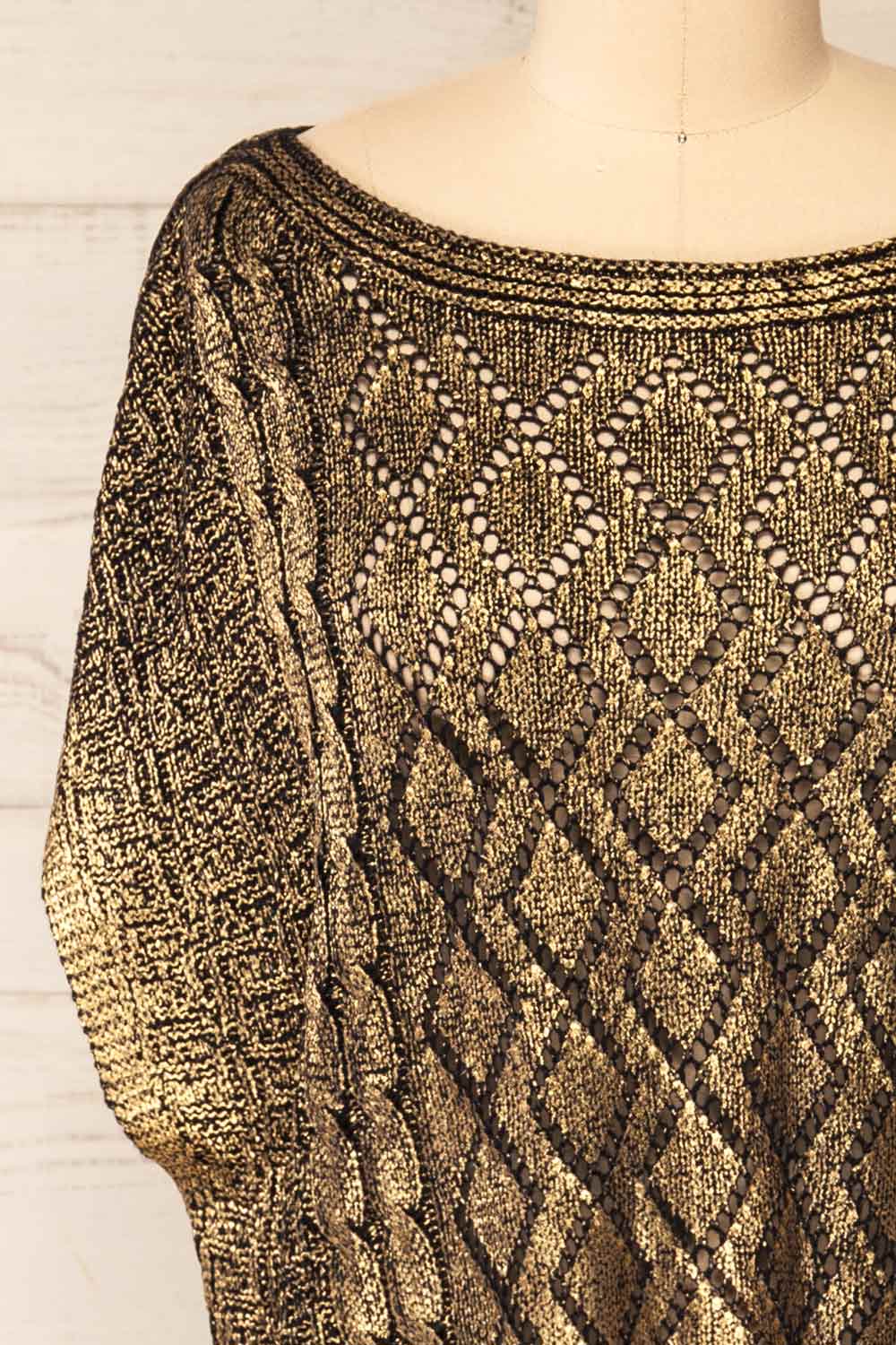 Cette blouse captivera tous les regards de tous ceux qui vous croiseront! Vous adorerez son motif ajouré et son tissu doré pour l'allure glamour qu'ils apporteront à votre tenue. Son col bateau ajoutera une touche chic alors que sa coupe ample vous permettra de bouger librement.