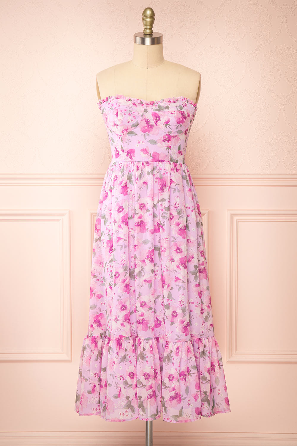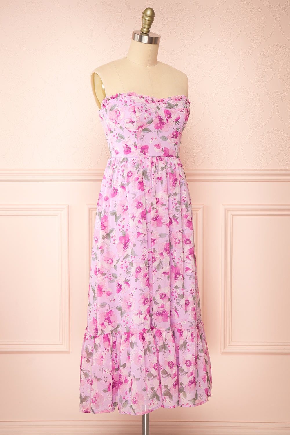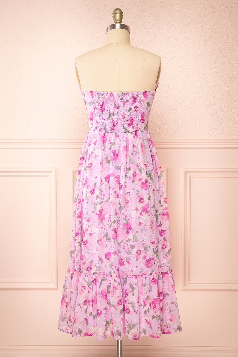 Eimi | Robe Midi Fleurie Rose à Bretelles Amovibles