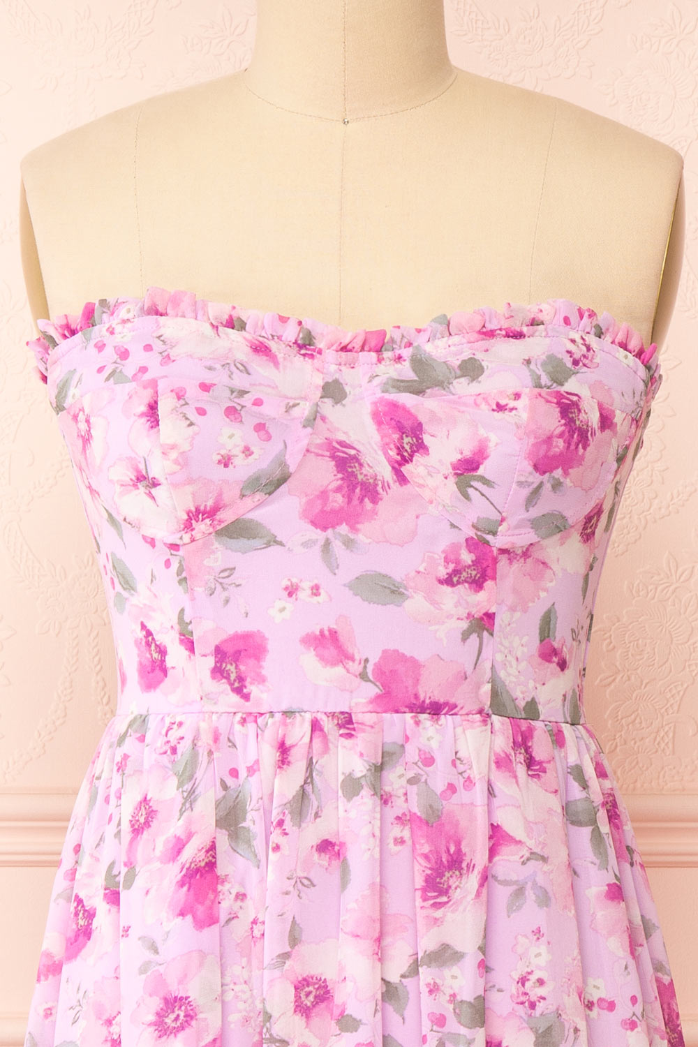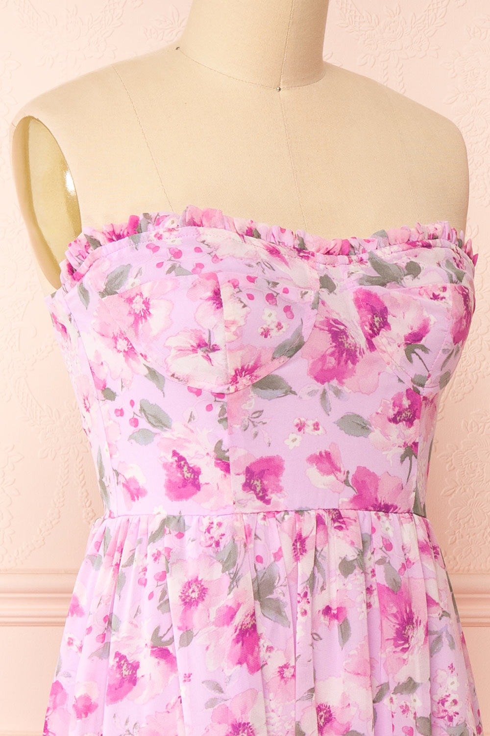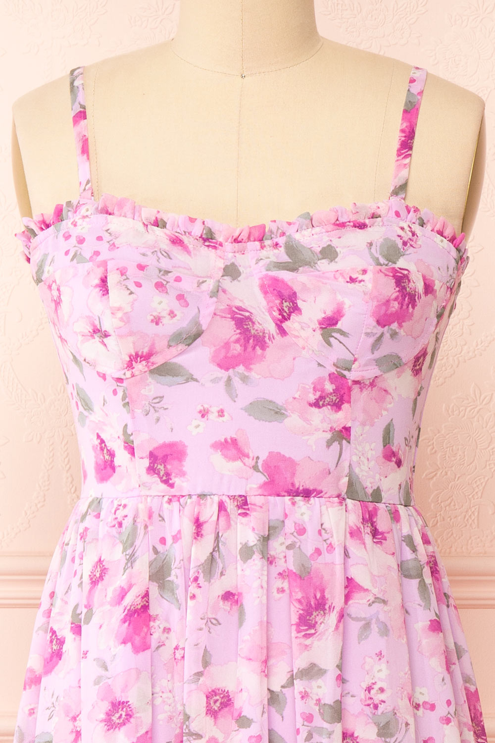 Eimi | Robe Midi Fleurie Rose à Bretelles Amovibles