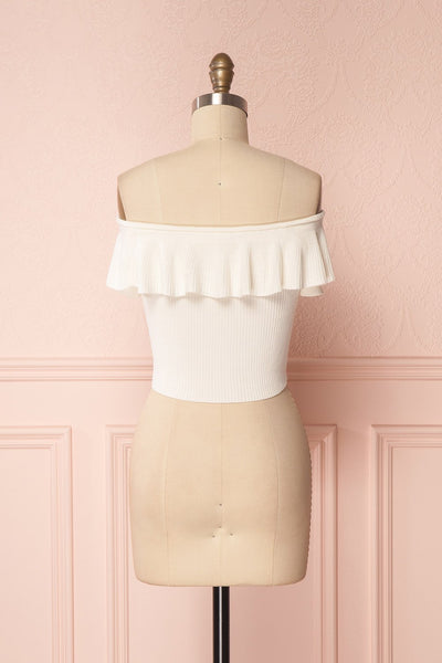 Add a warm touch to your summer outfits with this cropped top wich is as frivolous as it is cozy! The ribbed knit is ultra-stretchy and wraps your shapes in a comfortable way, while the open shoulders are embellished with an adorable flying detail.
