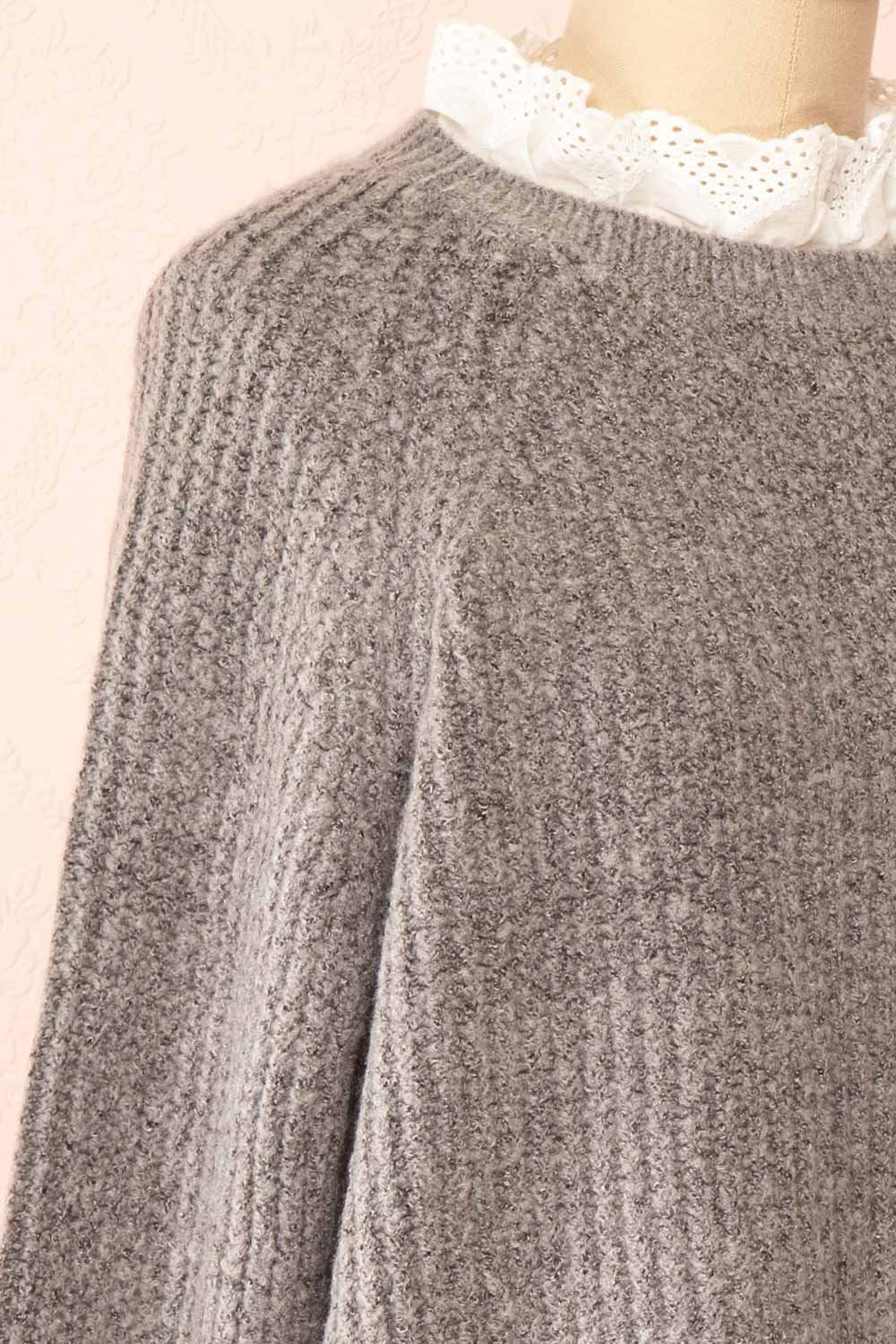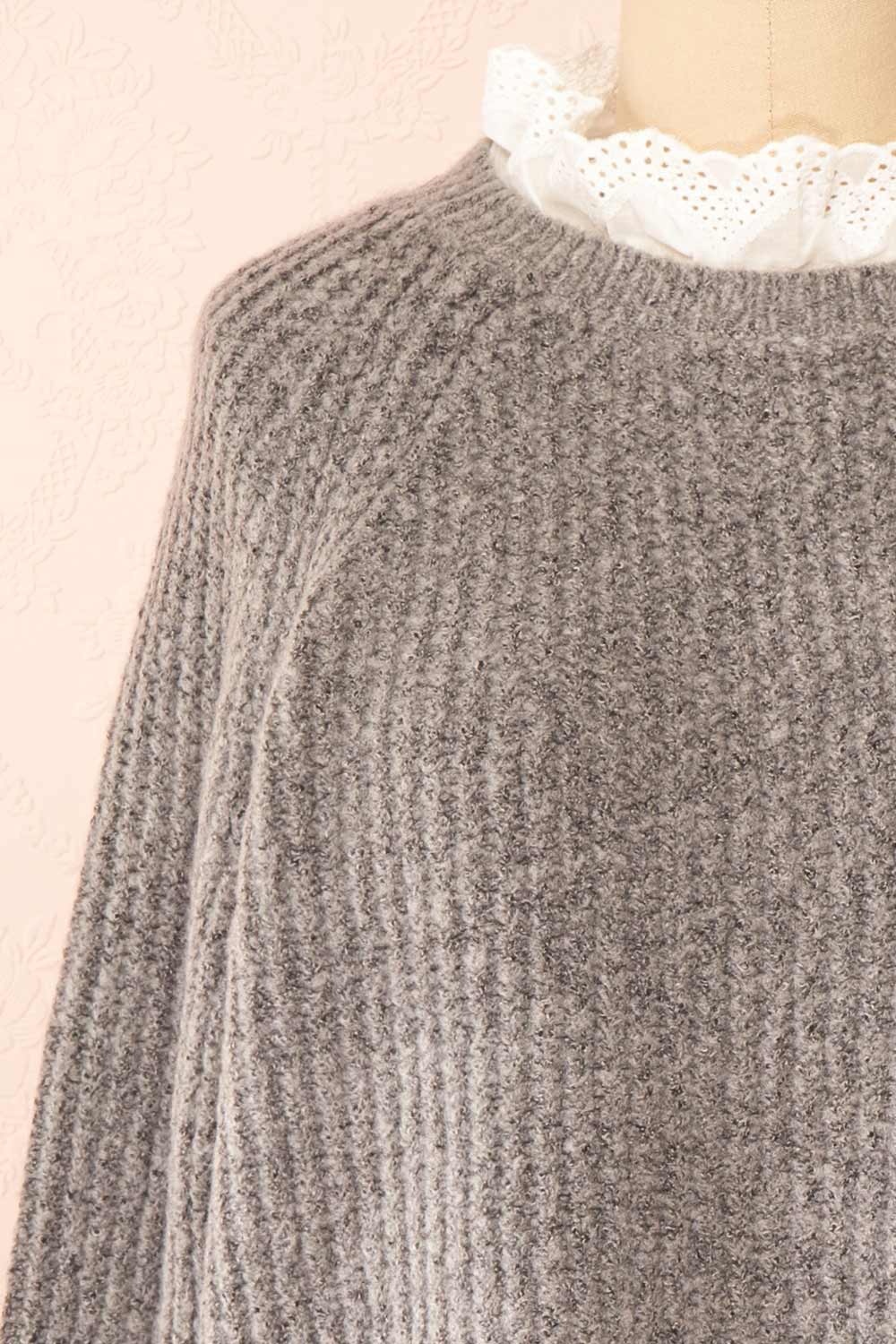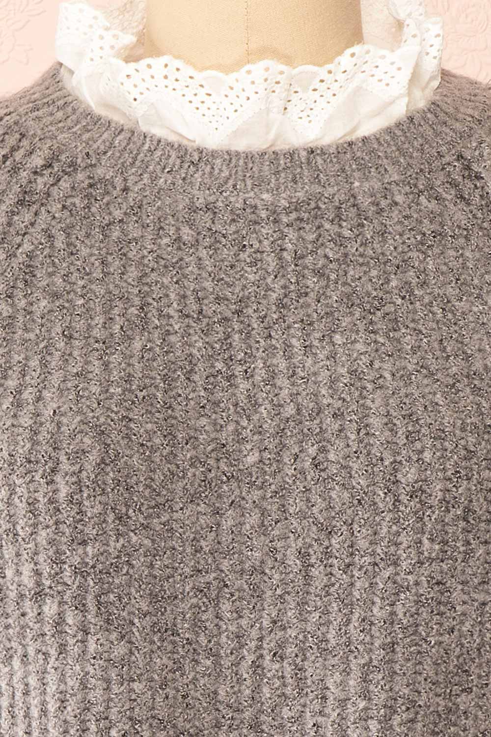 Eliona Gris | Chandail en Tricot à Col Brodé Ajouré
