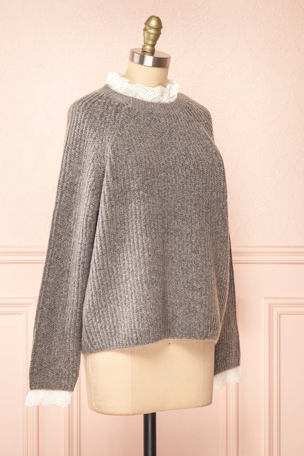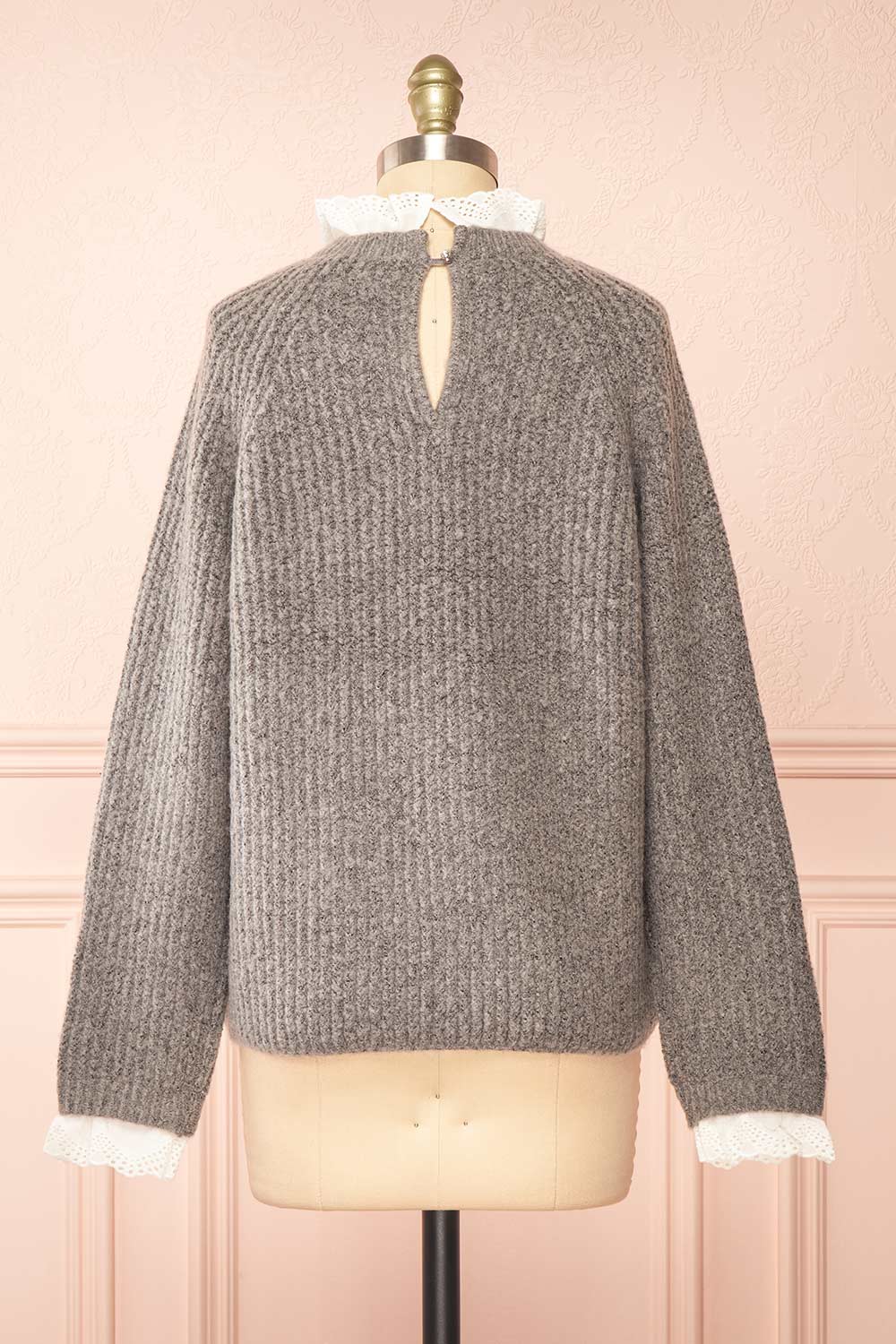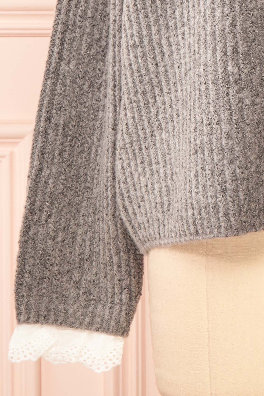 Eliona Gris | Chandail en Tricot à Col Brodé Ajouré