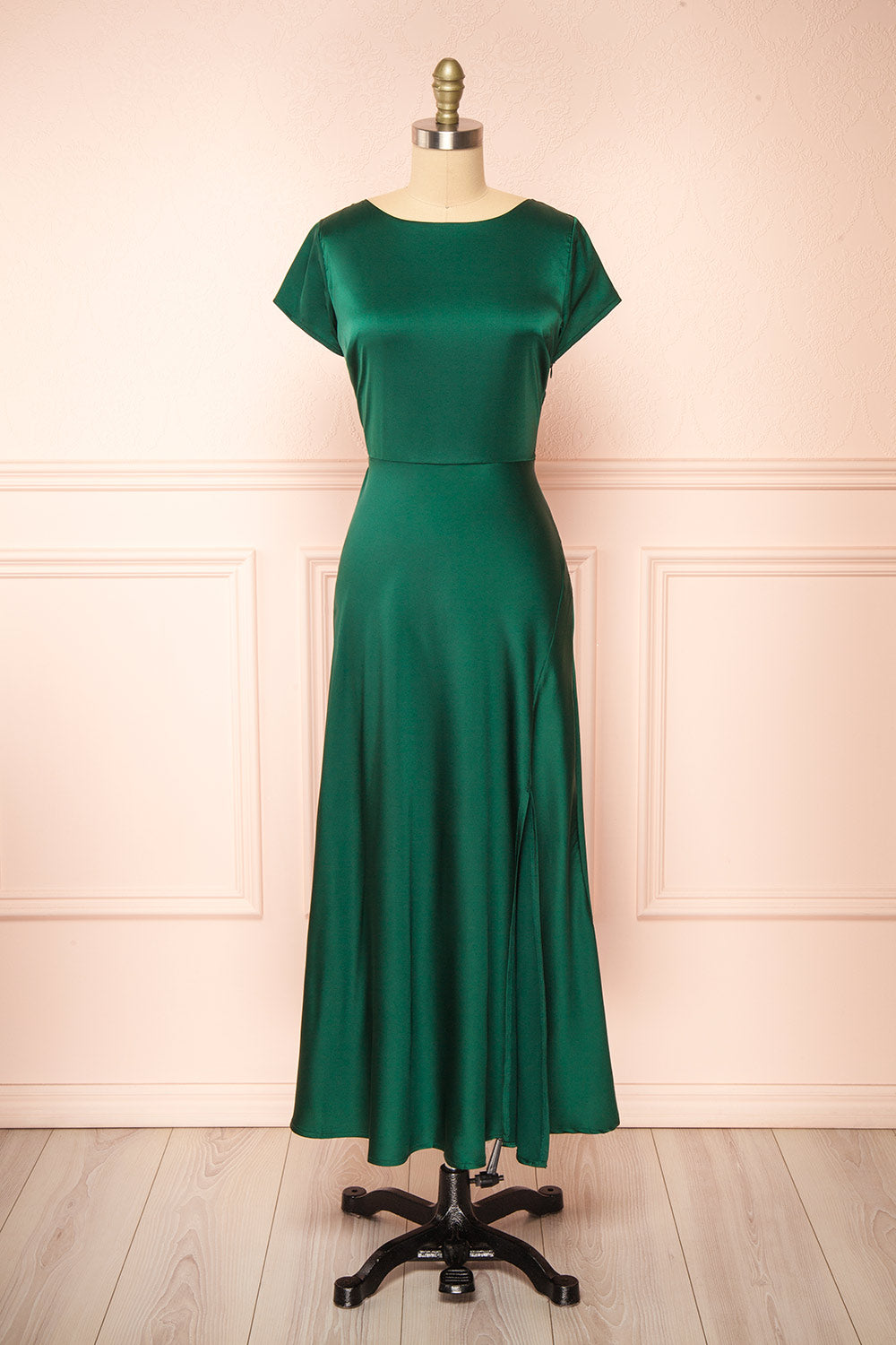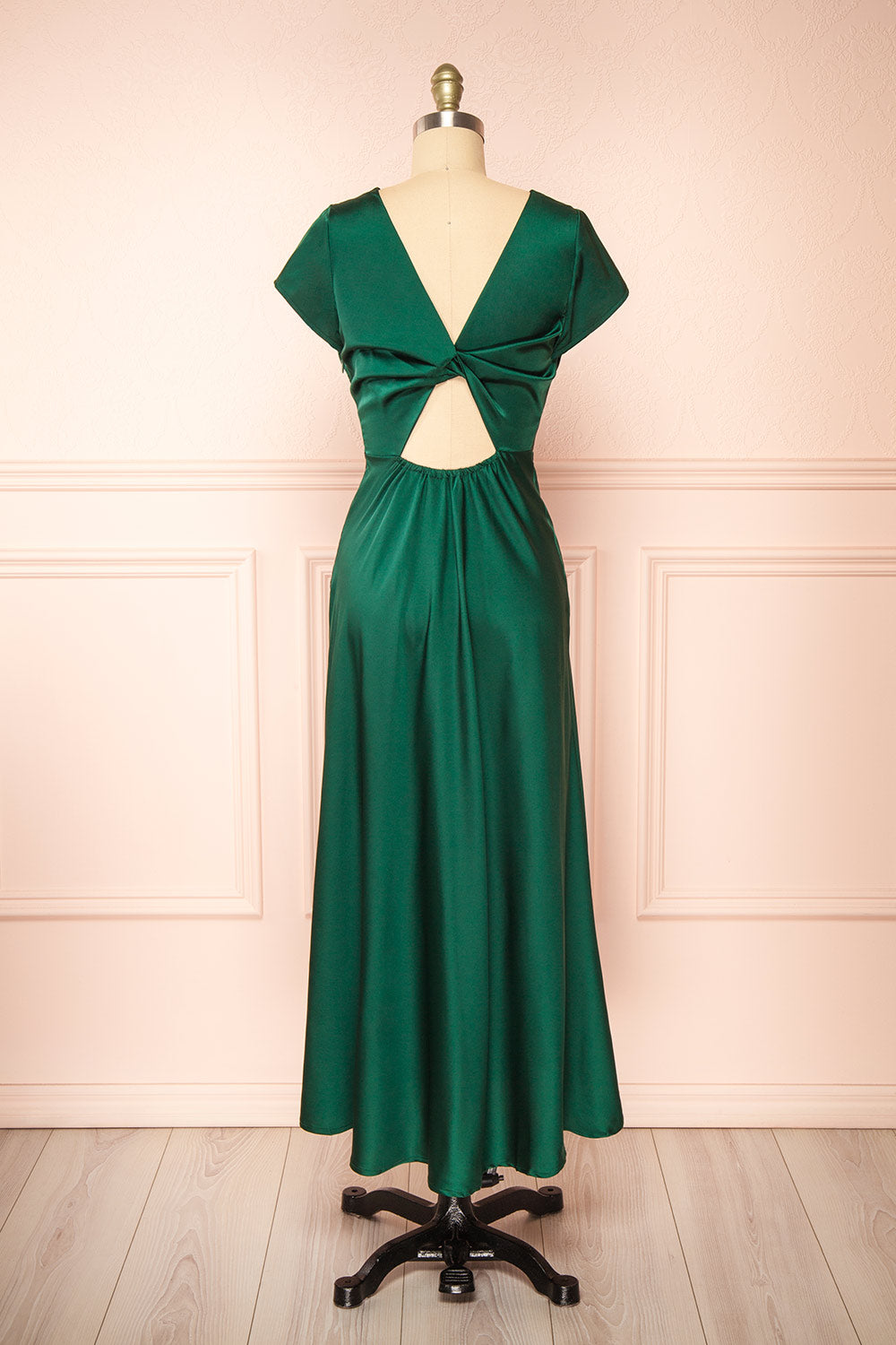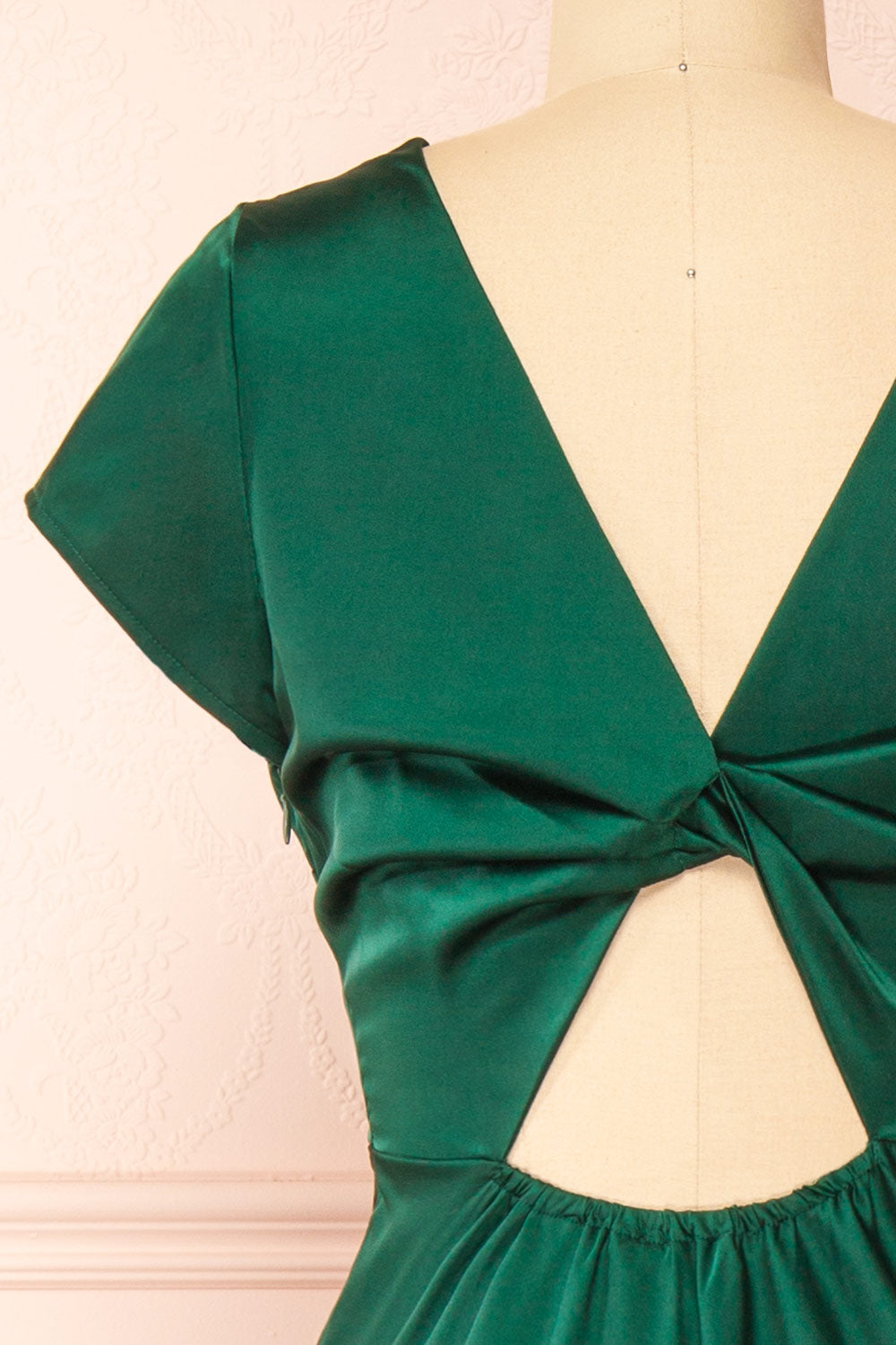 Elyrina Vert | Robe Midi Satinée à Ouverture au Dos
