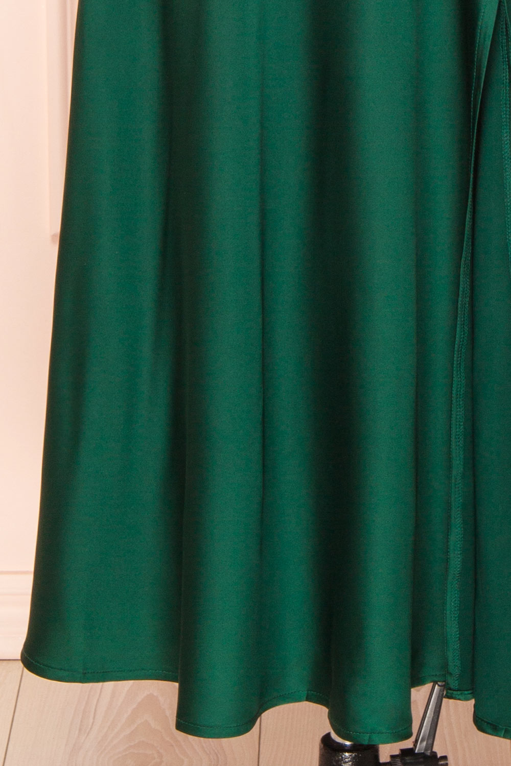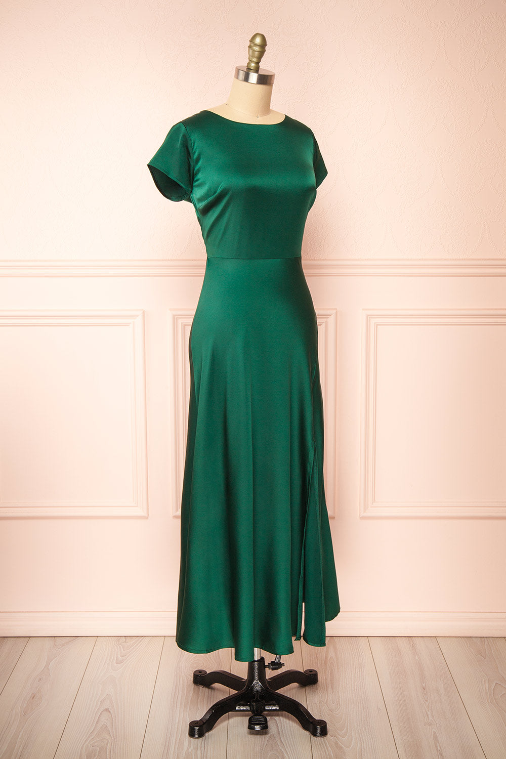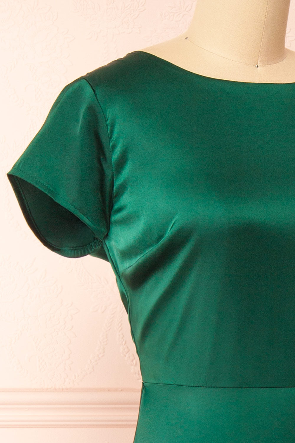 Elyrina Vert | Robe Midi Satinée à Ouverture au Dos