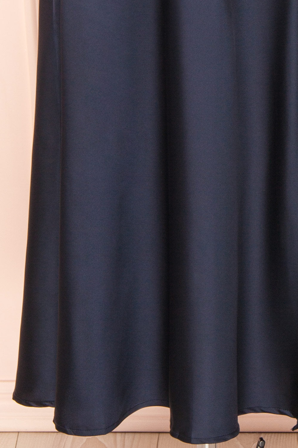 Elyrina Marine | Robe Midi Satinée à Ouverture au Dos