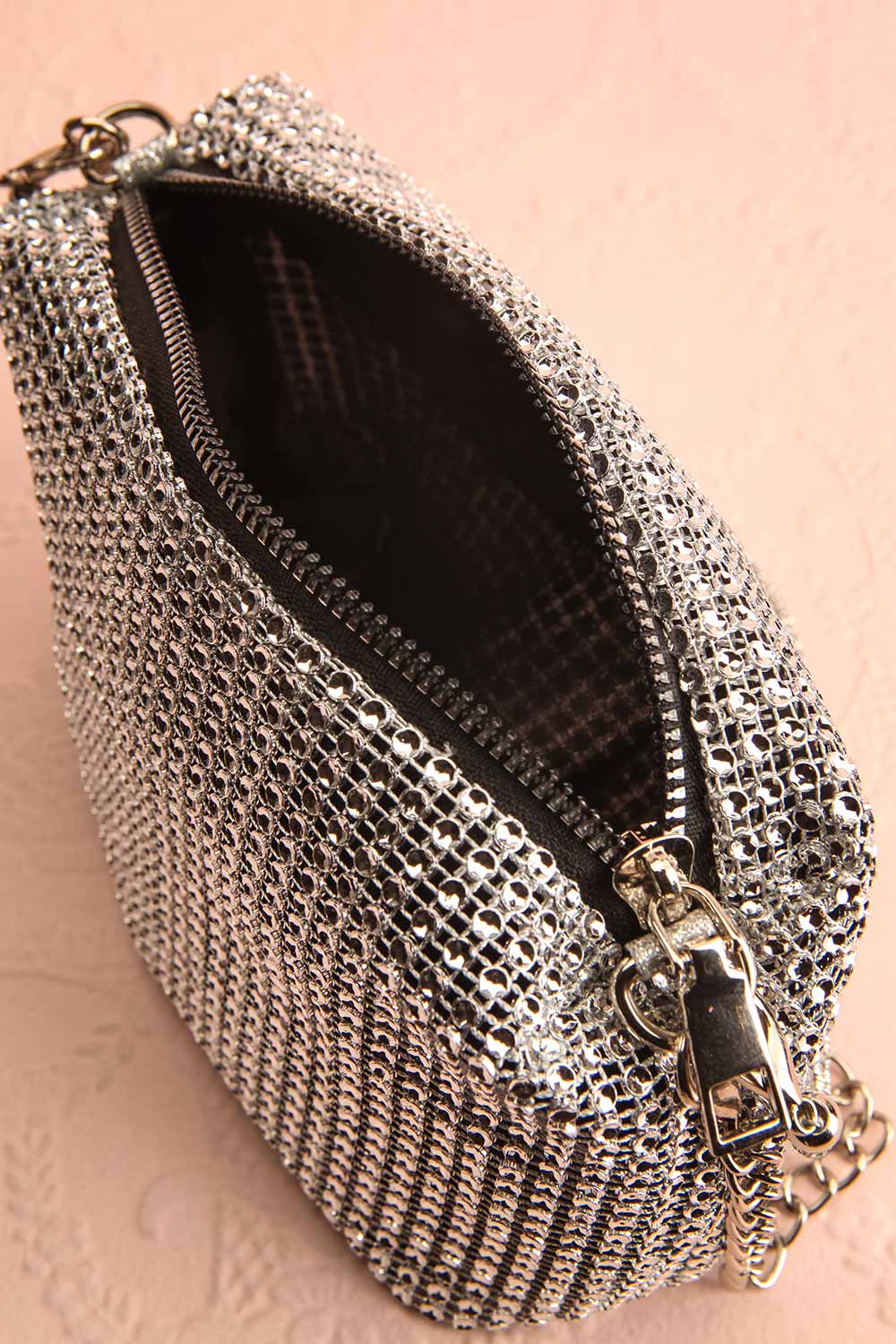 Ce petit sac est aussi splendide que pratique! Vous serez enchanté par sa surface métallique semblable à des cristaux scintillants attirera sans aucun doute l'attention! Muni de deux ganses amovibles, vous pourrez le porter en pochette, en sac à main ou en bandoulière. L'unique compartiment sera maintenu en sécurité grâce à la fermeture éclair.