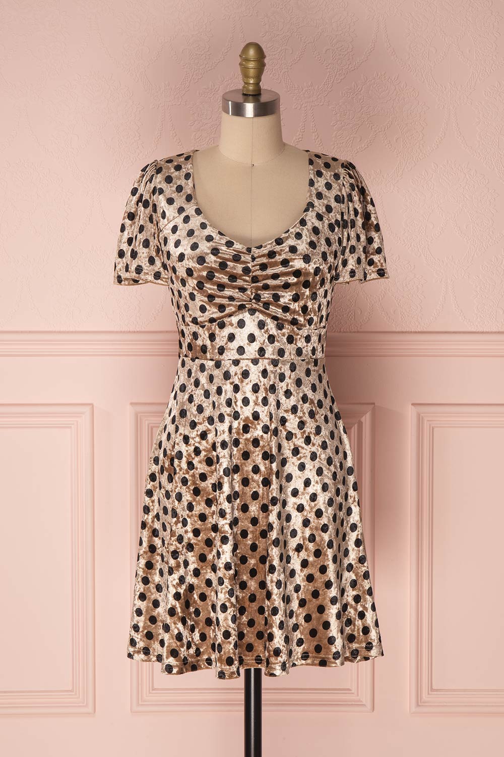 This flirty dress will carry you in its retro whirlpool! In addition to accentuating your figure, the A line cut is as adorable as it is comfortable with the soft and slightly stretchy fabric. Rock pearls, heels and lace socks to party in elegance!