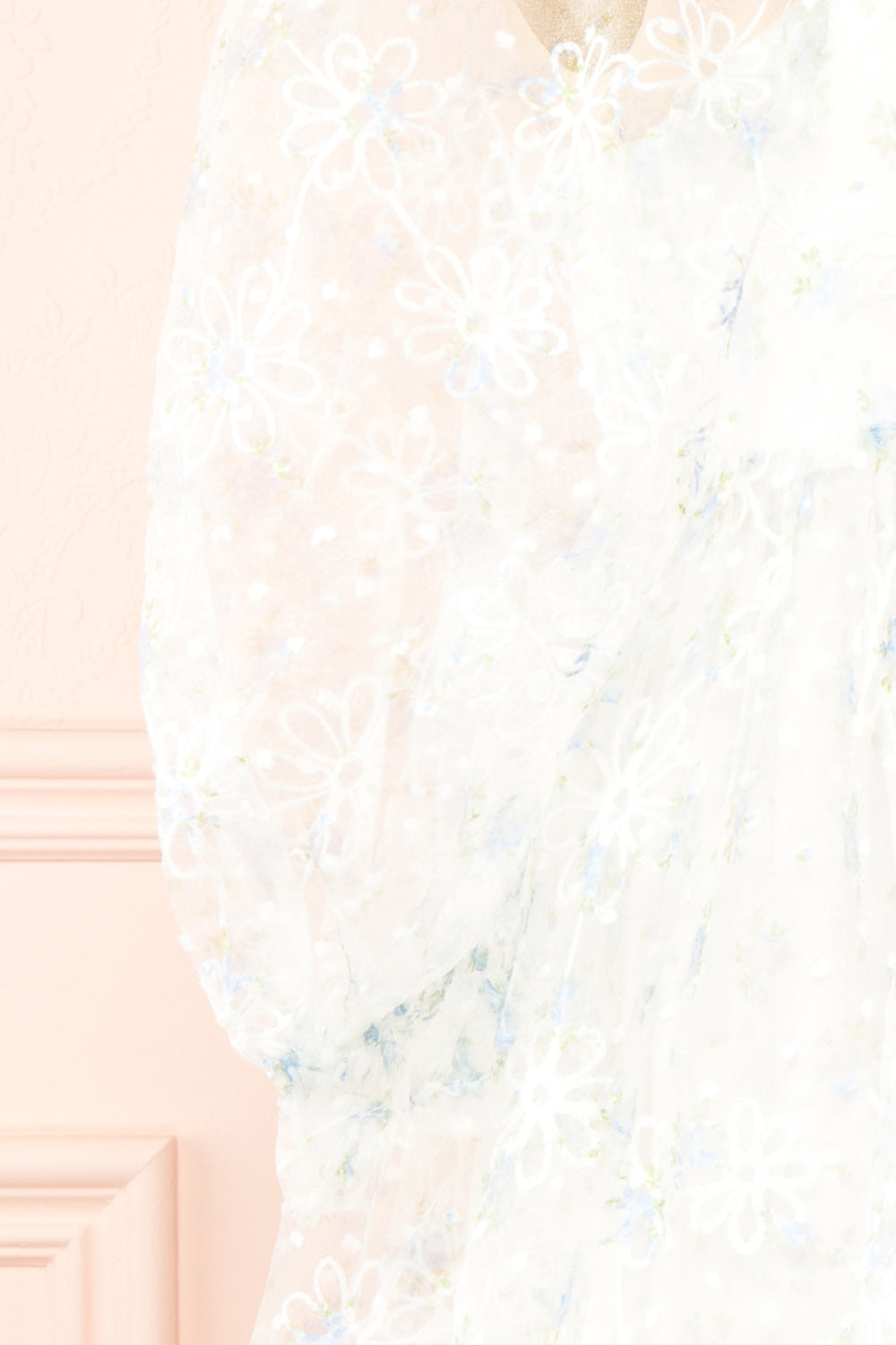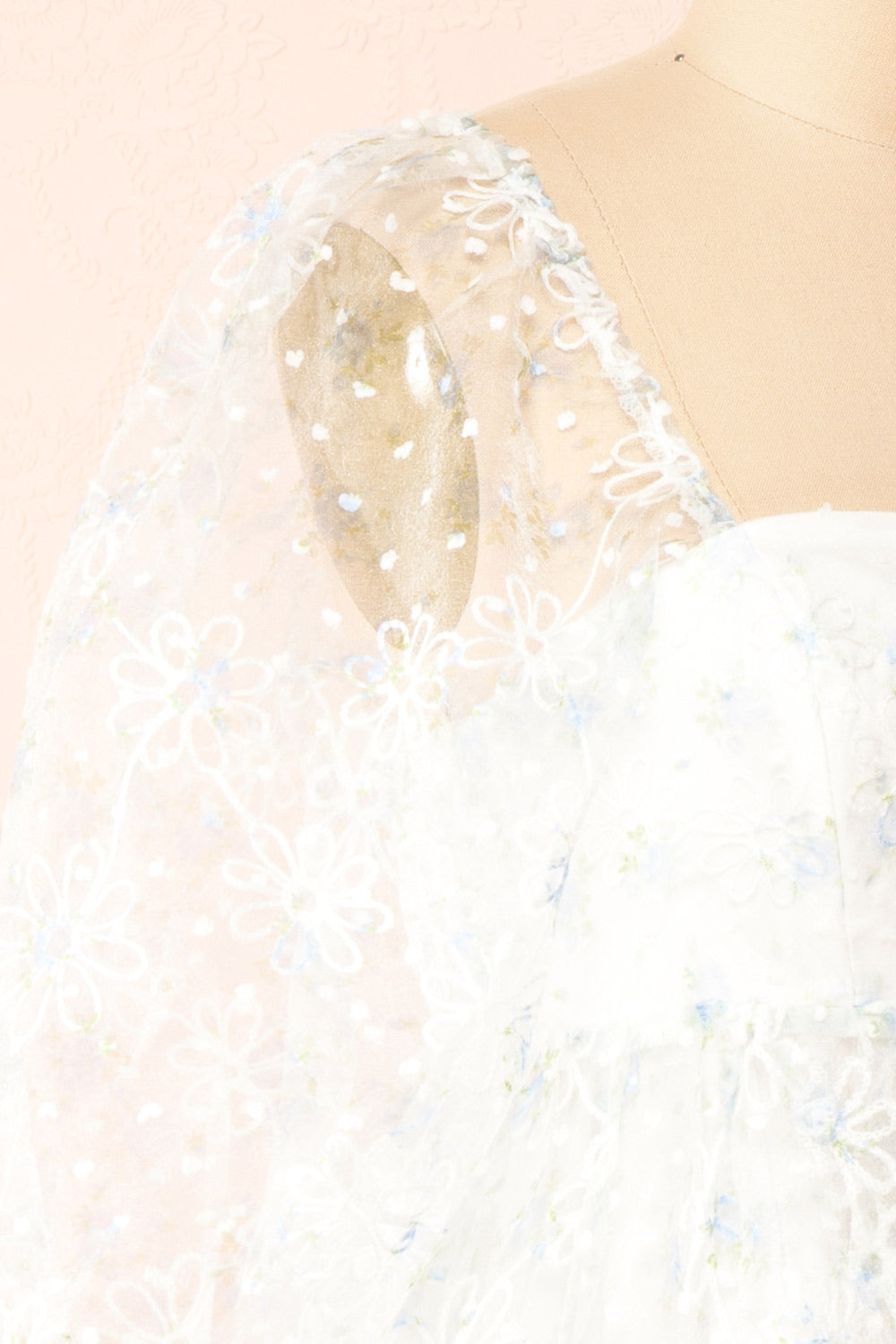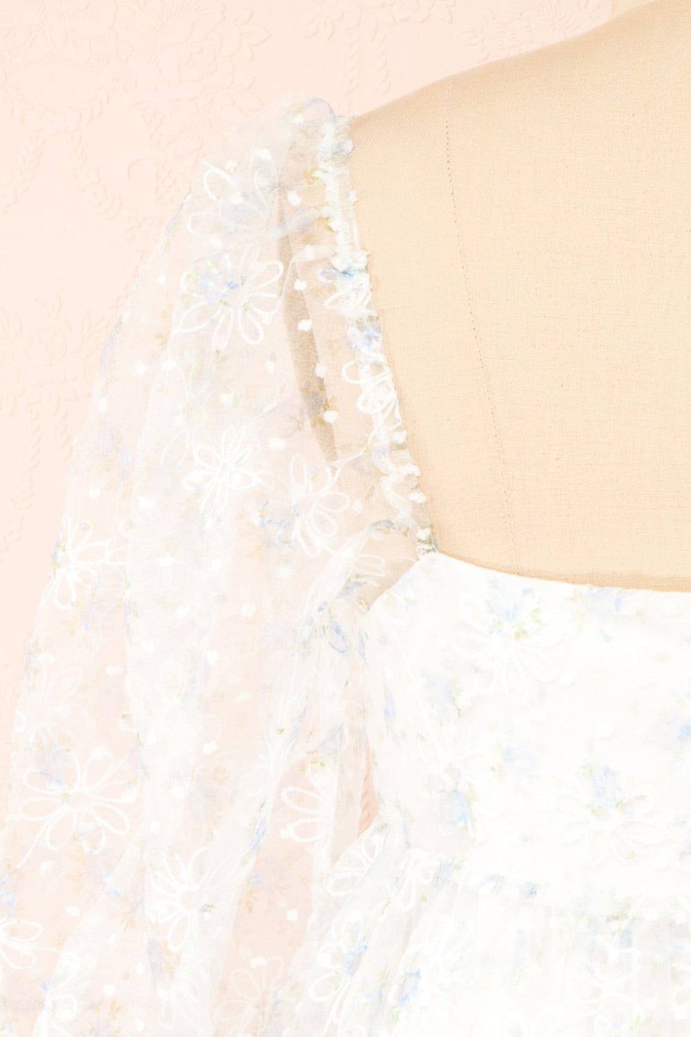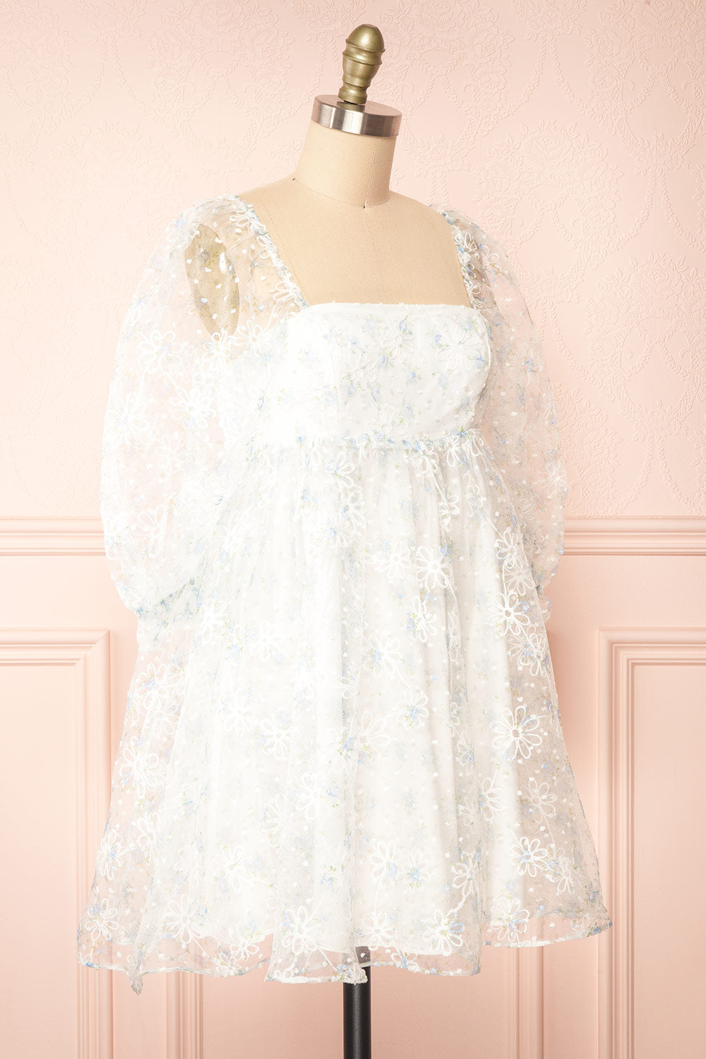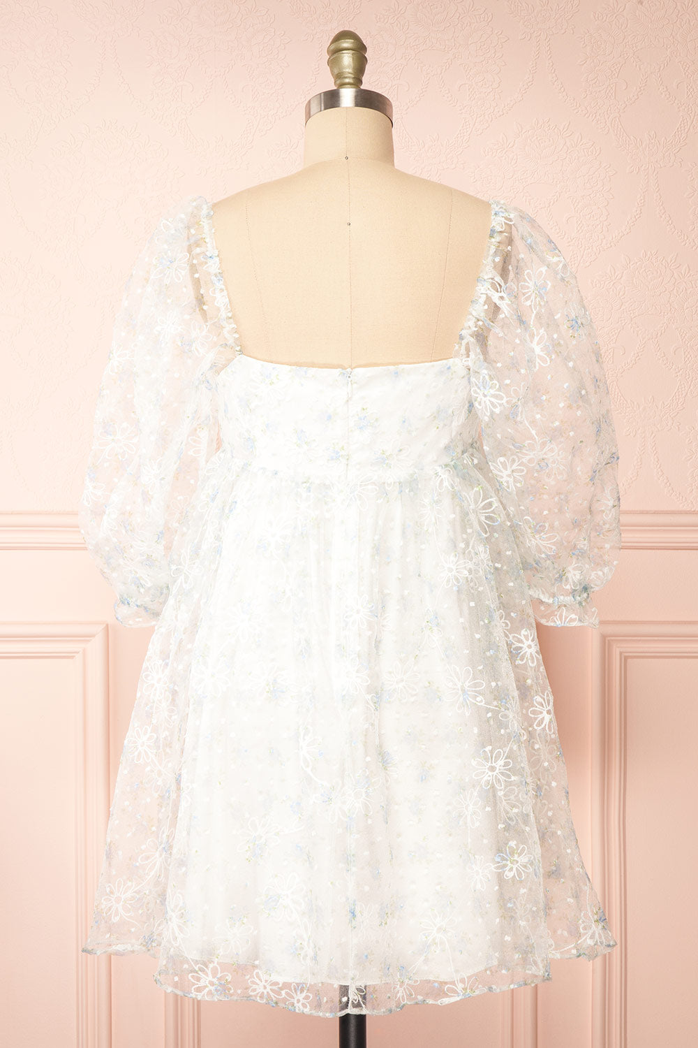 Vous aurez une allure de rêve dans cette magnifique robe babydoll avec un imprimé fleuri inspiré de l'aquarelle et de la broderie blanche! L'encolure carrée et la taille empire encadreront votre buste de manière séduisante. Les manches 3/4 bouffantes translucides ajouteront du volume à la pièce tout en vous permettant de bouger librement. Le ton neutre de cette robe est parfait pour toute saison et tout accessoire!