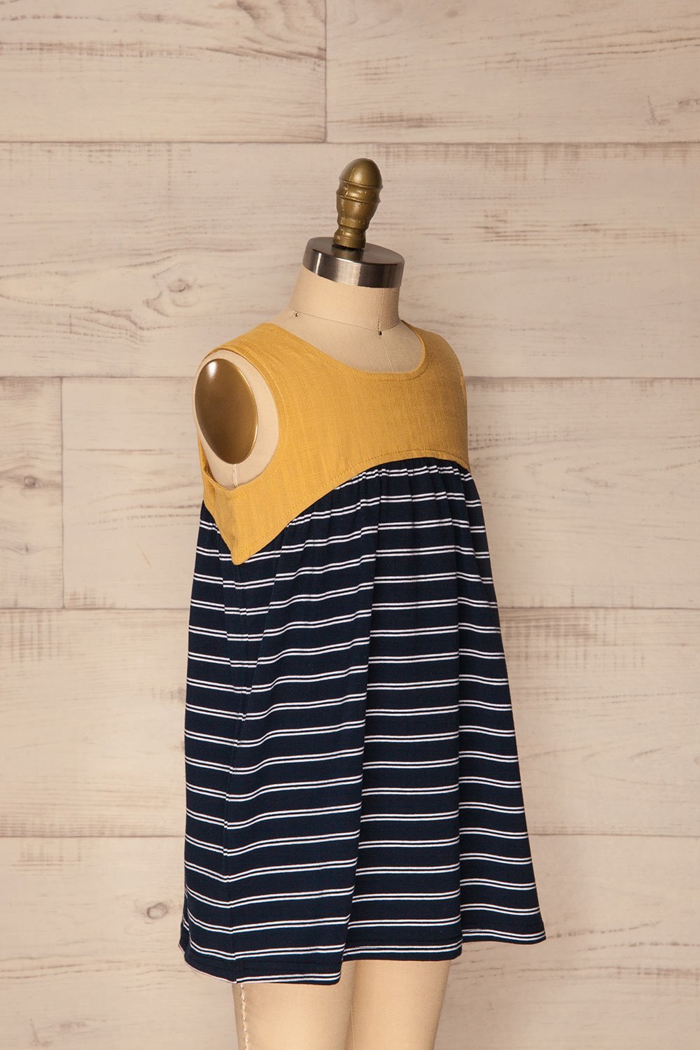 Votre petit trésor appréciera cette robe autant que vous! L'alliance des rayures et du haut en lin jaune moutarde est le mélange parfait entre styles classique et tendance. Les boutons au dos la rendent facile à enfiler, tandis que la coupe ample fait d'un tissu extensible permettra à votre petit d'apprécier toutes ses activités préférées!