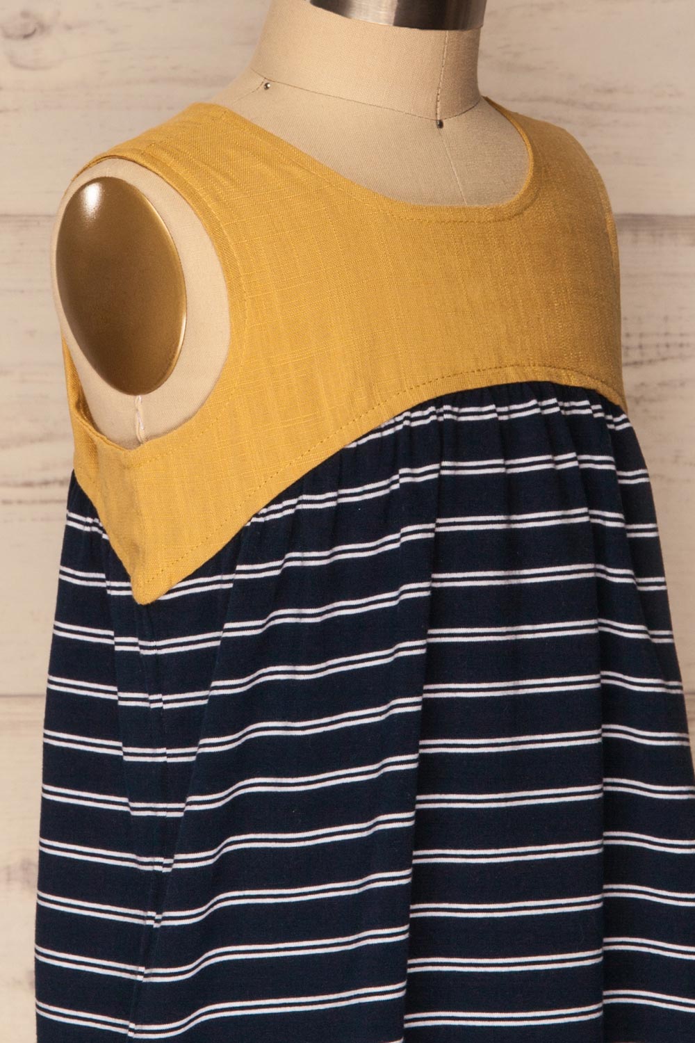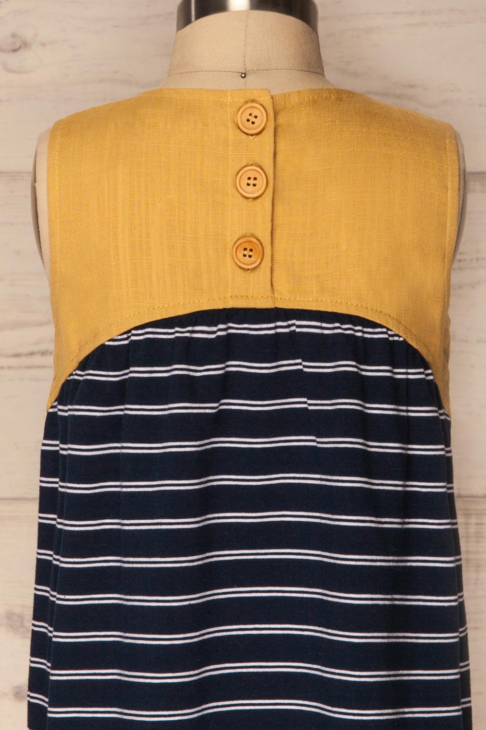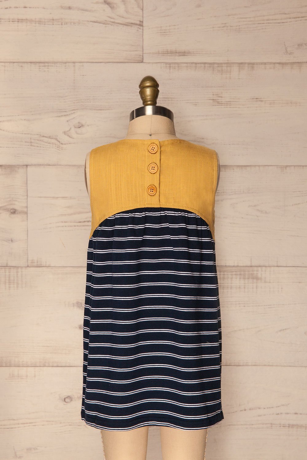 Your little one will love this dress as much as you will! Featuring stripes and a mustard yellow linen top, it's the perfect blend between classic and trendy styles this fall. Buttons at the back make it easy to slip on, while the jersey material throughout the loosely fitting bodice and skirt ensures your little treasure can enjoy all their favourite activities!