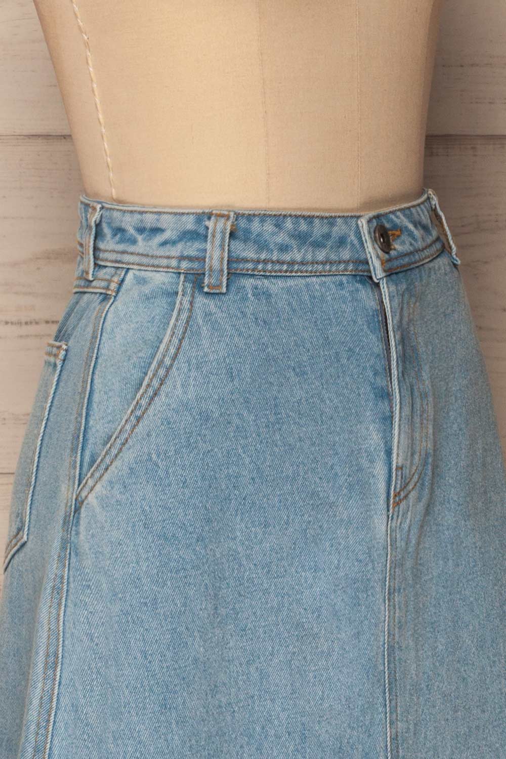 This classic midi denim skirt will stylishly complete your everyday outfits! Right out of the 1970s, the high-waisted A-line cut will highlight your silhouette. The four pockets and the zipper and button closure will prove practical.