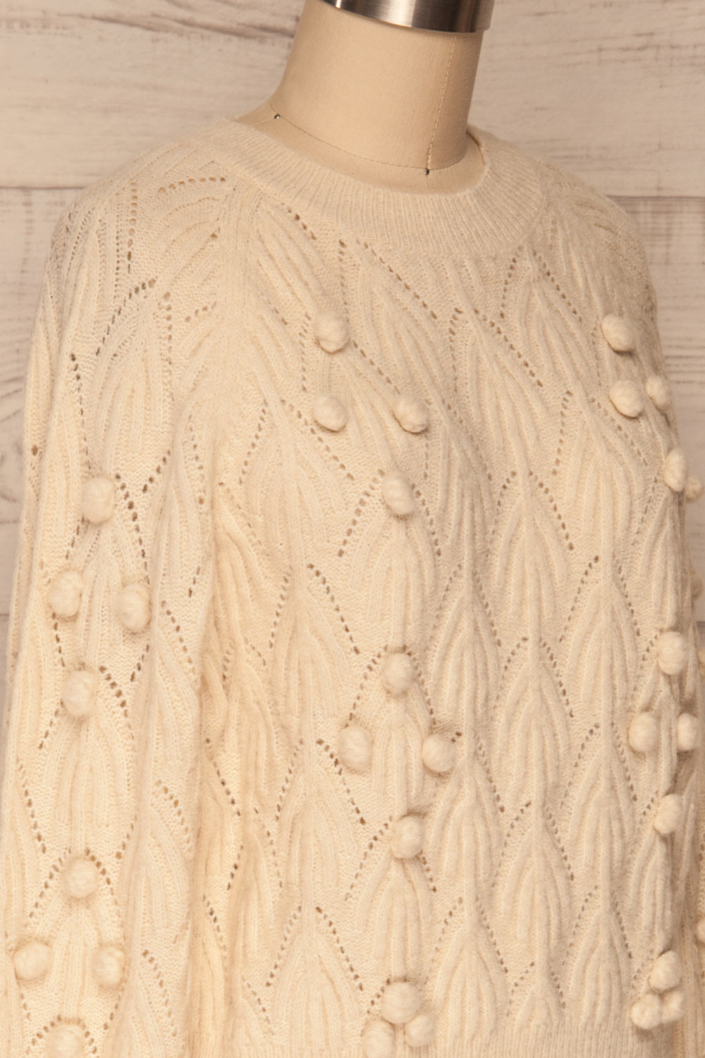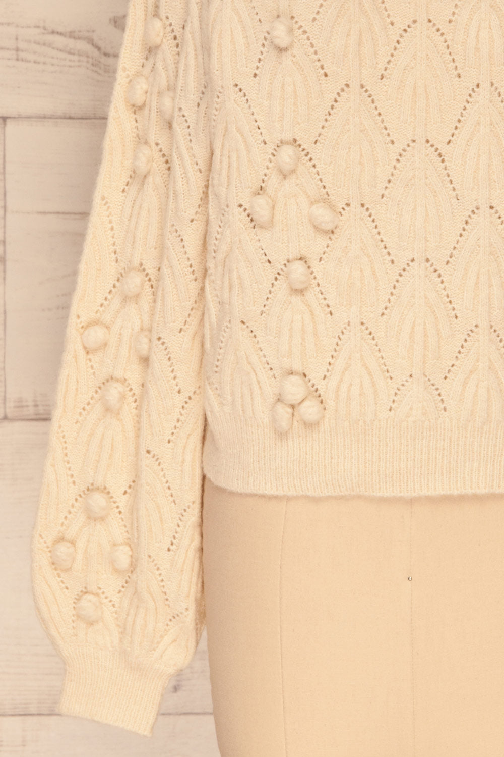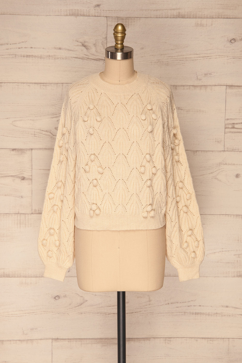 You'll be ready to brave the cold breezes with this cozy sweater! You'll adore its soft and stretchy knit, as well as its pompoms that add a fun quality to the piece. Add black pants and boots for a simple and cute outfit, perfect for fall!