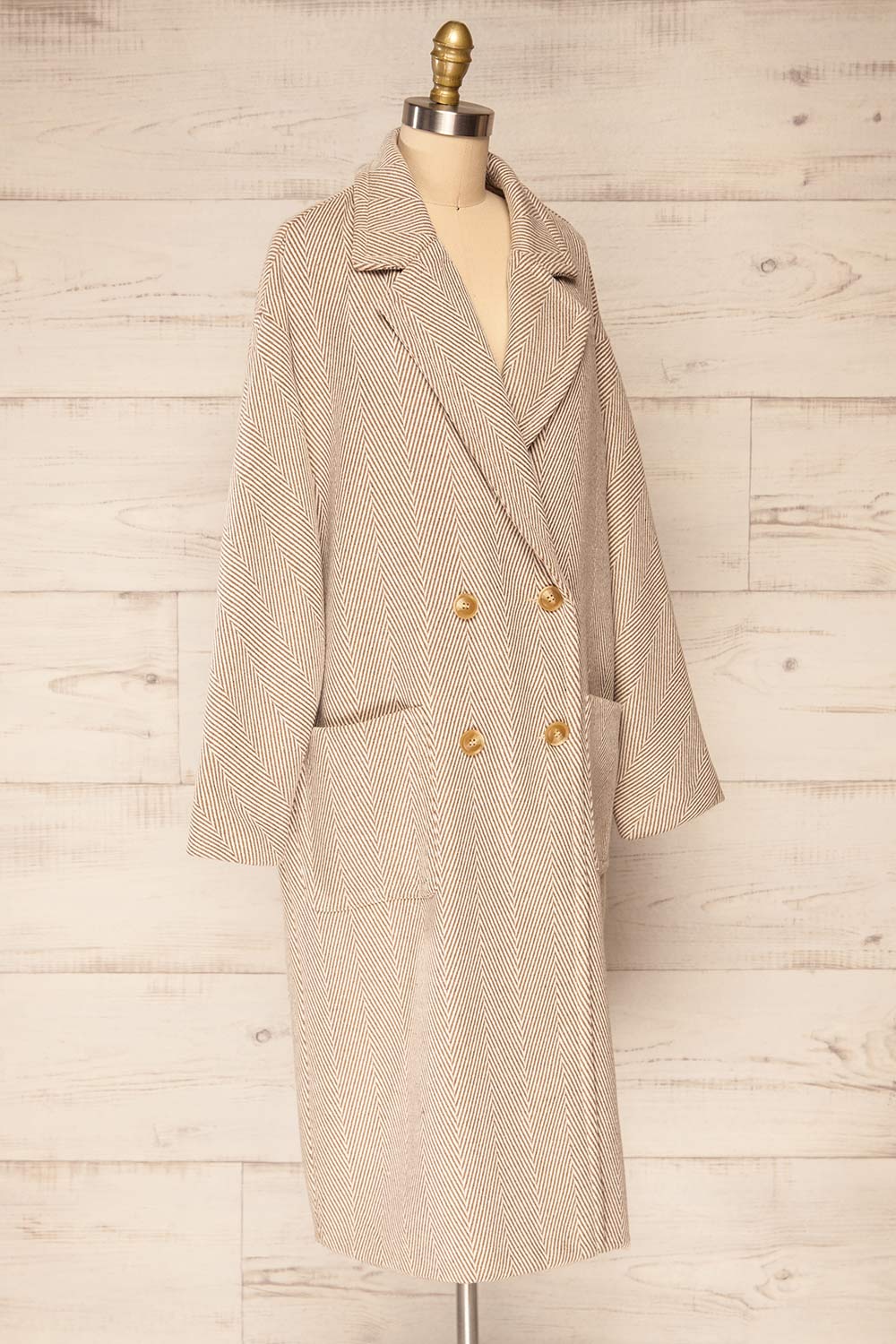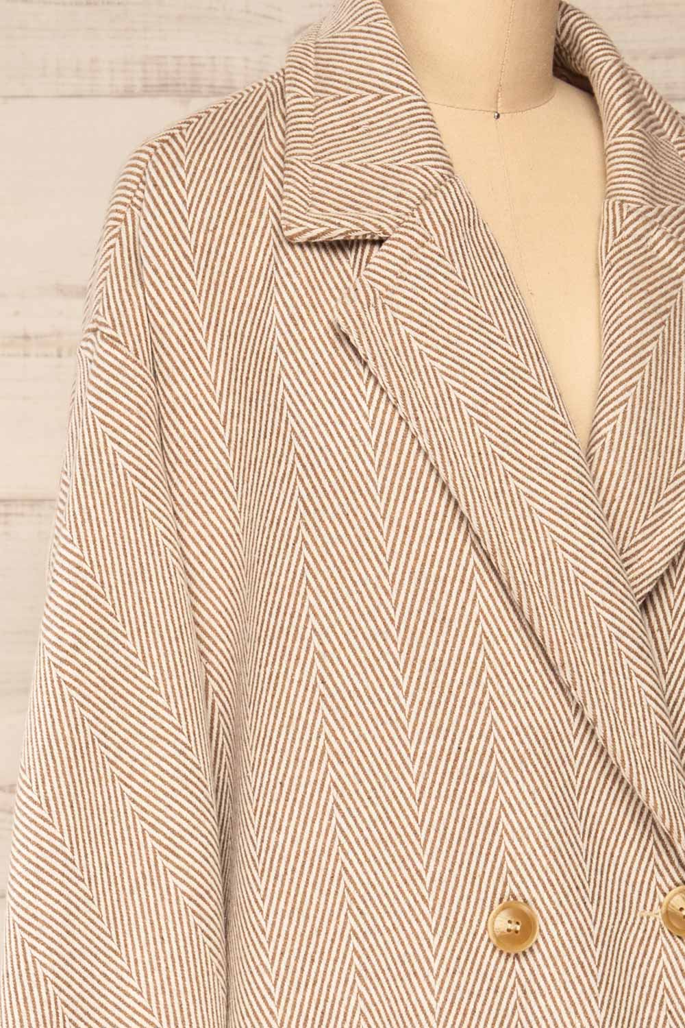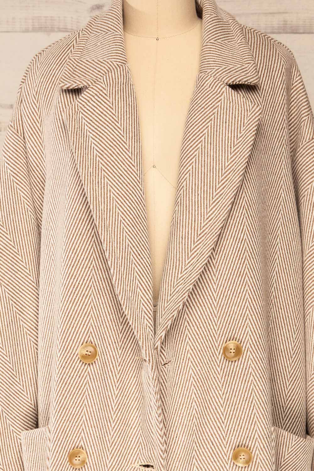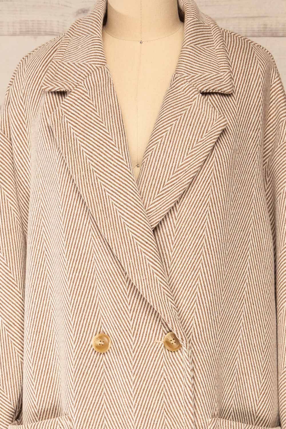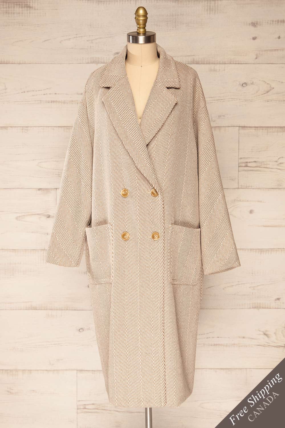 Ce ravissant manteau en feutre vous gardera au chaud de façon stylée! Son motif subtil lui donnera un charme indéniable alors que sa coupe légèrement surdimensionnée vous offrira la chance de le porter par-dessus tous vos tricots favoris. Son double boutonnage avant vous permettra de le porter ouvert comme fermé, alors que ses larges poches s’avéreront utiles pour y mettre vos petits essentiels.