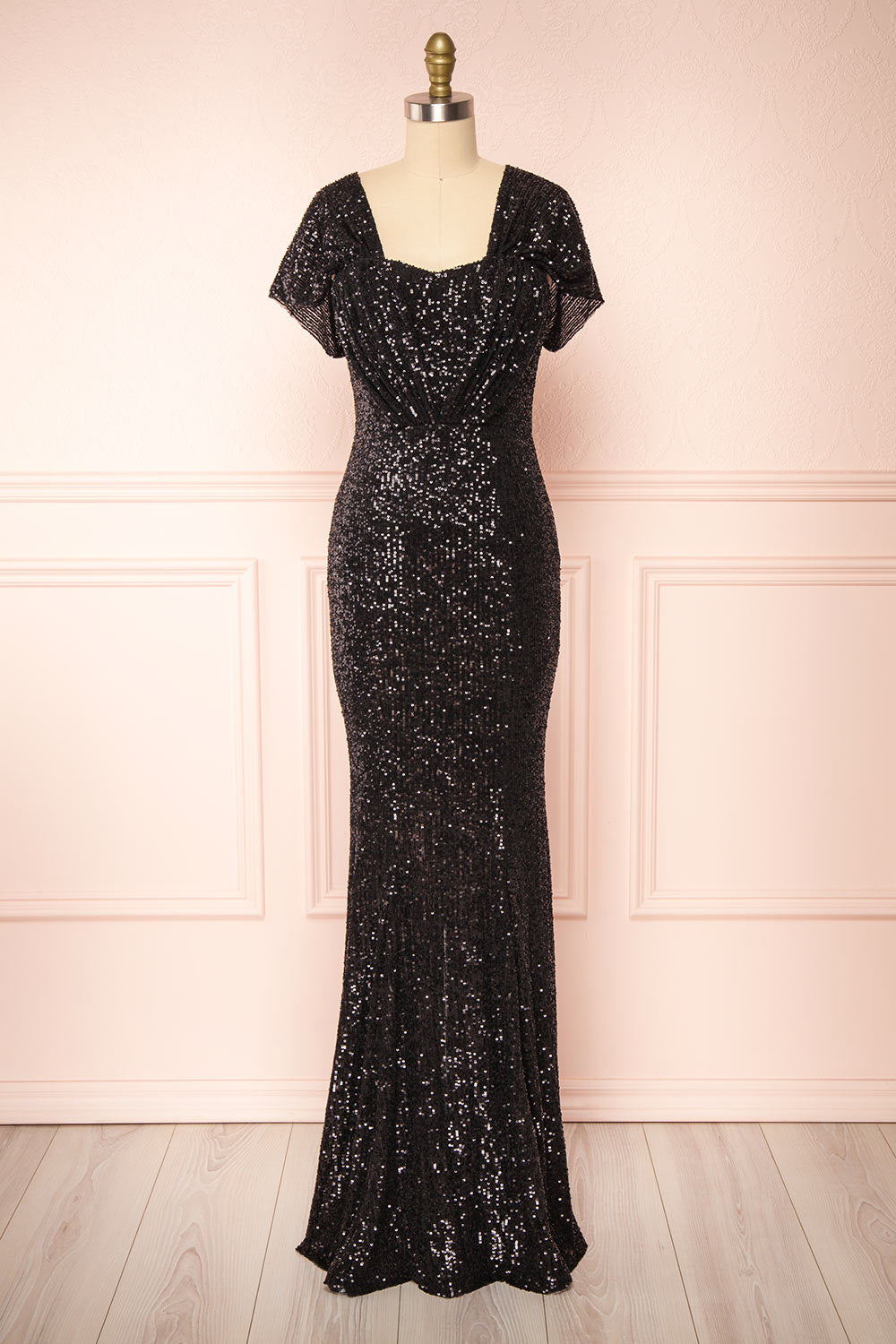 Felisa Noir | Robe Maxi Plissée à Paillettes