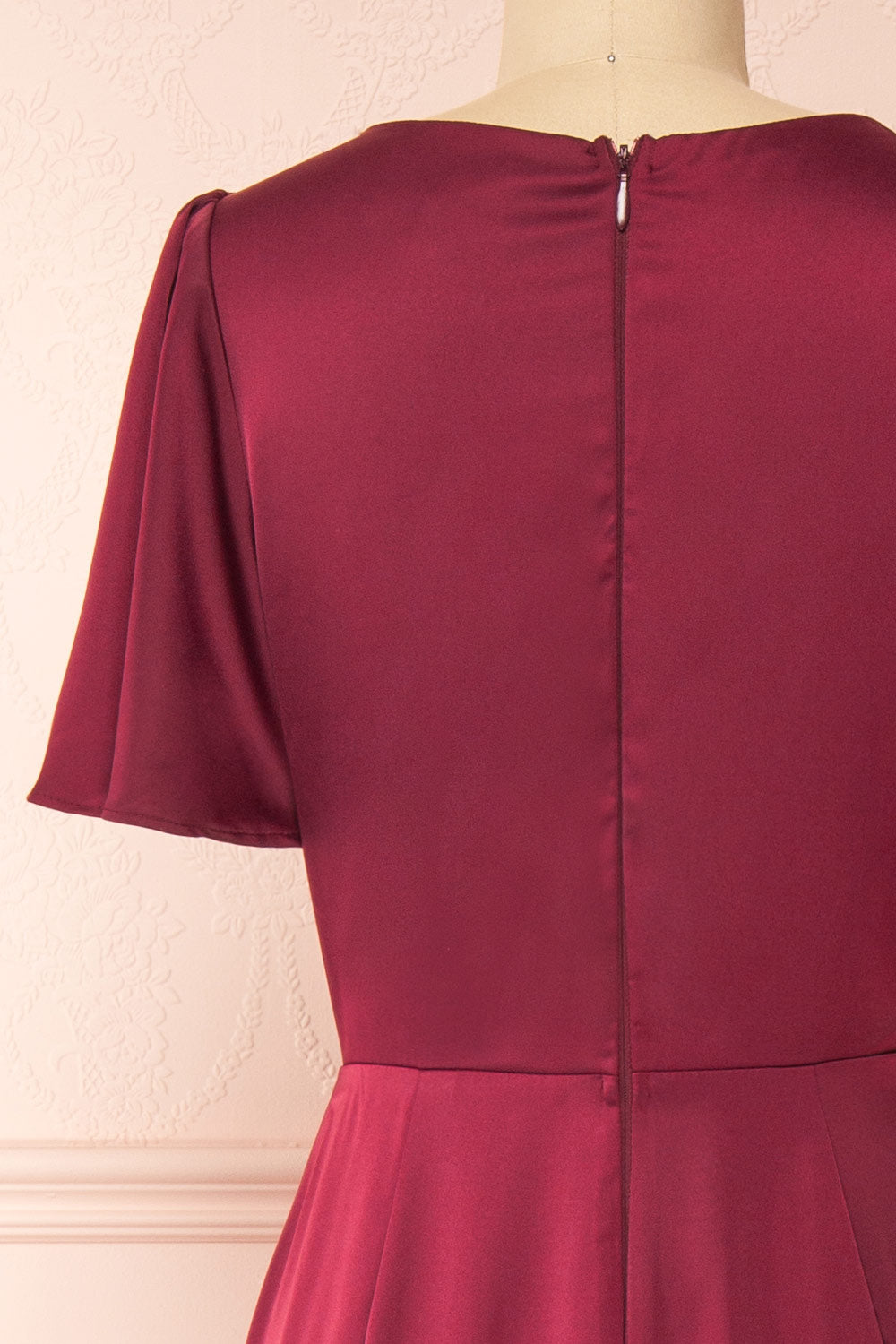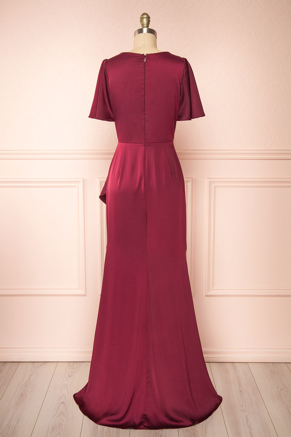 Fiarah | Robe Maxi Satinée Bourgogne à Volants