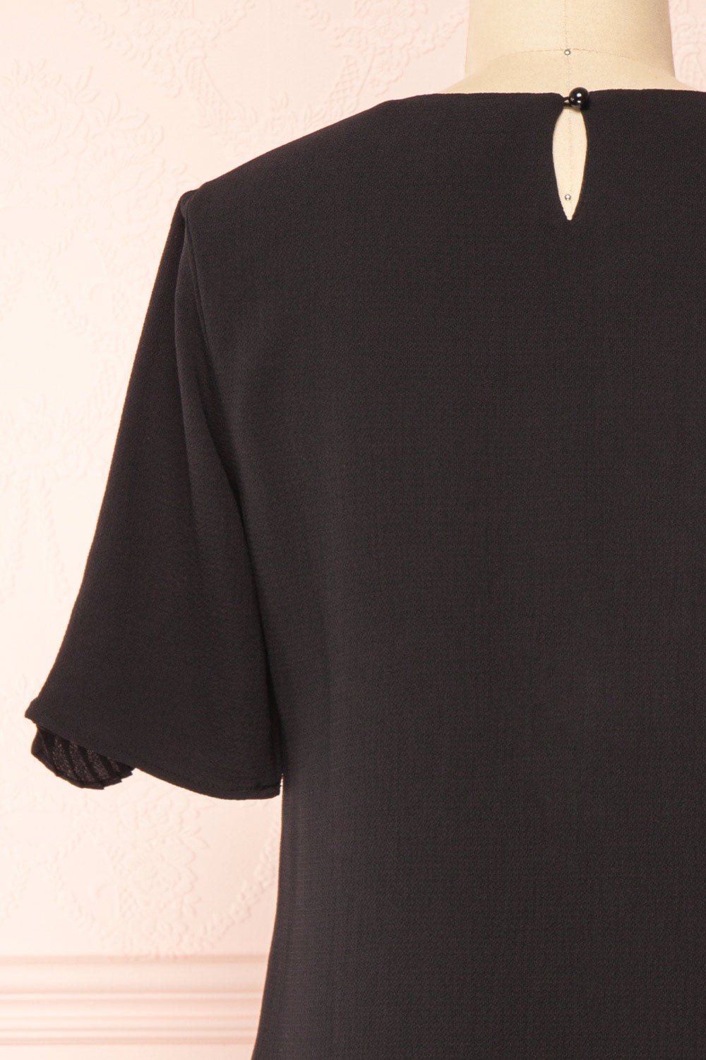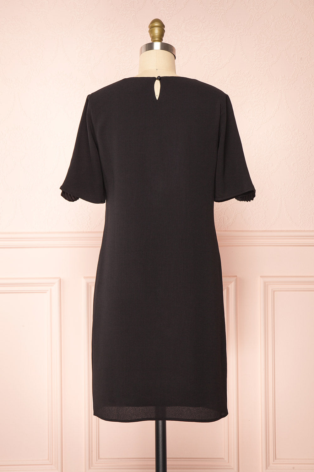 Ajoutez une touche stylée à votre garde-robe printanière avec cette charmante robe courte! Vous adorerez ses volants plissés placés à l'avant pour l'originalité qu'il ajoutera à cette pièce u look classique. Sa coupe ample et ses manches courtes vous procureront amplement de liberté dans vos mouvements tandis que le cordon à nouer placé à l'arrière du cou vous permettra d'ajuster le col à votre goût. Versatile, vous pourrez la porter autant pour vos sorties décontractées qu'au bureau.