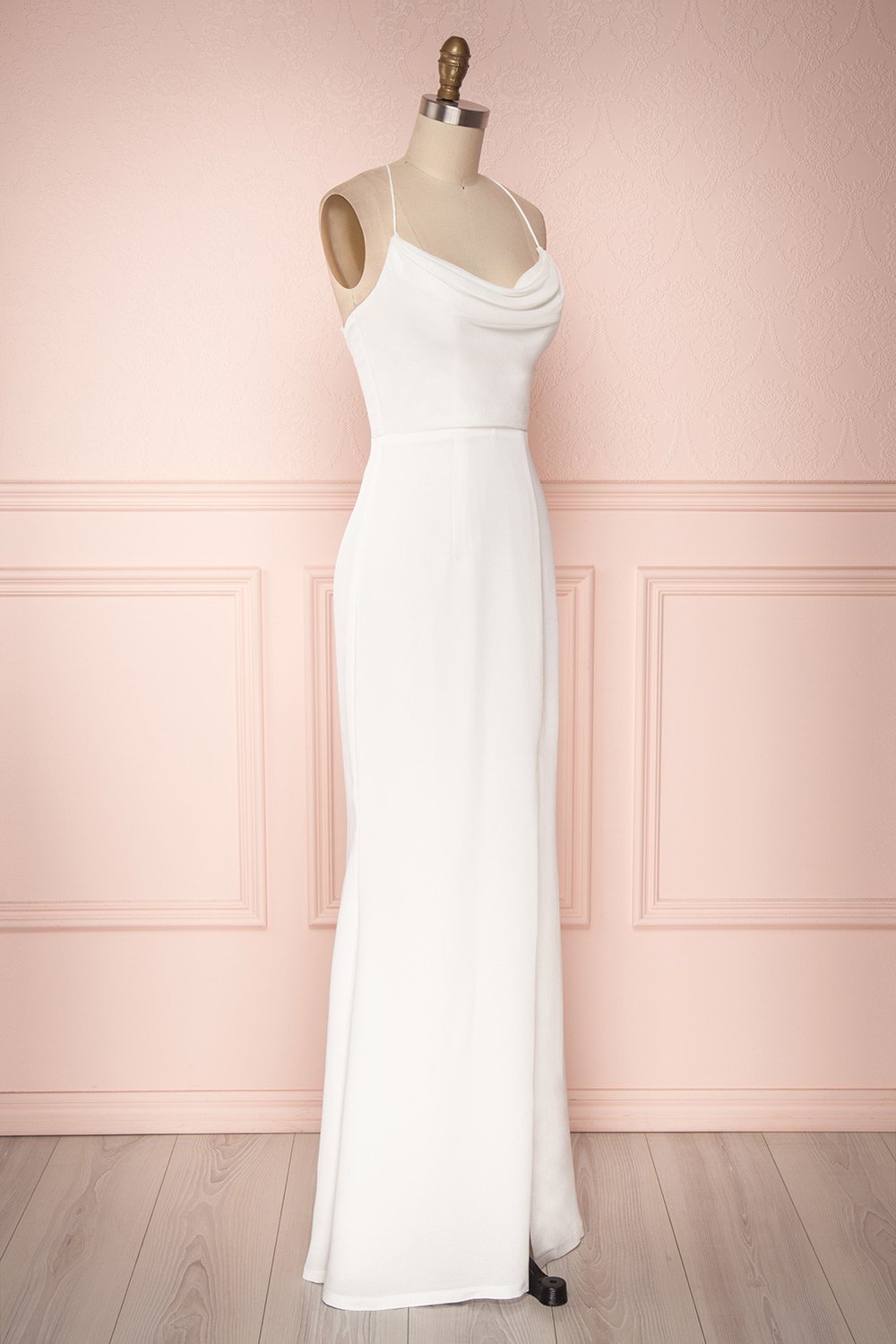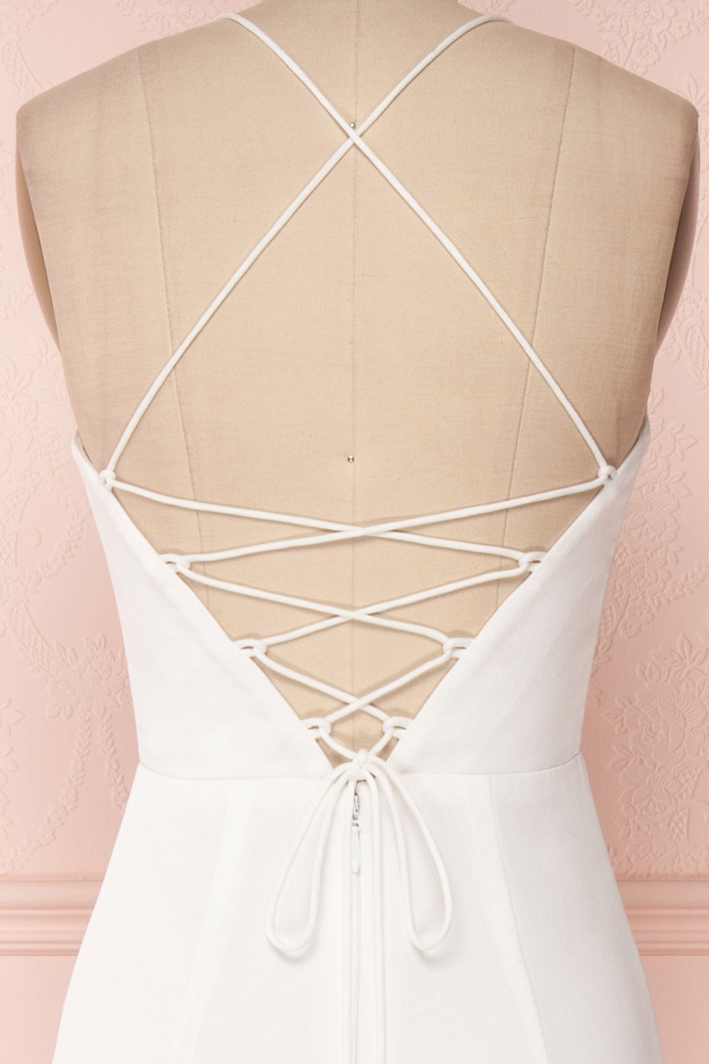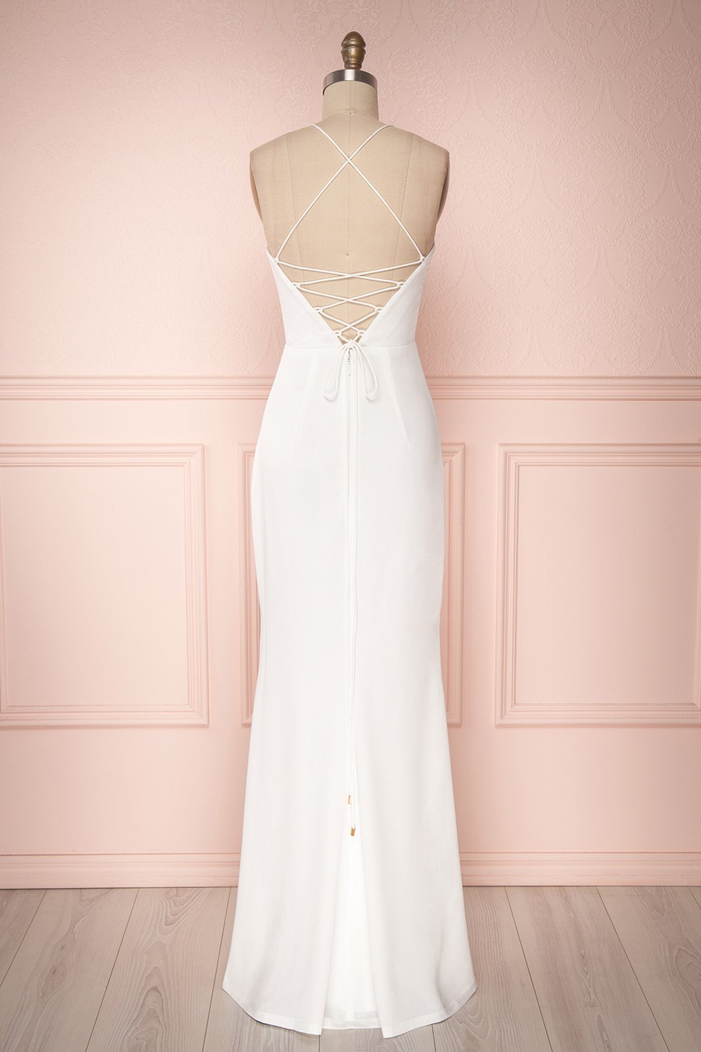 You will make a memorable impression dressed in this seductive dress! The mermaid cut has a side slit and satin lining for your comfort, while the charming laced back allows you to adjust the straps. Integrated cups will give you the support you need.