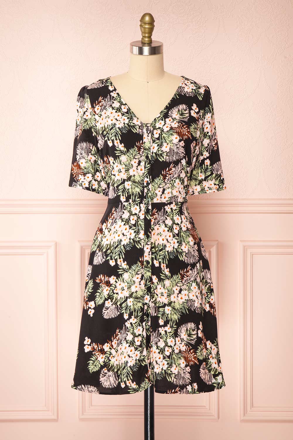Guadalupe Noir | Robe Courte Fleurie