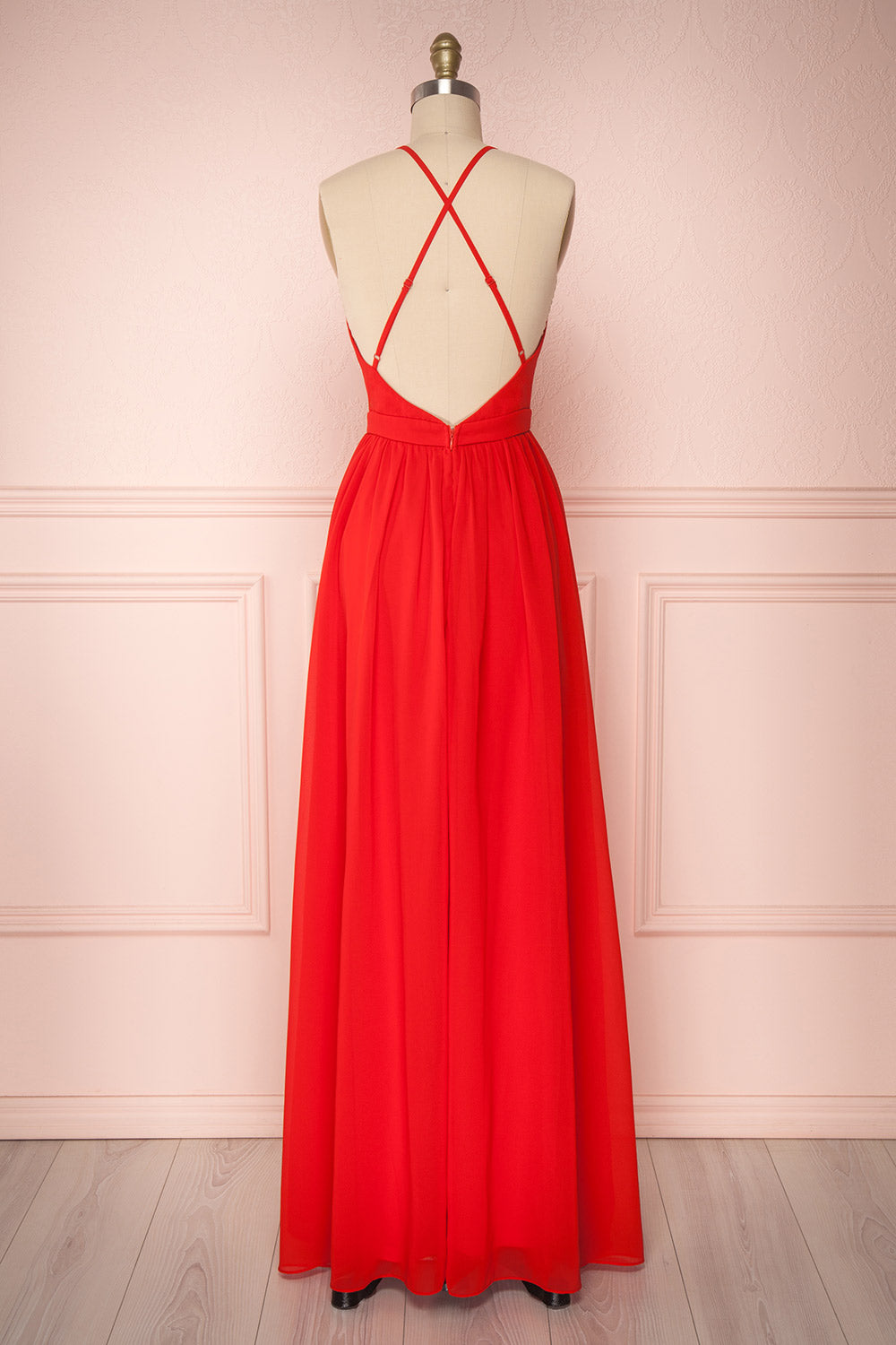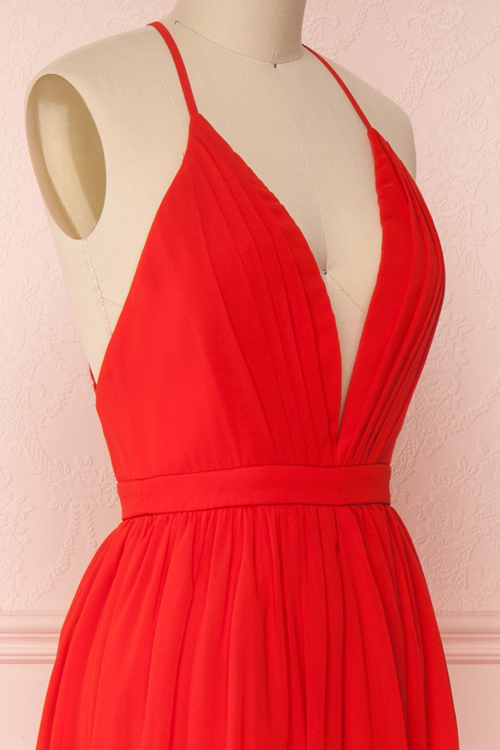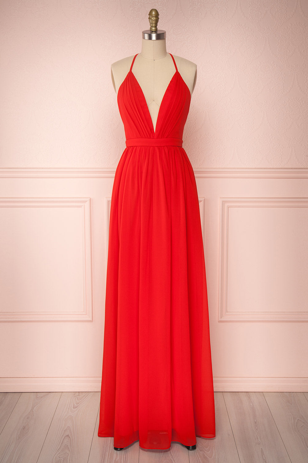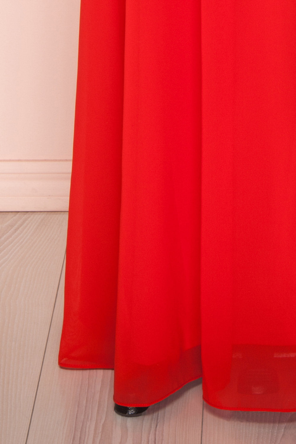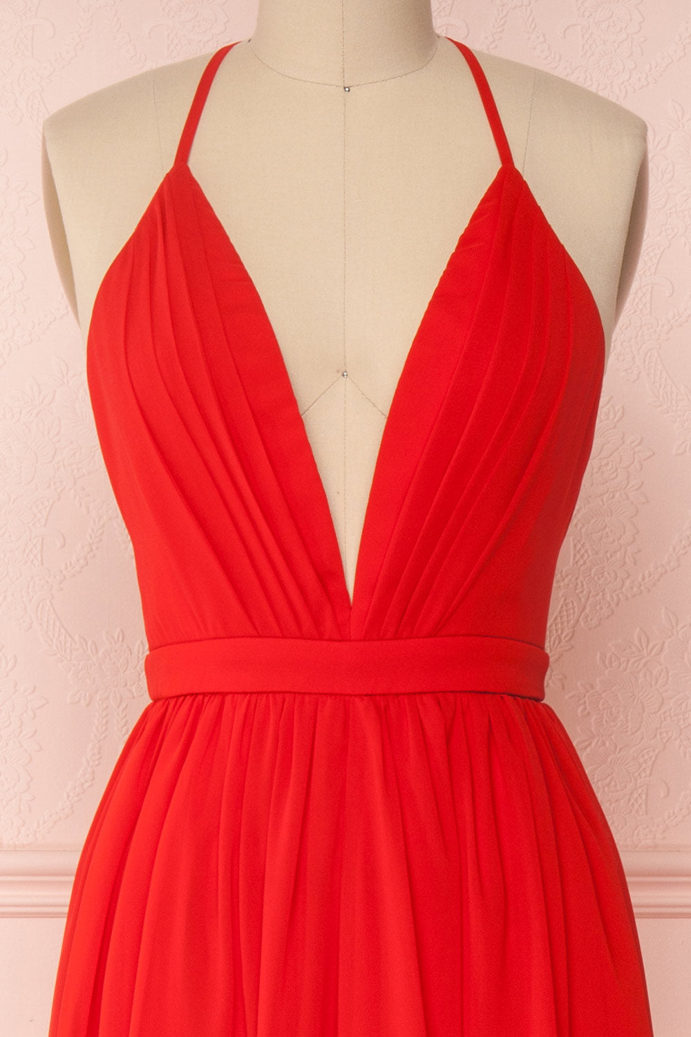 Haley Rouge | Robe Maxi en Chiffon à Décolleté Plongeant