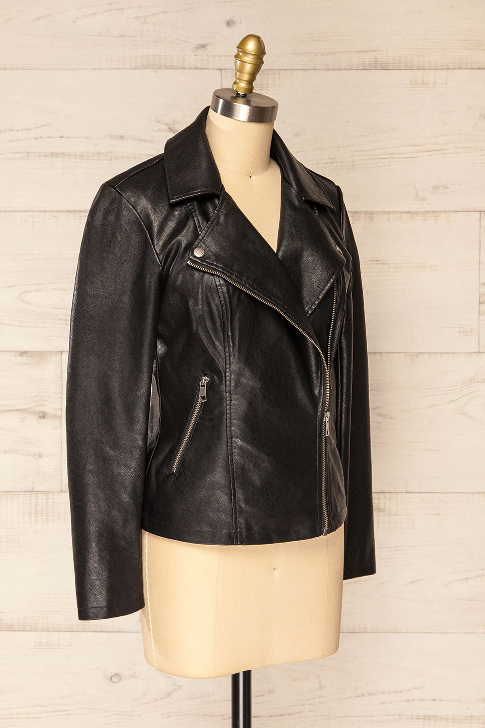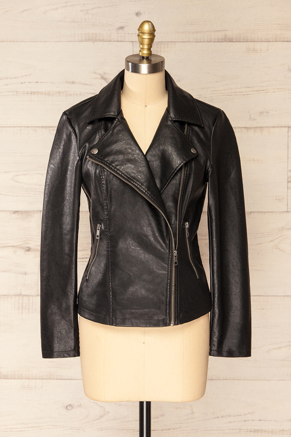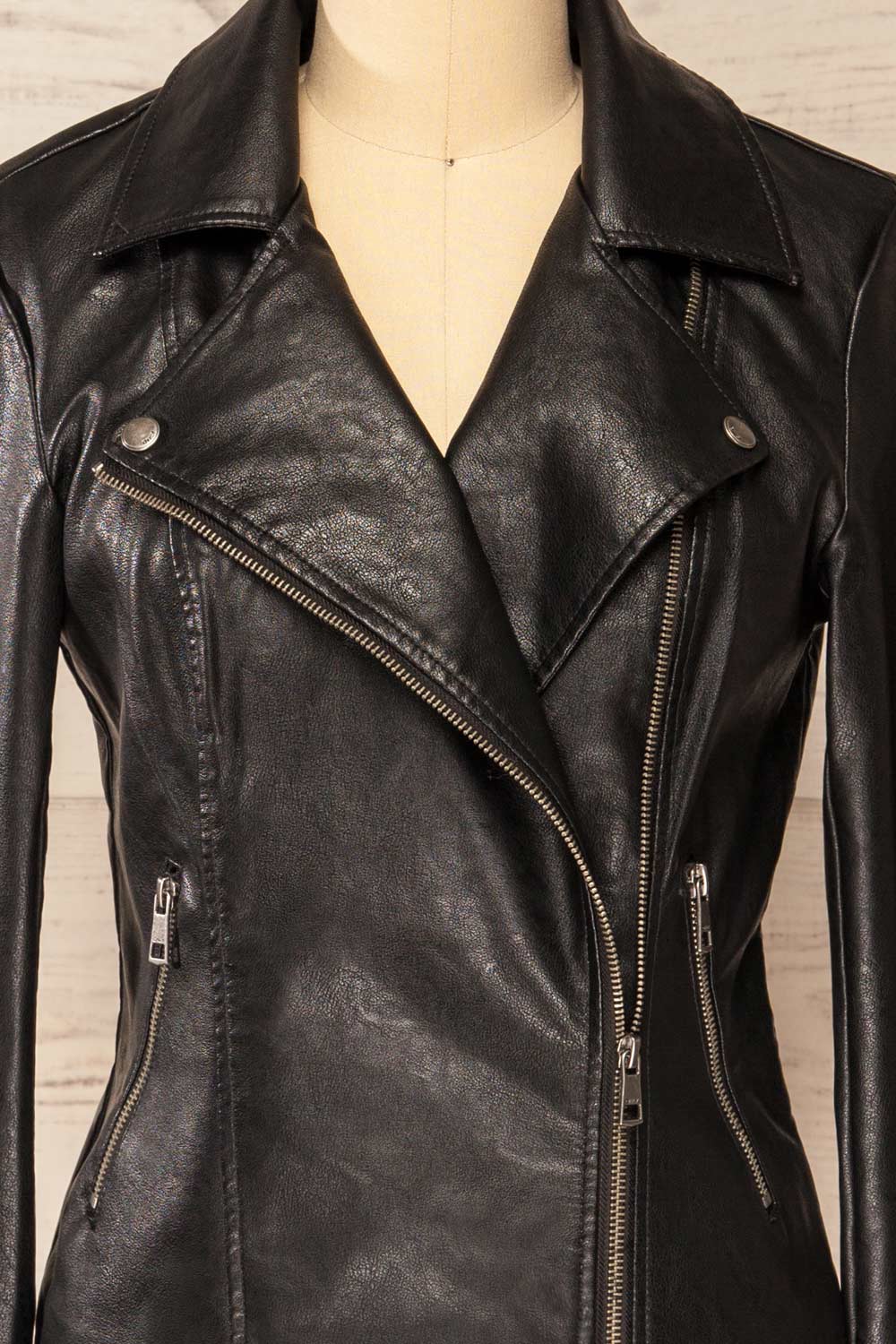 Accueillez le changement de saison avec style grâce à cette fabuleuse veste! Faite de faux-cuir, elle comporte deux poches à fermeture éclair qui pourront contenir vos essentiels du quotidien. Agencez-la à vos robes décontractées et des bottes lacées.