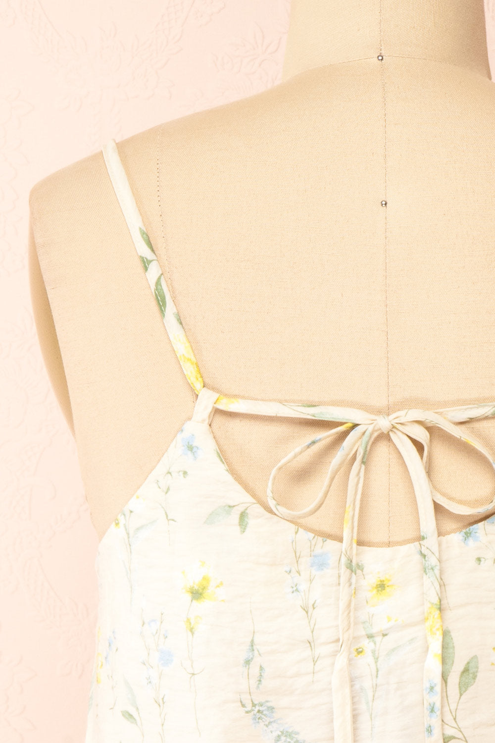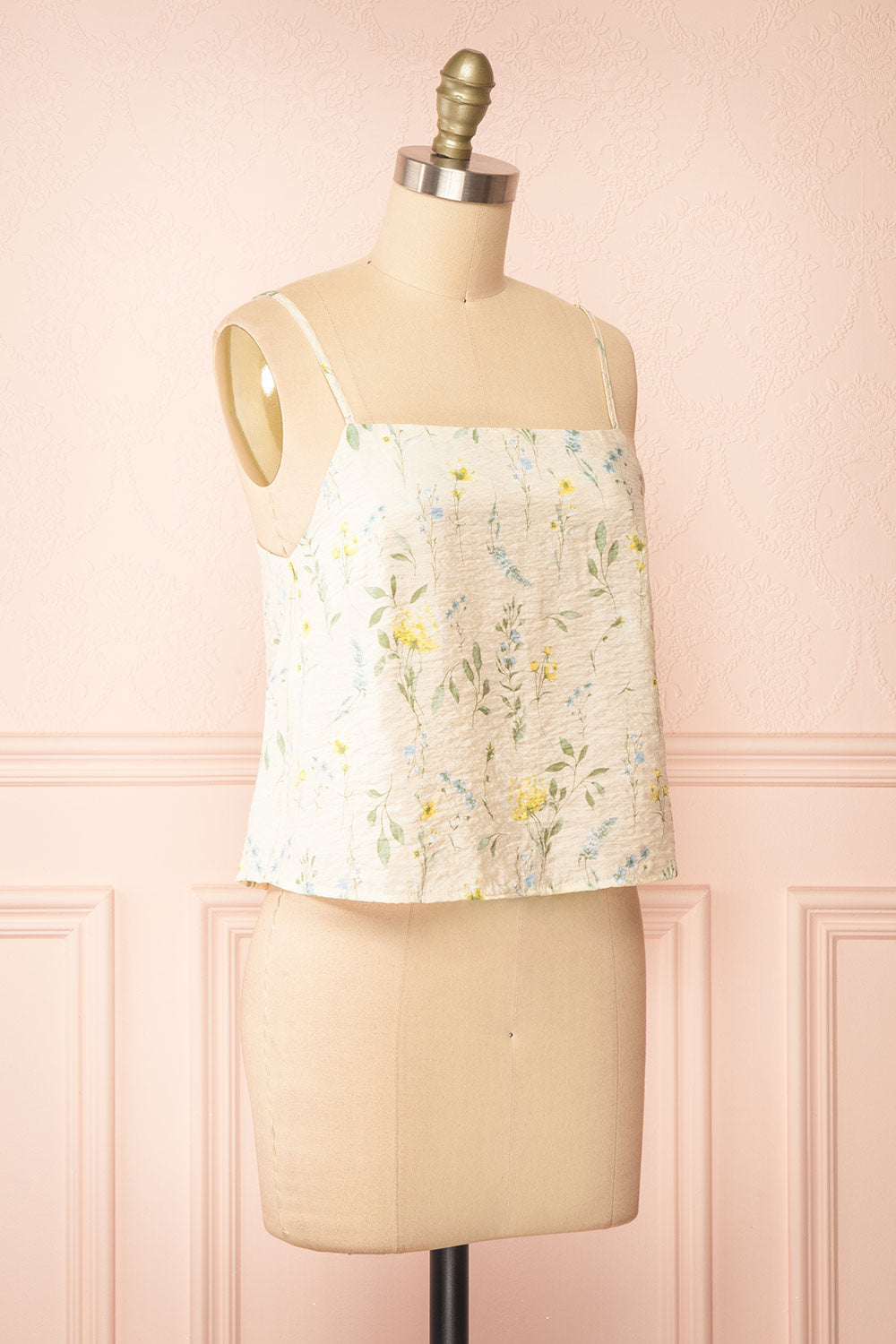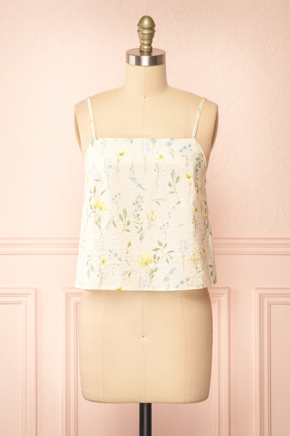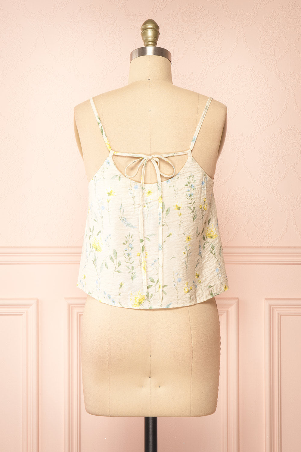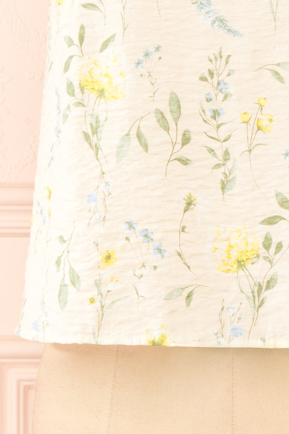 Hezerae | Haut Soyeux Beige avec Motif Floral