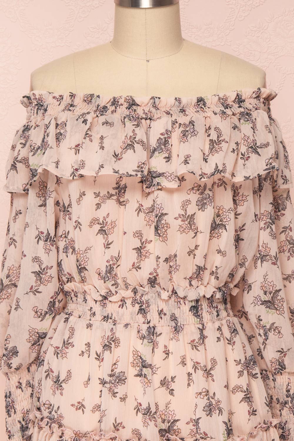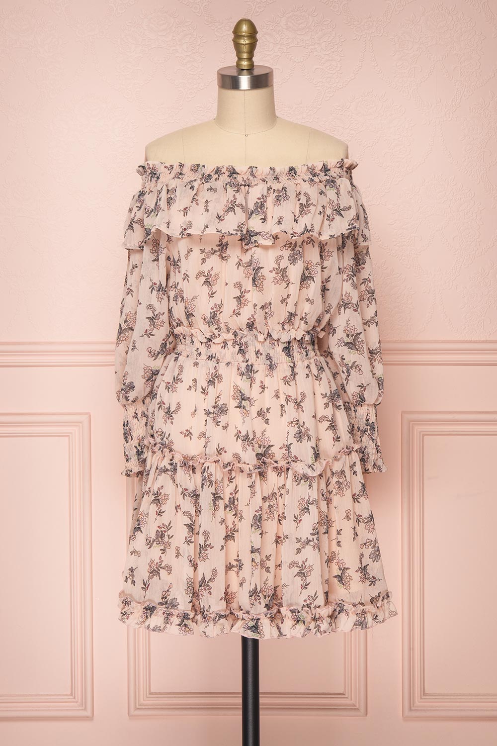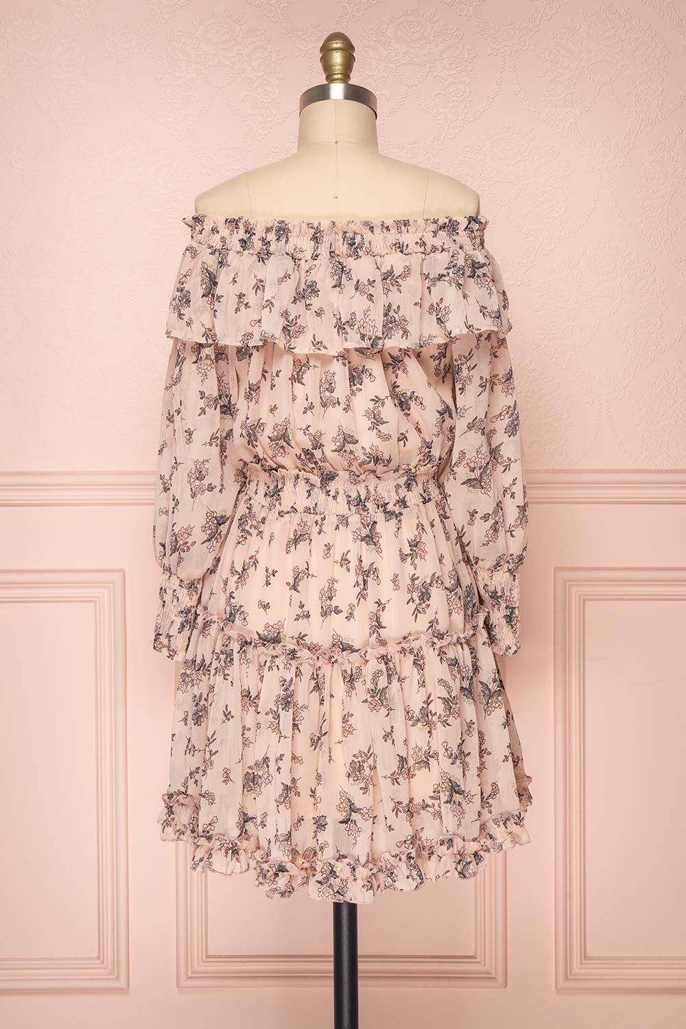 La poésie printanière de cette charmante robe vous enchantera! Son tissu de chiffon léger recouvre une doublure extensible qui vous couvrira avec confort. Les bandes extensibles et froncées au niveau de la taille et des poignets vous seront pratiques, tandis que l'encolure à épaules dégagées dévoilera votre peau pour une touche séduisante.