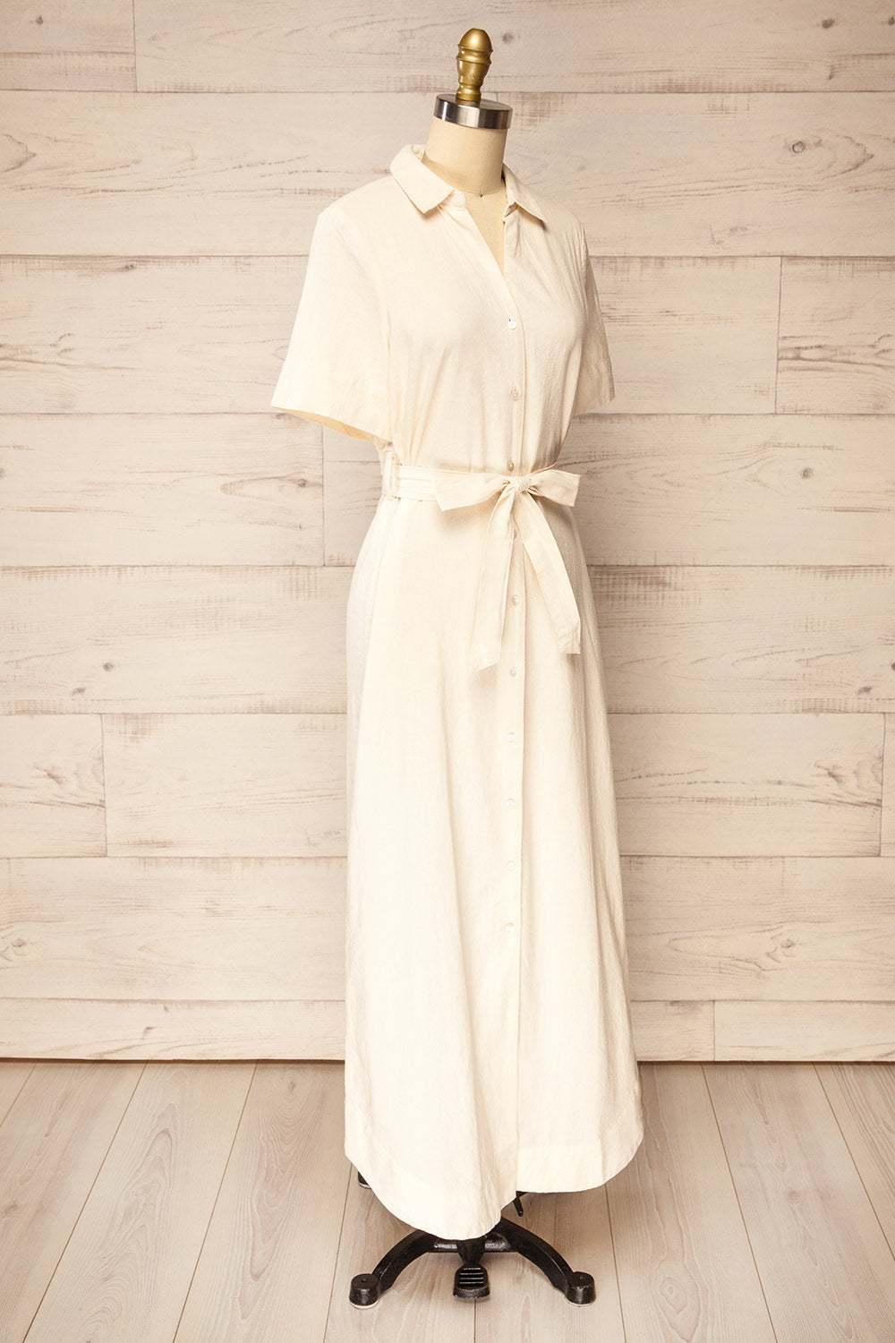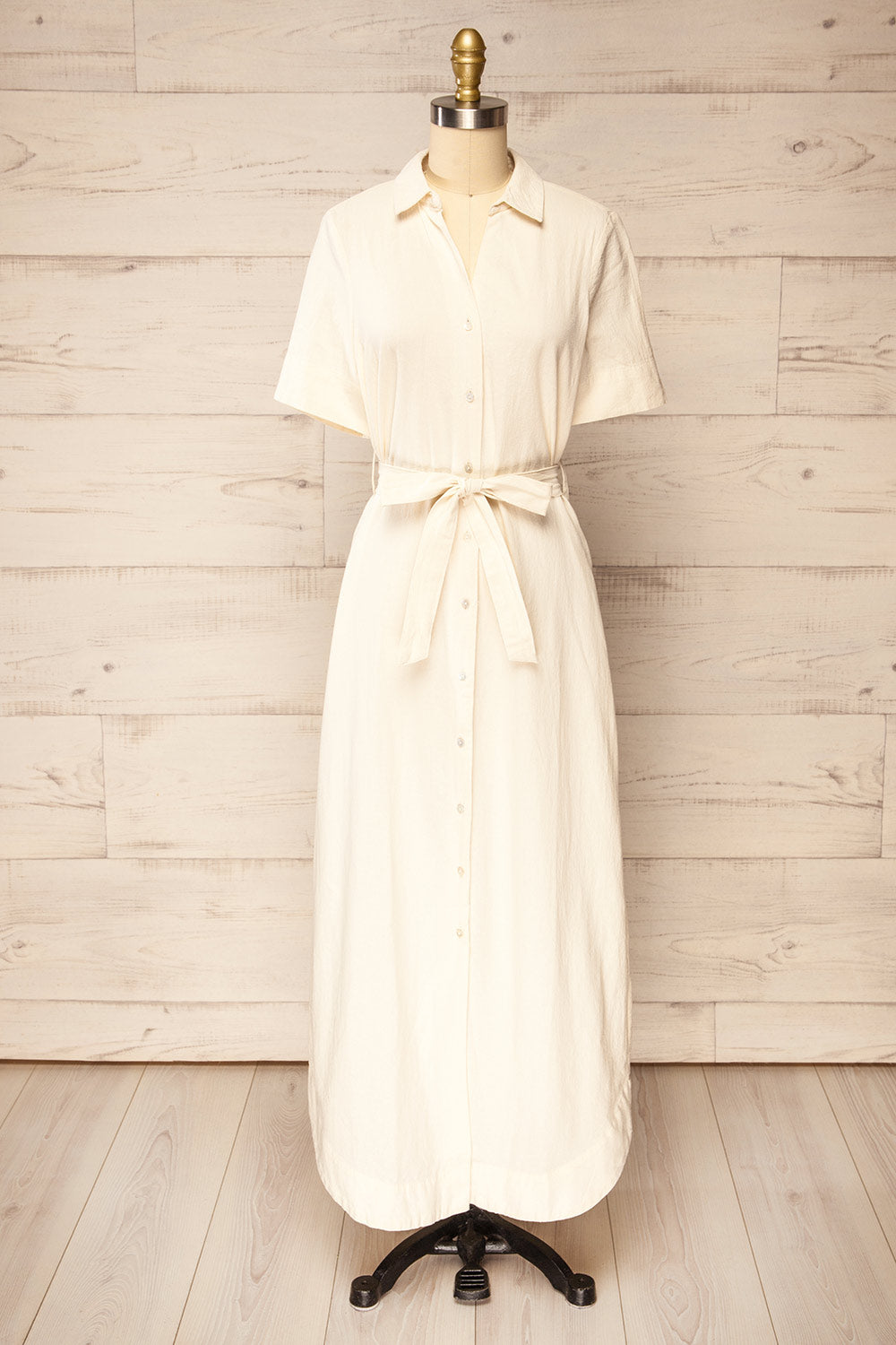 Hyris Ivoire | Robe Chemise Longue avec Ceinture