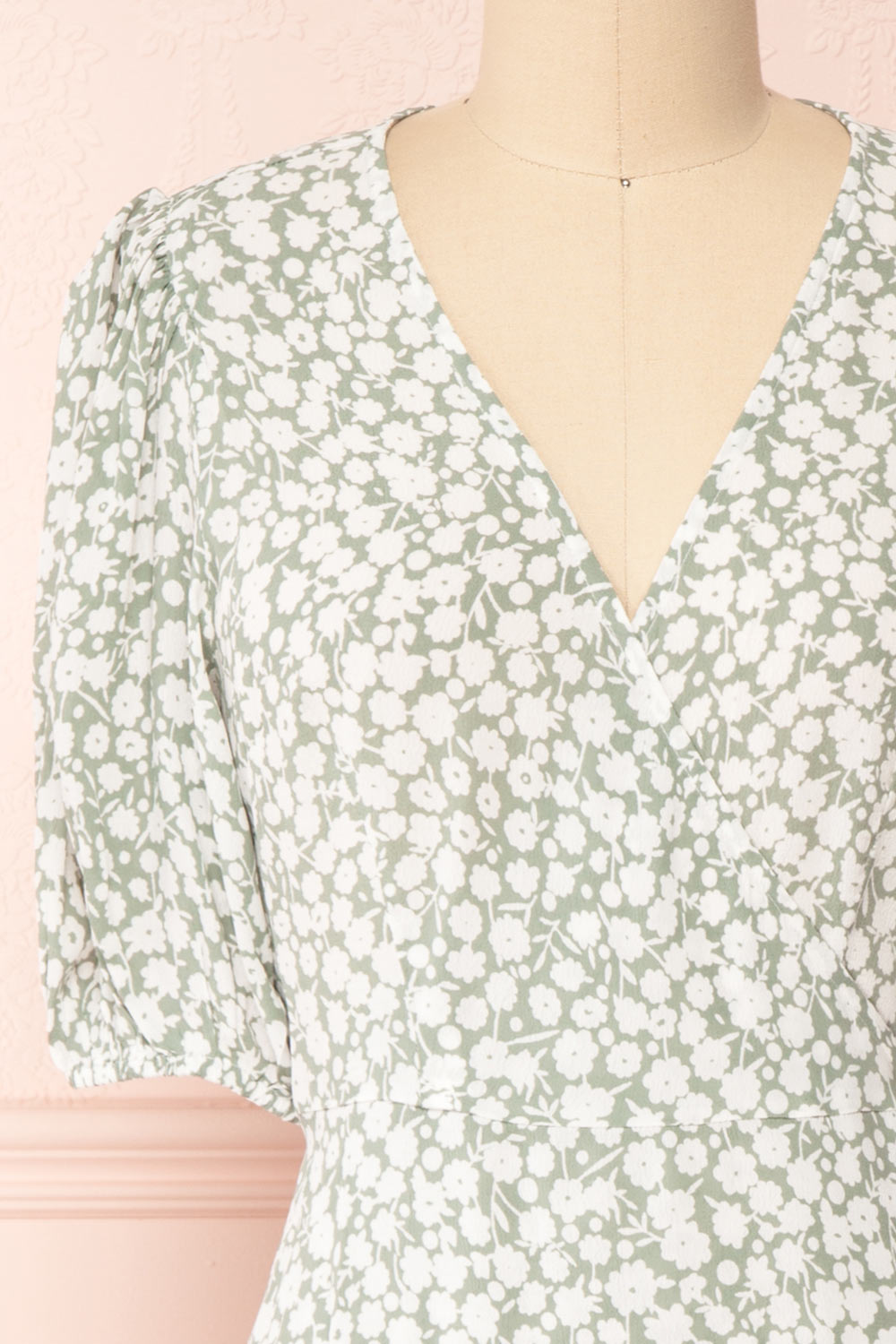 Enveloppez-vous dans cette magnifique robe fleurie! Vous adorerez l'allure de sa coupe ligne-A pour la façon dont elle met en valeur vos ravissantes courbes. Ses demi-manches bouffantes encadreront votre buste et son col en V dévoilera votre peau e façon délicate. Son tissu doux et fluide vous offrira une tenue des plus charmantes.