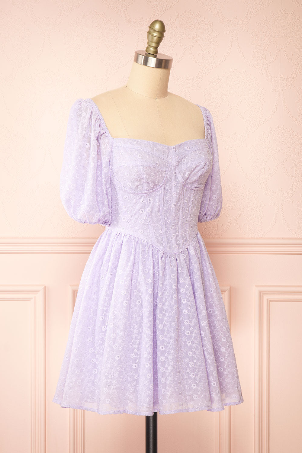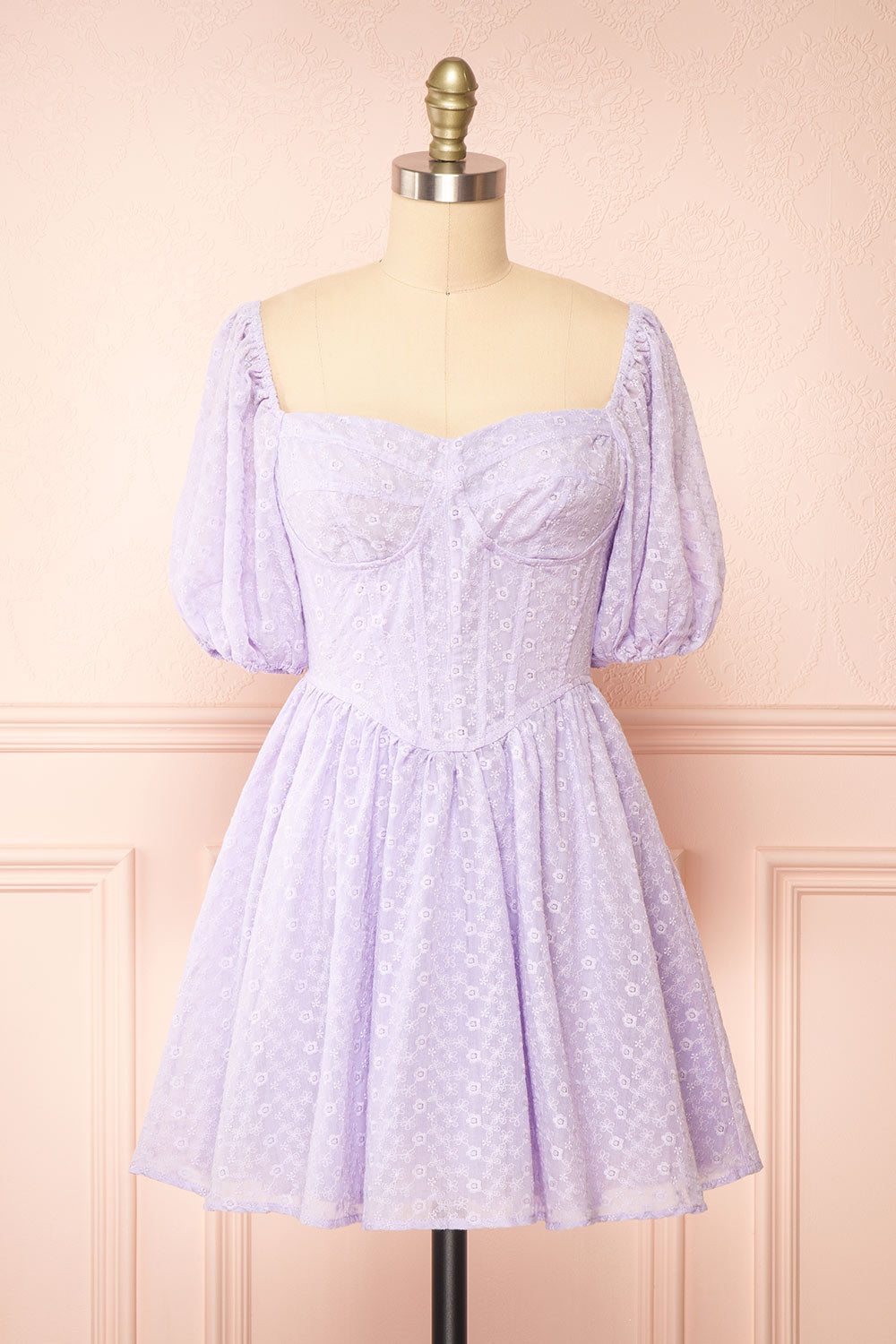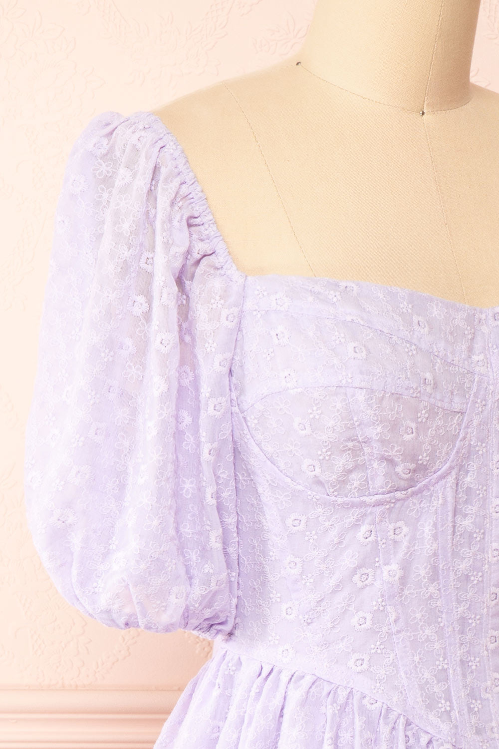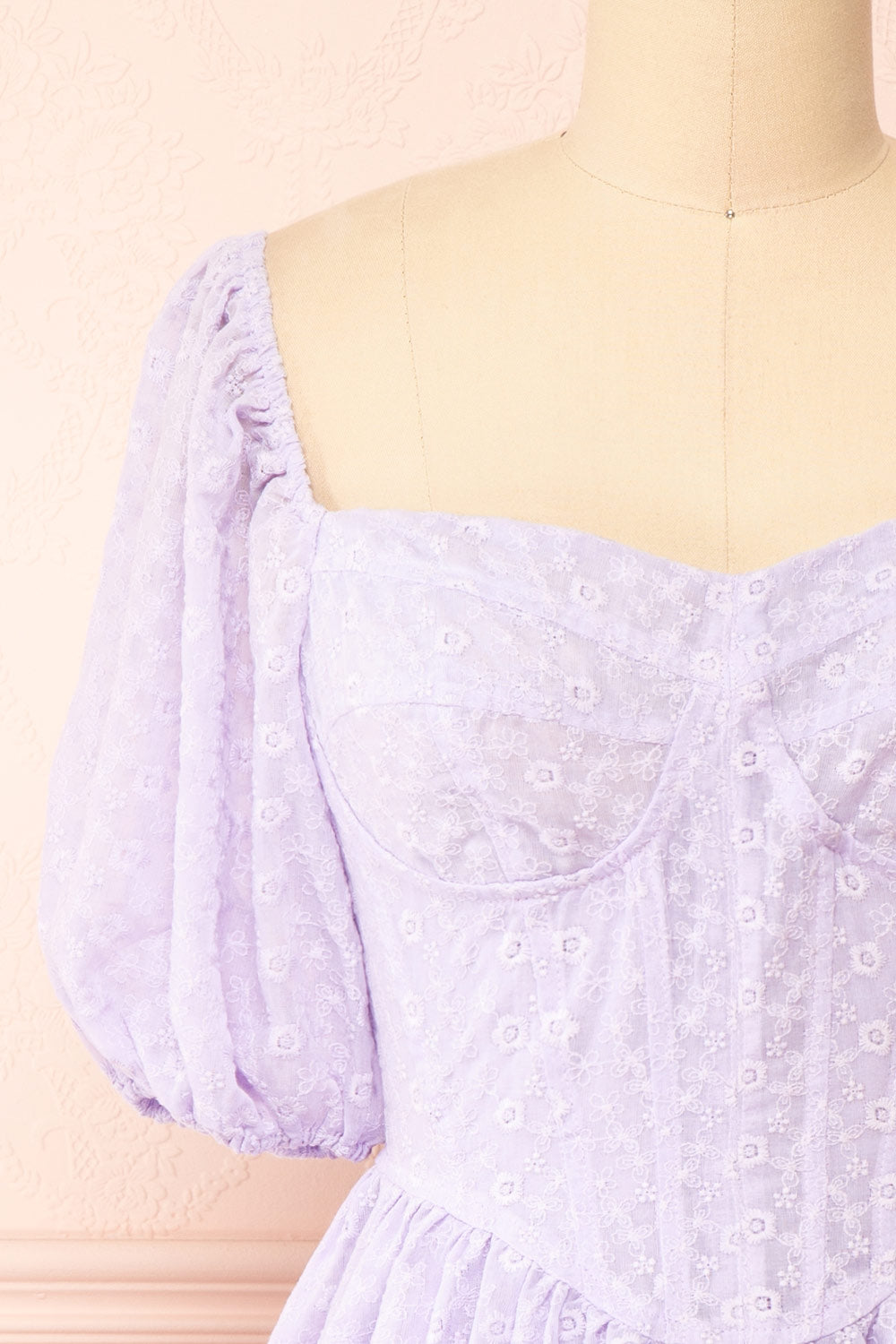 Irja | Robe Courte Lavande à Broderies Florales