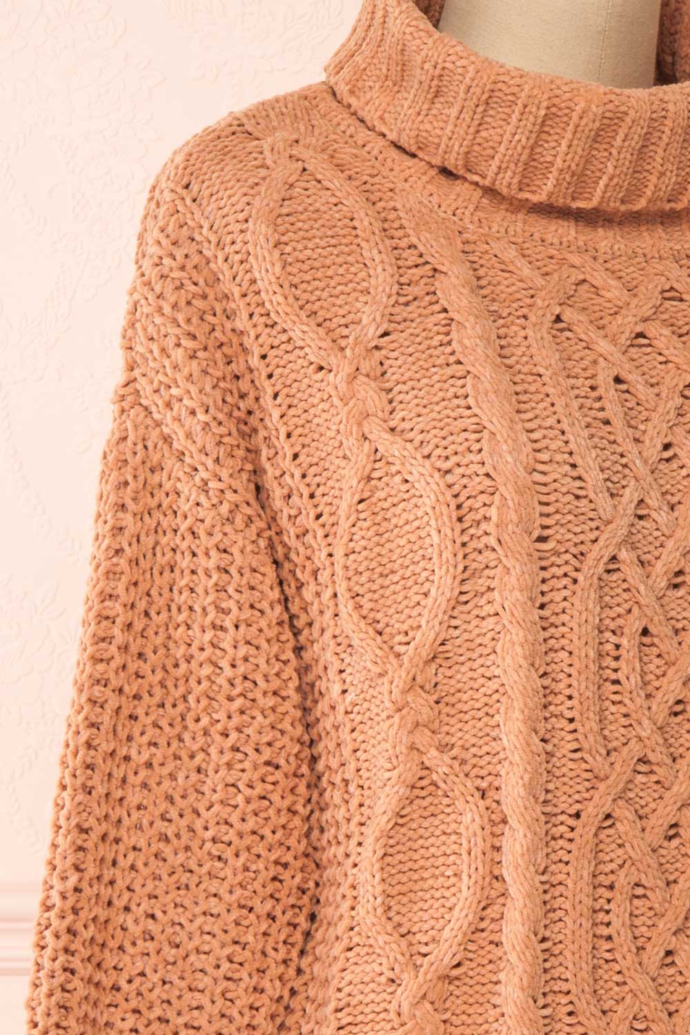 Ce joli chandail en tricot tressé sera l'addition parfaite à votre garde-robe automnale! Il vous gardera au chaud avec style durant les journées plus froides grâce à ses manches longues et son col roulé. Sa coupe ample vous offrira tout le confort souhaité alors que son allure tendance vous garantira une tenue des plus charmantes.