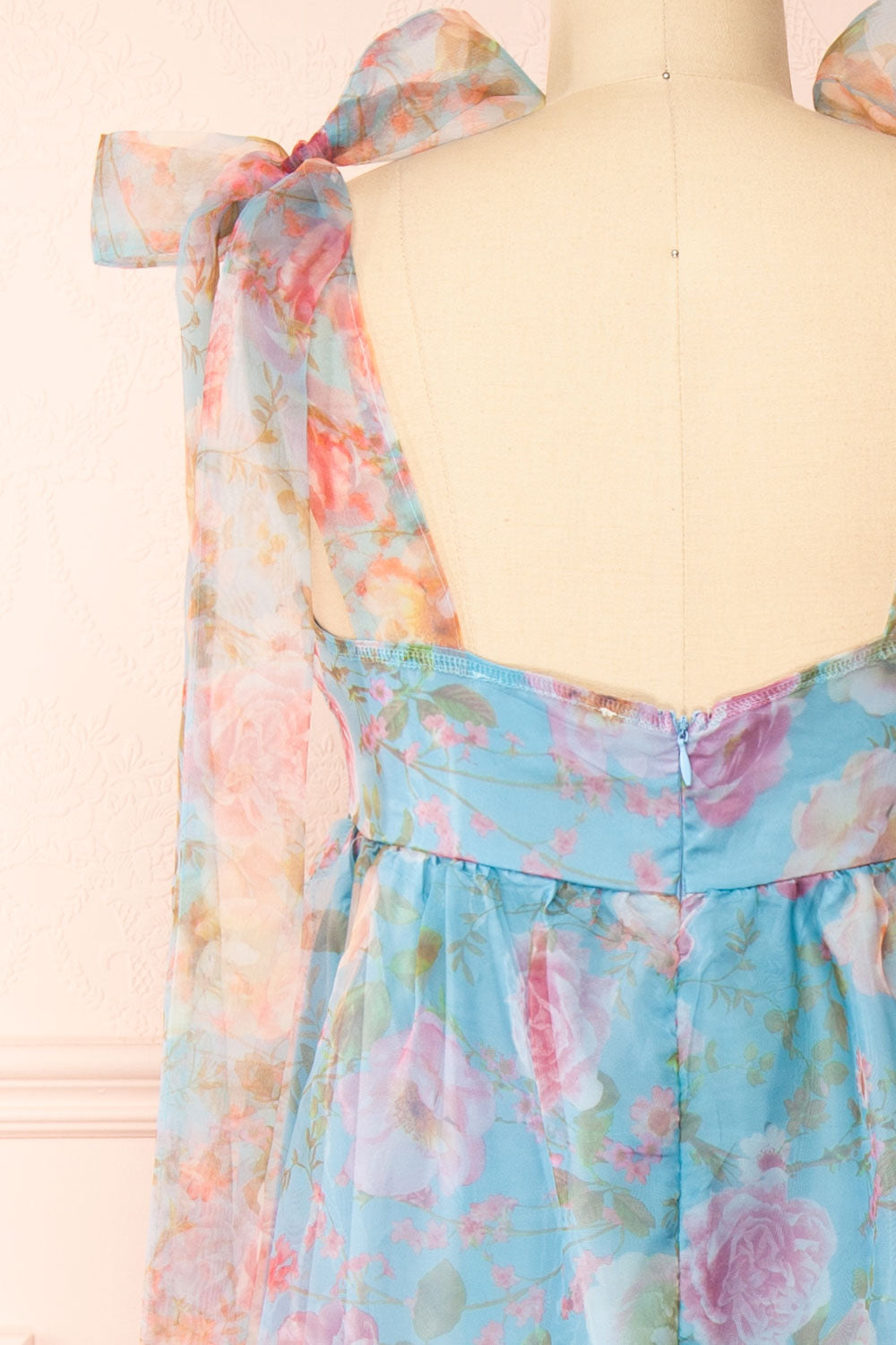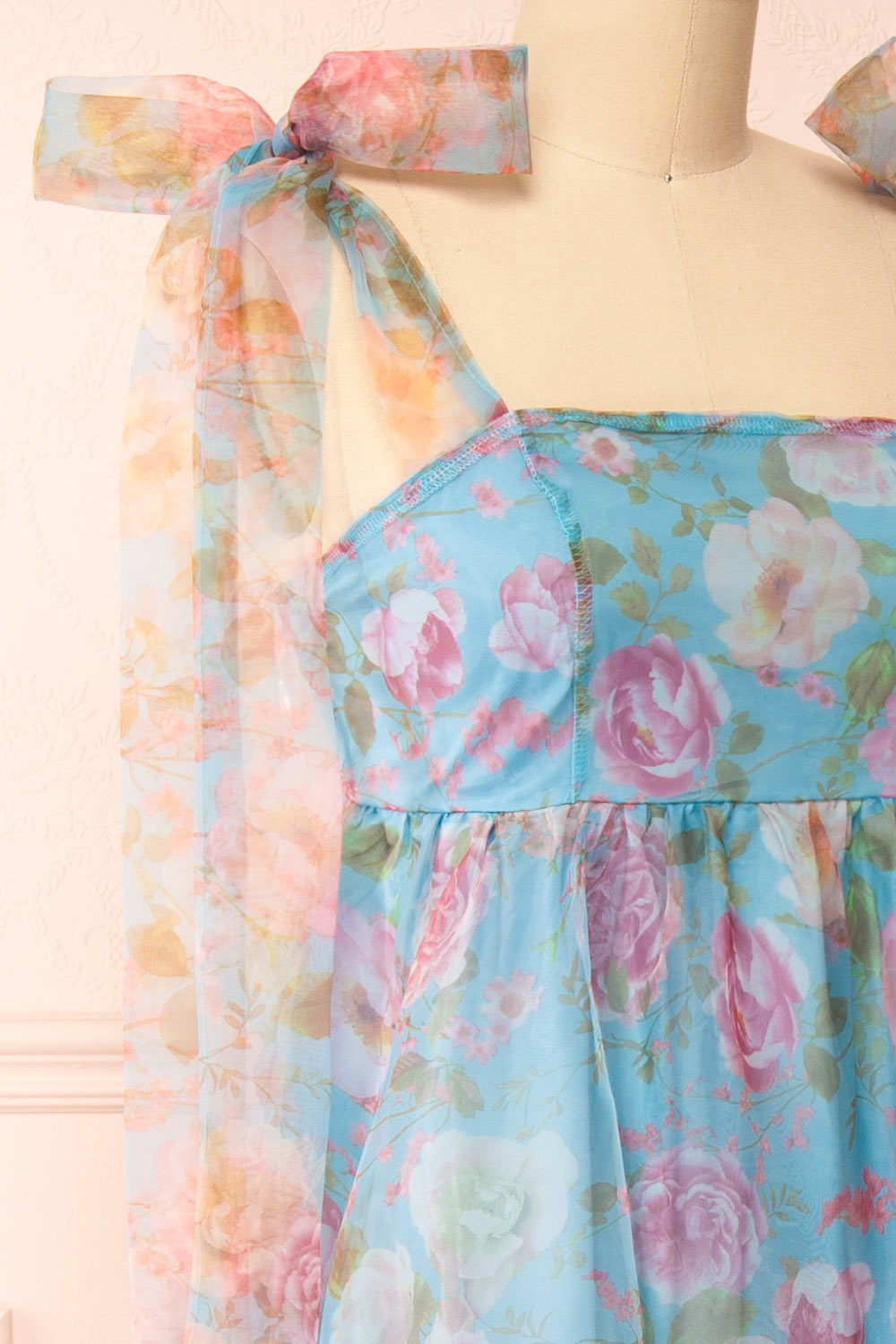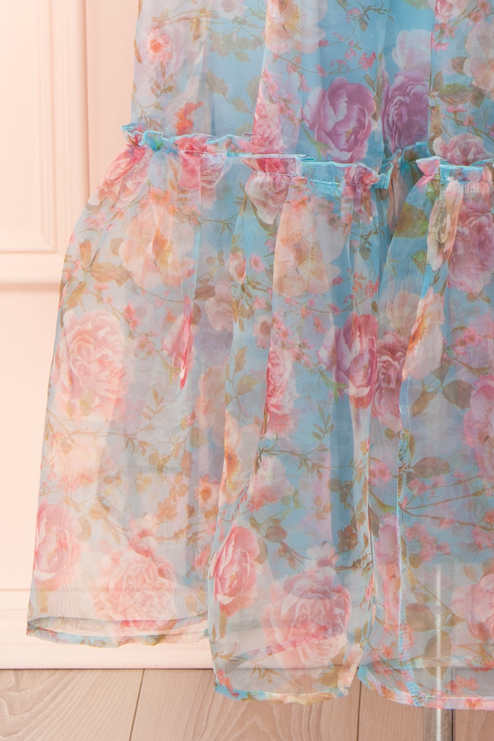 Ismelda Bleu | Robe Midi Fleurie Étagée à Volants