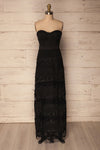 Cette robe est un savoureux mélange entre élégance et frivolité! La dentelle crochetée recouvre une doublure extensible courte qui recouvrira l'essentiel. Le buste muni de bonnets et d'une bande adhésive intérieure vous offrira le soutien nécessaire, alors qu'une fermeture éclair pratique est dissimulée au dos. Les franges volatiles danseront à chacun de vos pas!
