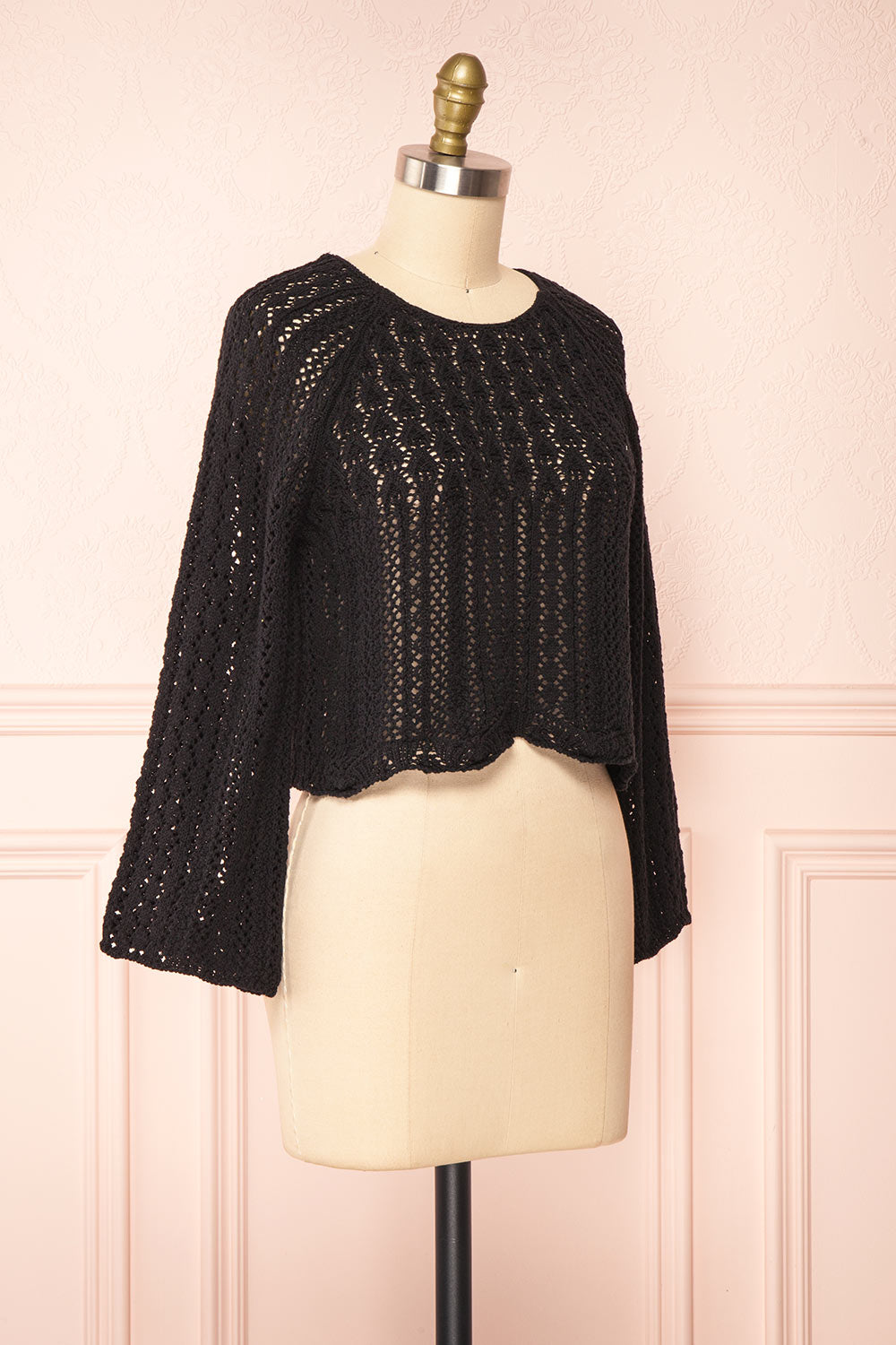 Jehann Noir | Chandail Écourté en Tricot Ajouré