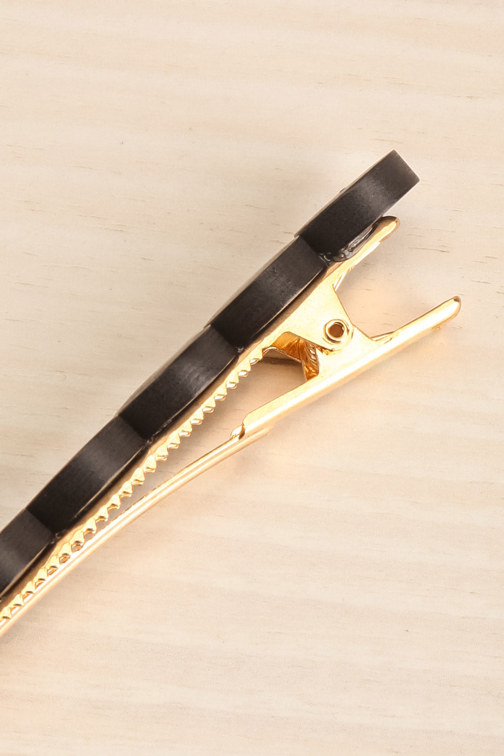 Joelene Noir | Barrette Dorée avec Disques en Bois