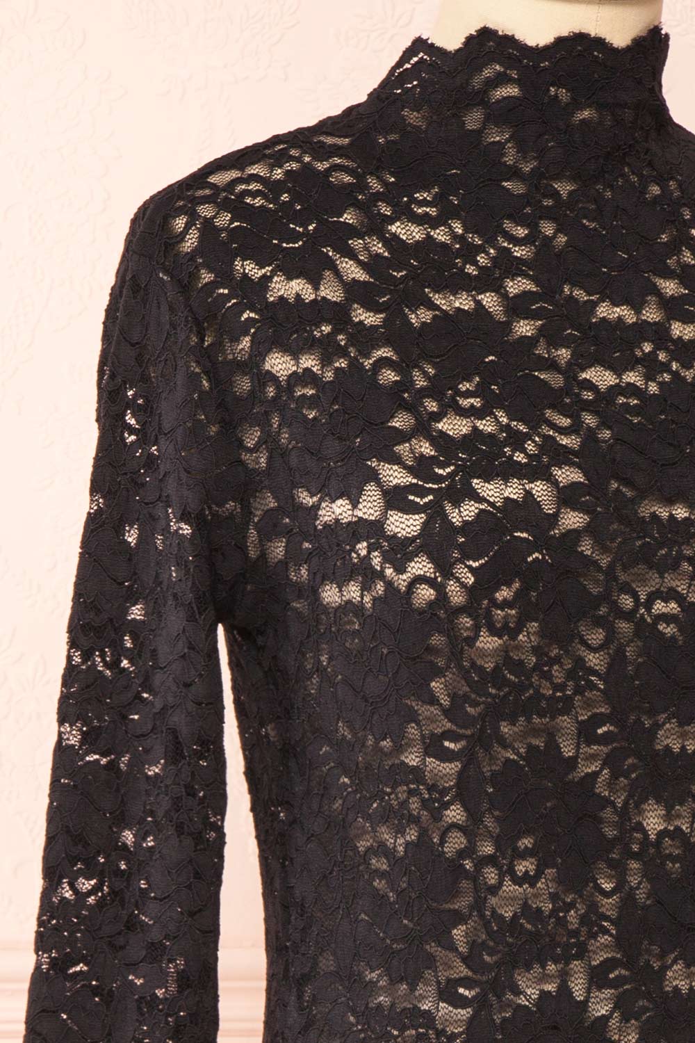 Ce haut en dentelle complimentera à merveille votre garde-robe ! La dentelle transparente révèlera votre peau délicatement tandis que son col montant apportera un charme moderne et élégant à toutes vos tenues. Portez-la avec une jupe midi étagée ou sous une jolie robe à bretelles pour un look de style romantique.