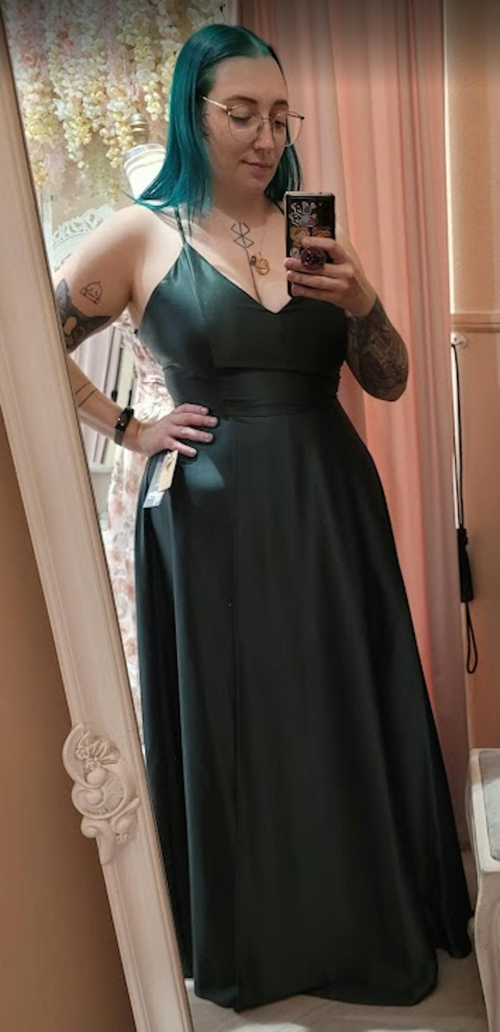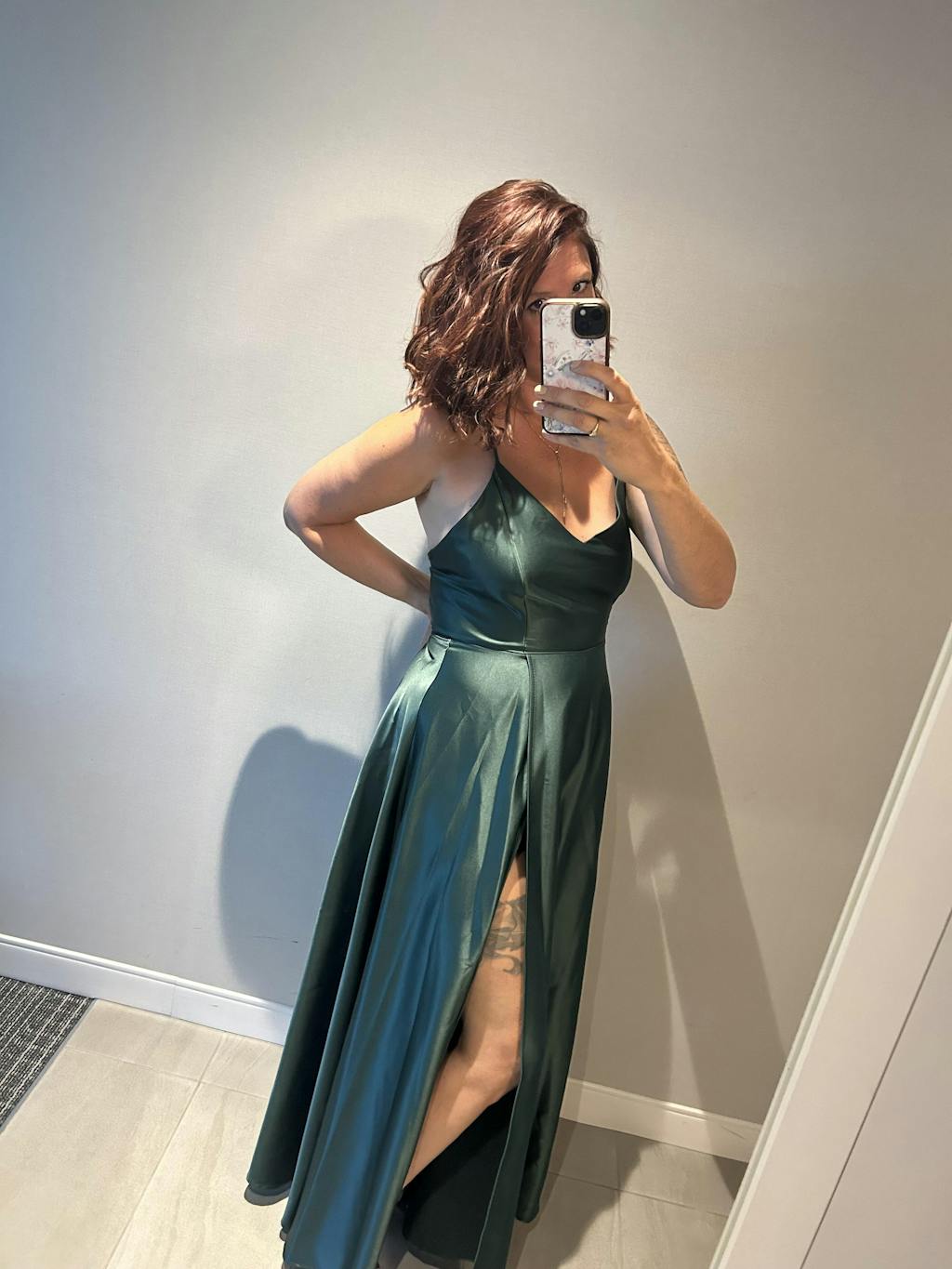 Cette robe satinée fera de vous la star de la soirée! Son allure élégante et minimaliste vous donnera un look raffiné pour toute occasion. Le tissu confortable épousera vos courbes à merveille, soulignant ainsi votre charmante silhouette. Le dos ouvert à noeuds de serrage et sa haute fente latérale dévoileront votre peau de manière séduisante.