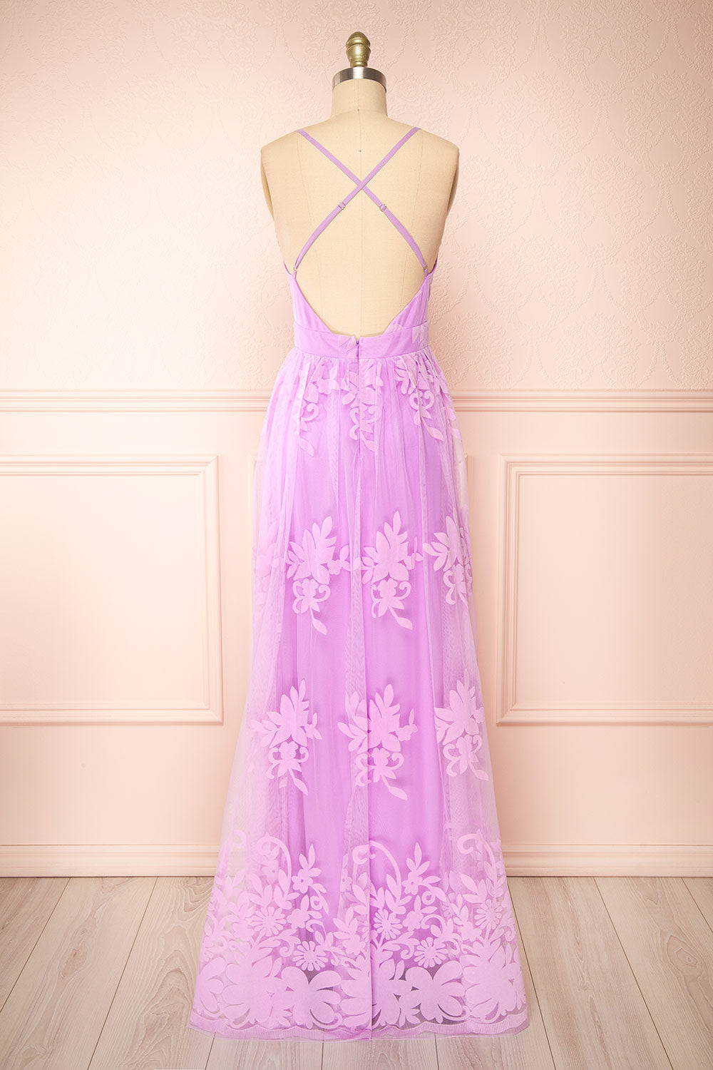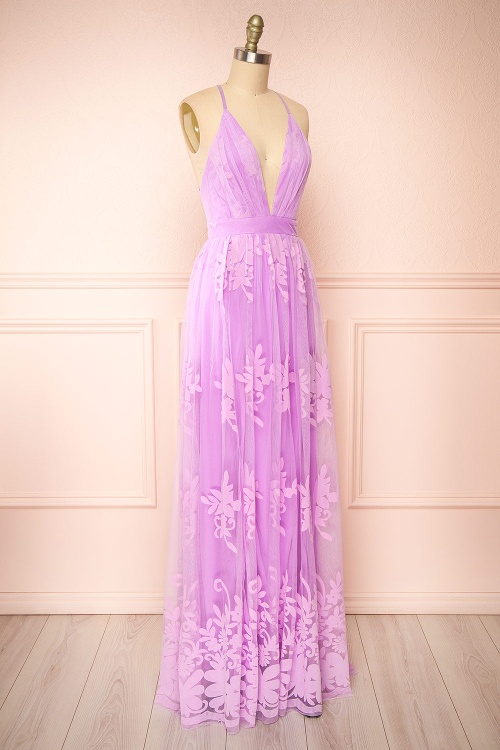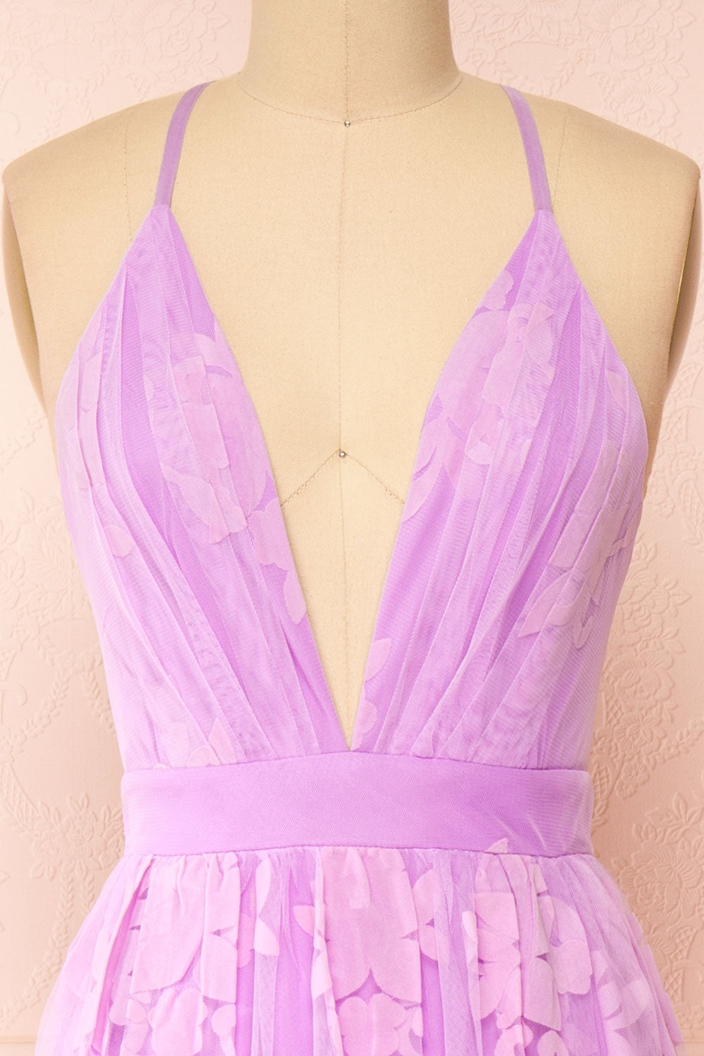 Kailania Lavande | Robe Maxi Fleurie à Décolleté Plongeant