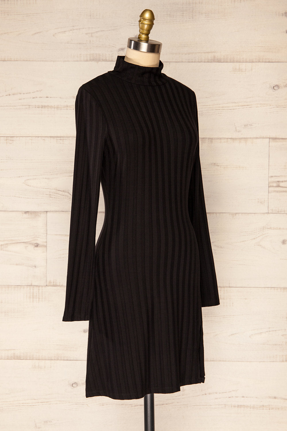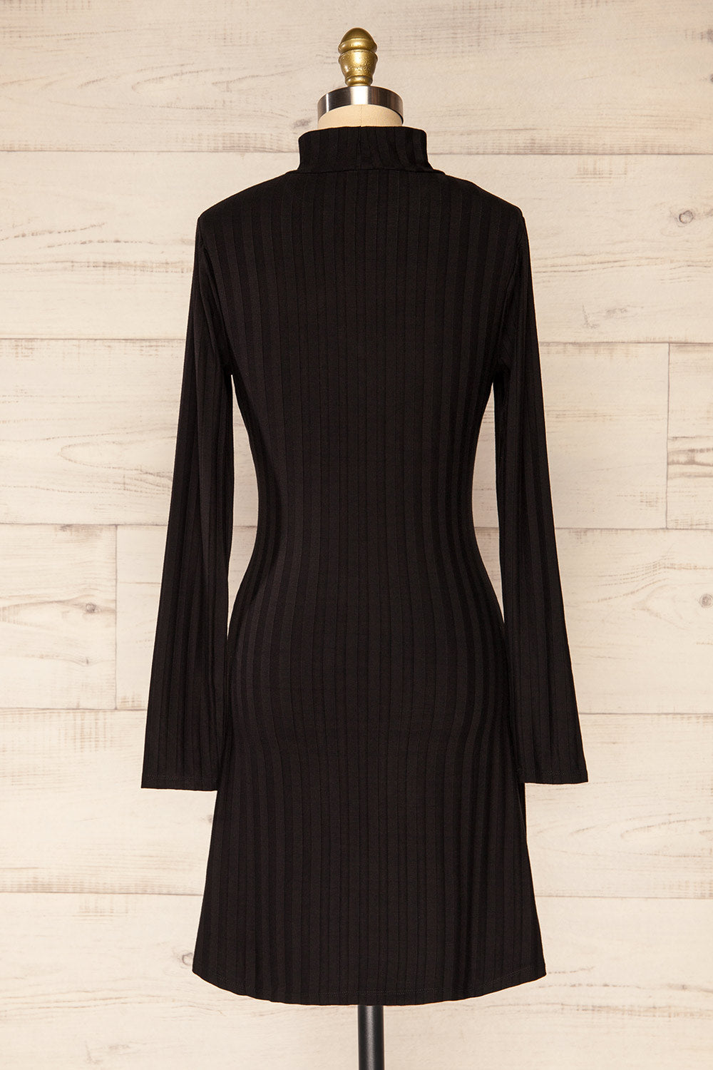 Kalani Noir | Robe Courte Ajustée à Col Montant