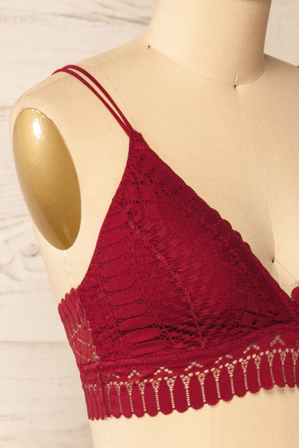 Cette délicate bralette en dentelle sera une charmante addition à votre collection de lingerie féminine. Ses fines bretelles ajustables, son tissu légèrement extensible et la bande élastique vous assureront un support confortable. Agencez-le à Larvik Bourgogne pour un superbe ensemble.