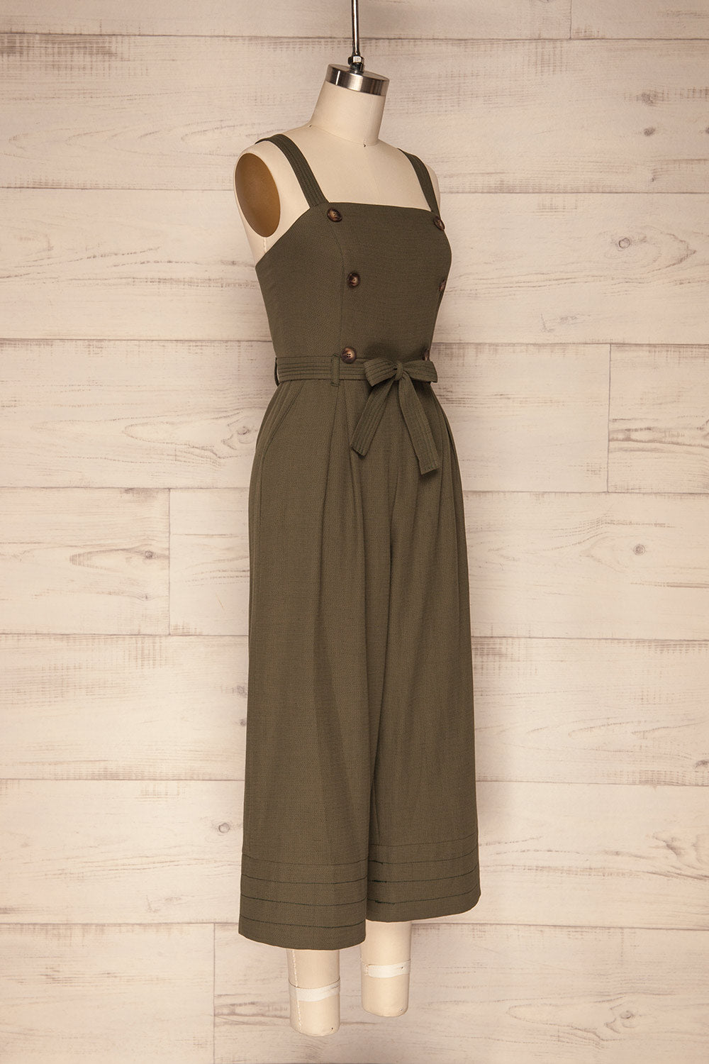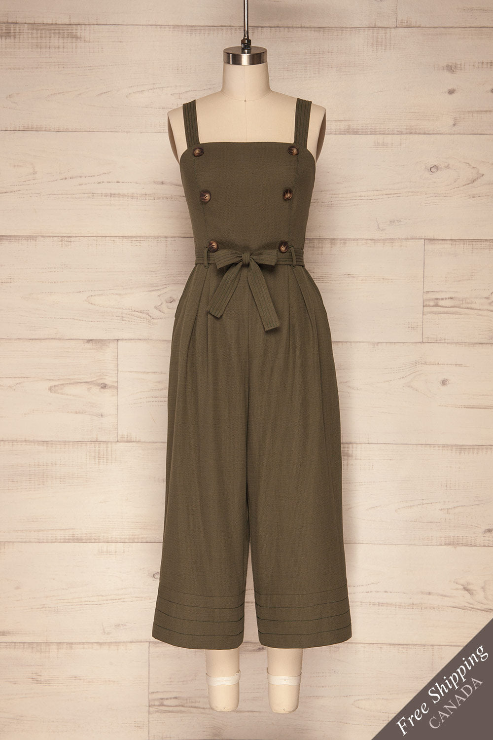 Cette combinaison aura une place privilégiée dans votre garde-robe estivale à l'aide de son confort agréable et de son allure festive! Sa jambe large, sa doublure légère et son tissu en mélange de coton et de lin seront des atouts sous les rayons du soleil. Les deux poches latérales, les bretelles ajustables, la ceinture de tissu et la fermeture éclair au dos vous seront pratiques.