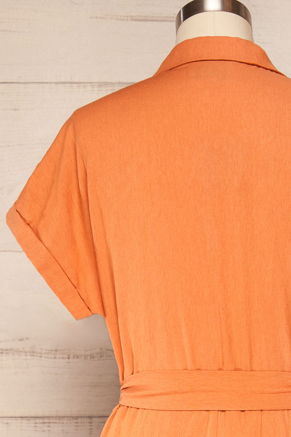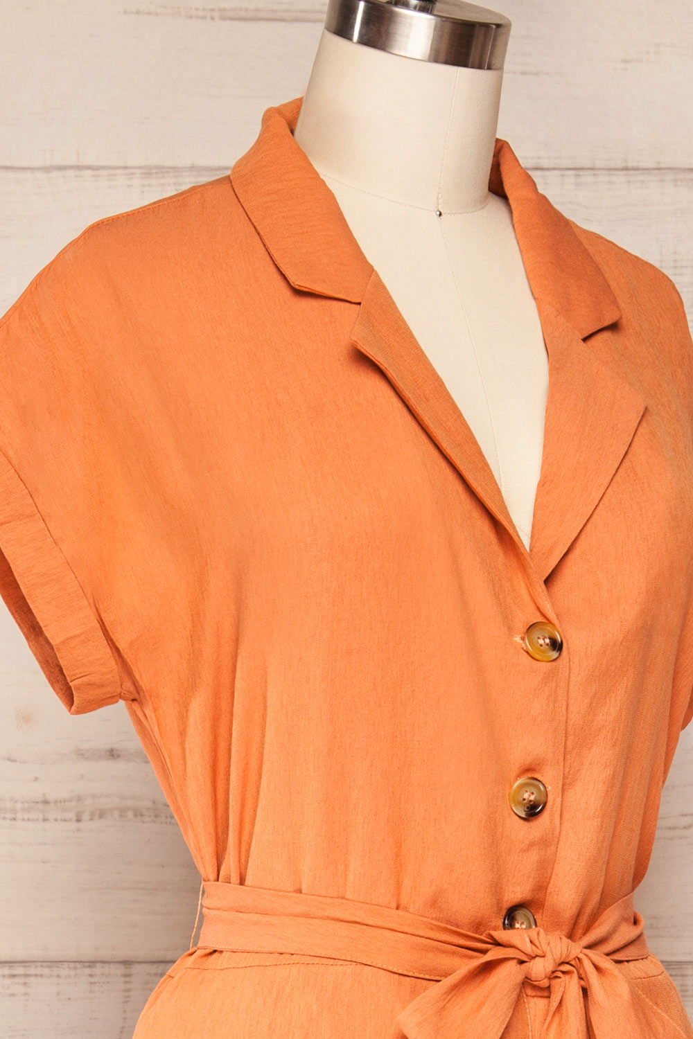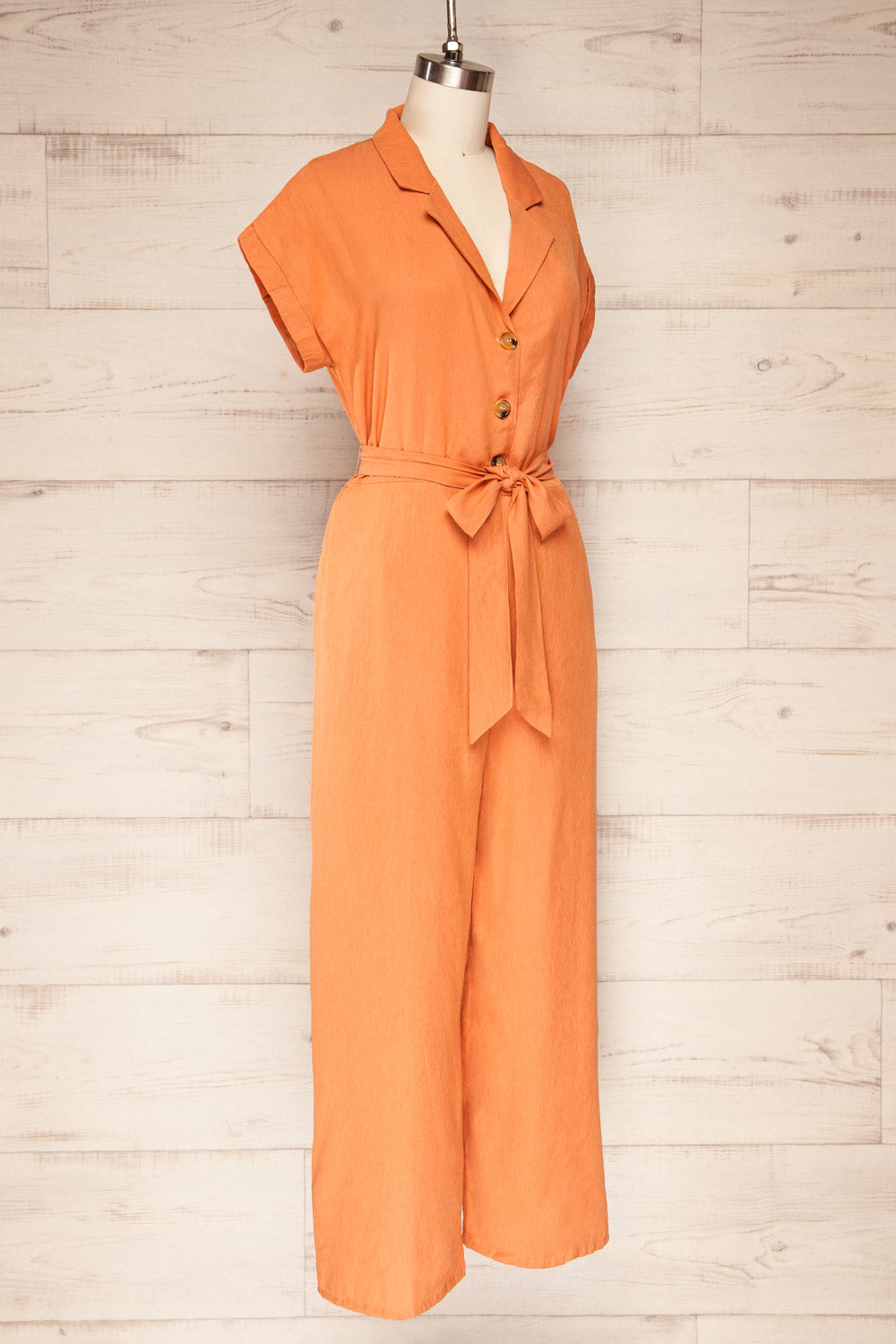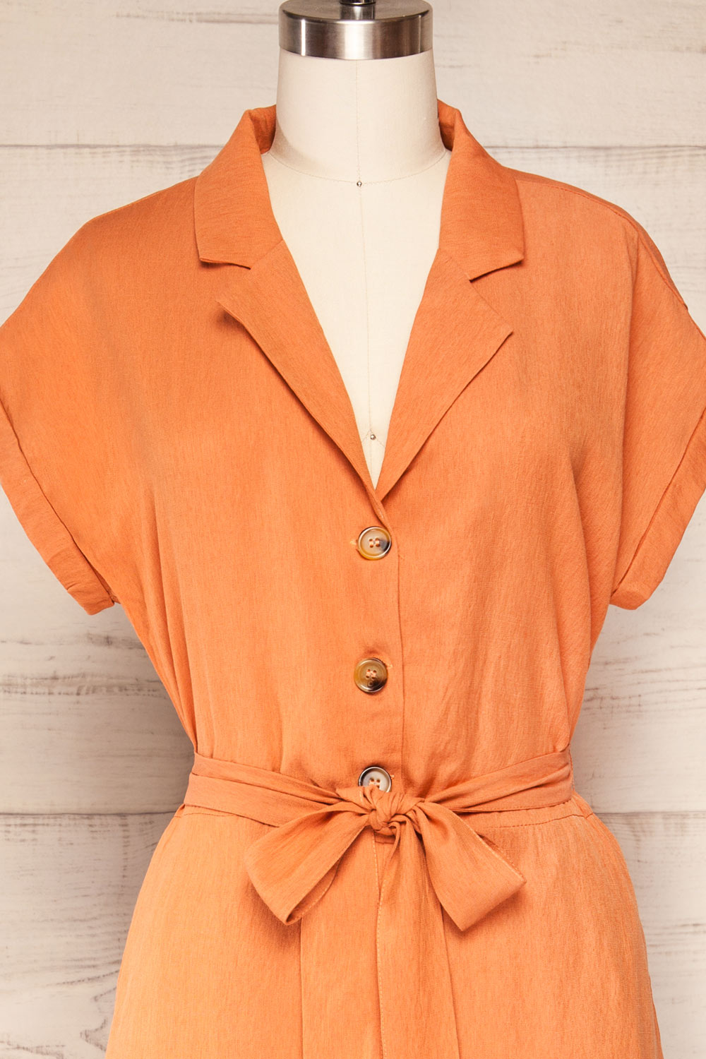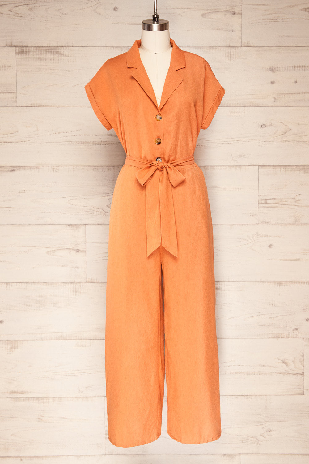Cette ravissante combinaison à jambe large deviendra un de vos morceaux favoris de cette saison! Sa coupe fluide et son doux tissu léger vous permettront de profiter de votre journée dans le plus grand des conforts. Son col chemise et ses manches courtes lui donneront un look décontracté et versatile que vous adorerez. Utilisez sa ceinture de tissu pour cintrer la taille à votre goût.