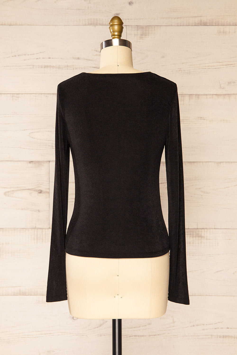 Soyez élégante sans effort avec ce haut translucide noir! Ce haut en tissu extensible comporte une encolure baveuse pour flatter votre silhouette tandis que les manches longues vous gardent au chaud et mystérieuse. Démontrez votre style avec ce superbe haut!