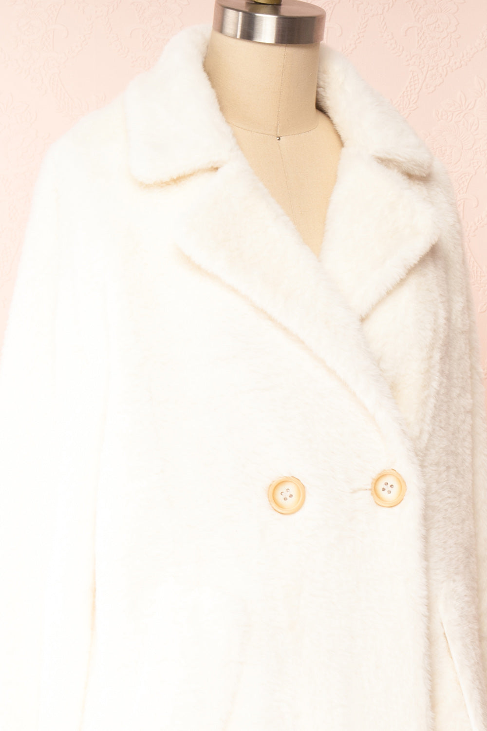 Kristalo | Manteau Blanc Surdimensionné en Fausse Fourrure