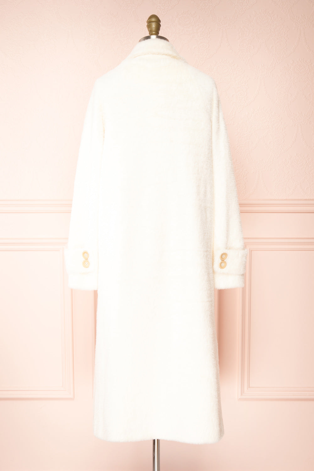 Vous êtes sûr de faire tourner les têtes où que vous alliez dans ce luxueux manteau en fausse fourrure blanche. Son col tailleur, sa longueur et sa silhouette typique de manteau trench vous donneront un look classique intemporel tout en vous gardant bien au chaud. Sa coupe surdimensionnée viendra parfaitement complimenter vos tenues les plus habillées, quelque soit l'occasion. Ses deux boutons avant ainsi que ses poches latérales s'avéreront certainement utiles.