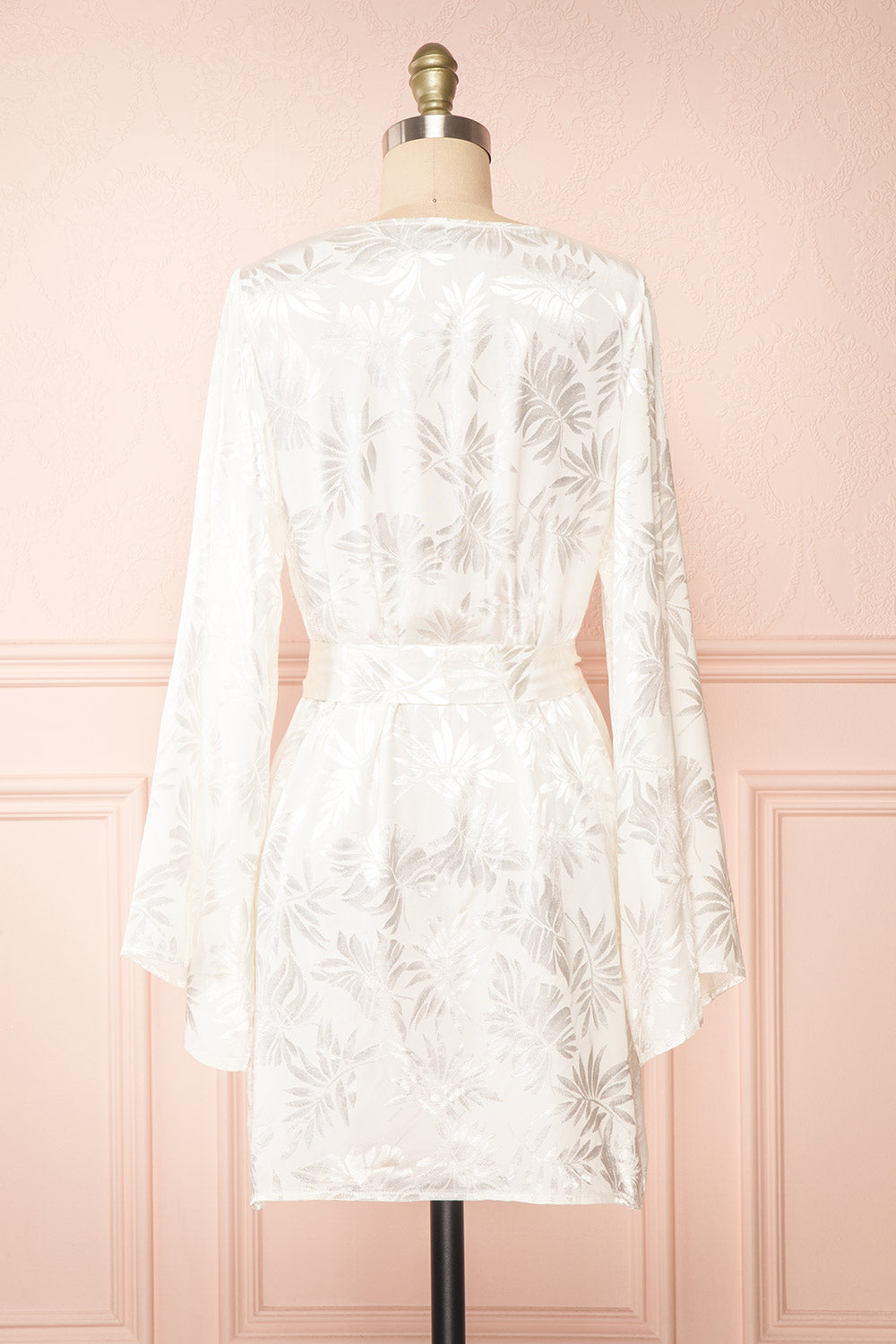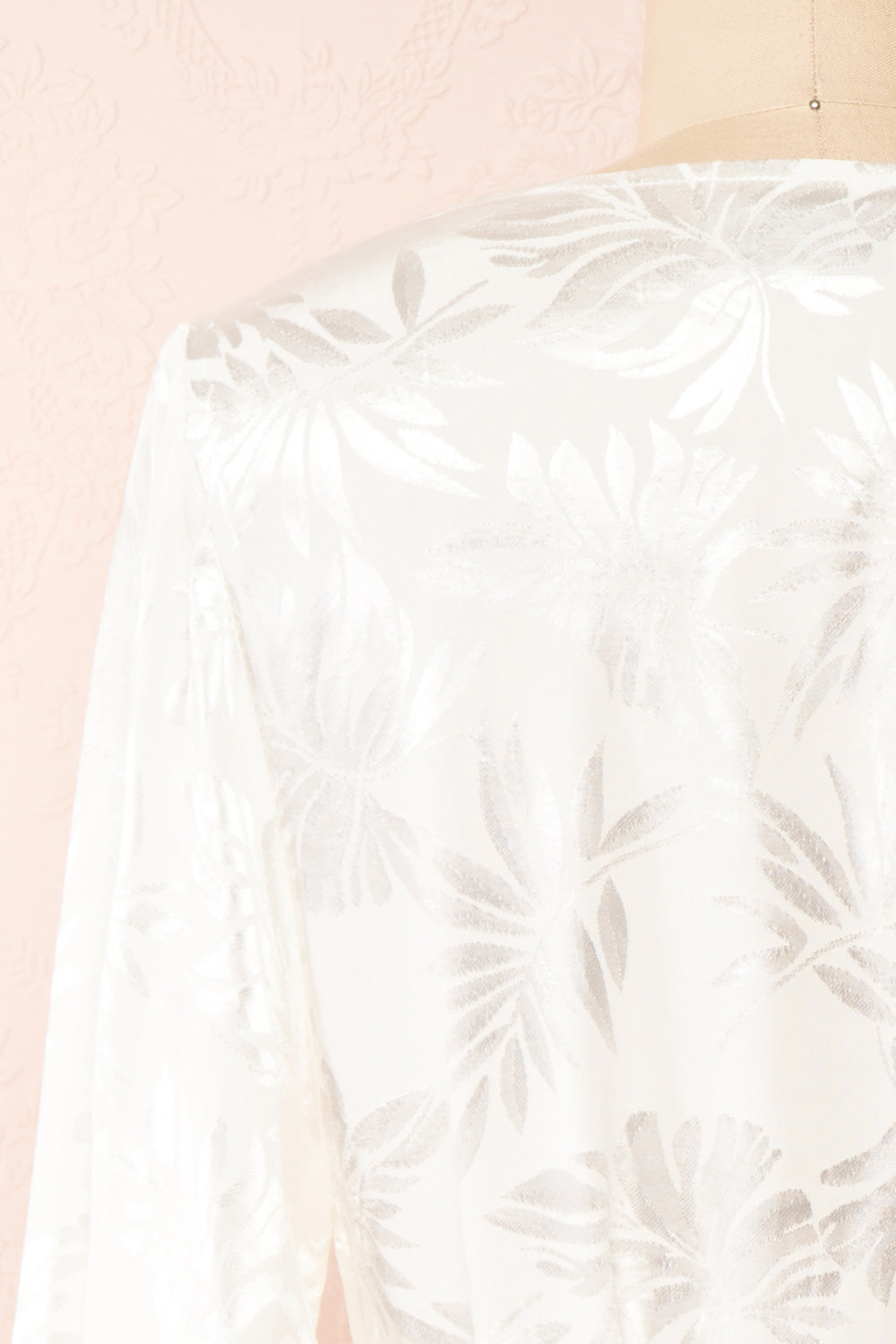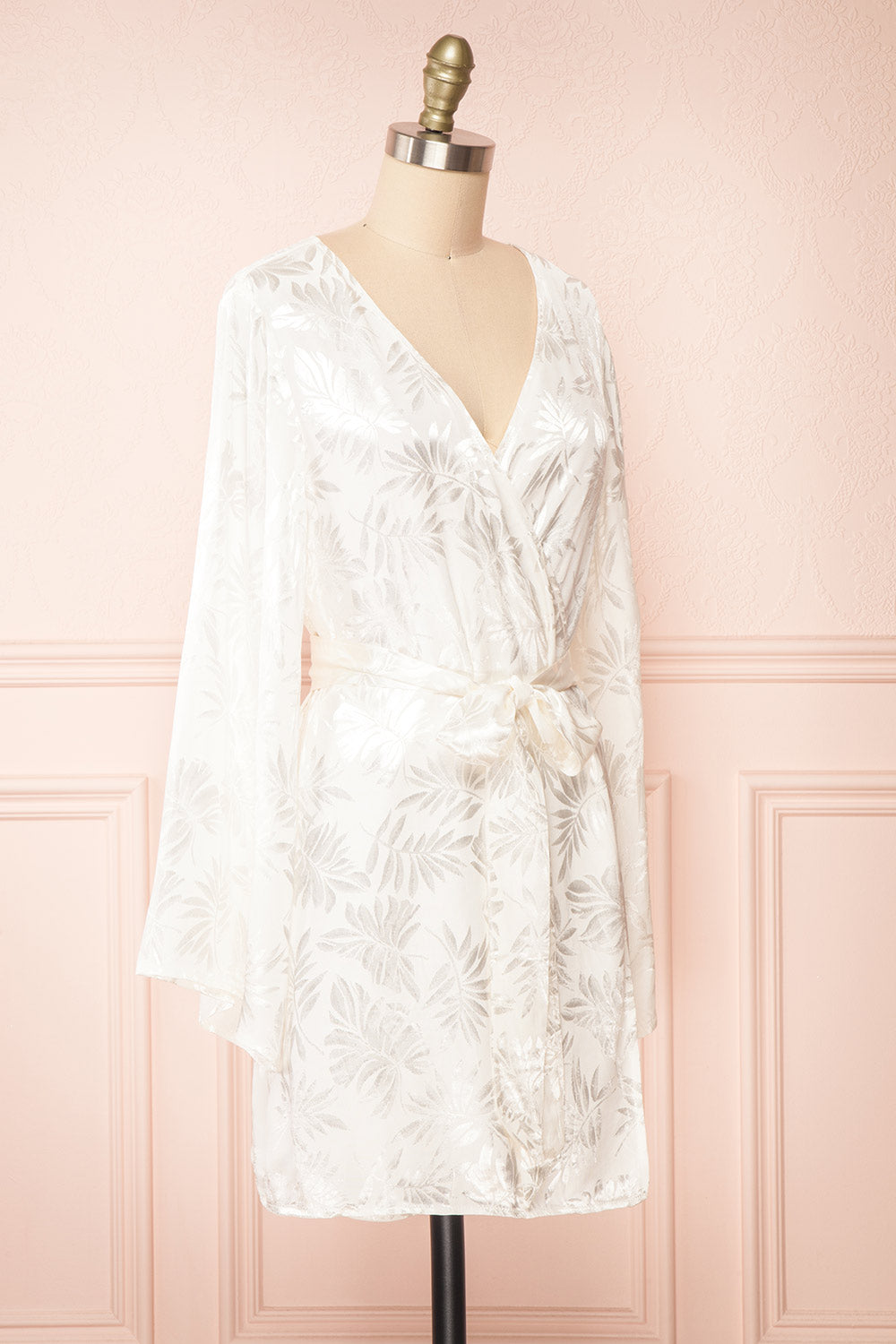 Cette jolie robe portefeuille vous offrira le style séduisant que vous désirez! Vous pourrez l'ajuster confortablement, tout en soulignant vos courbes, grâce à sa ceinture de taille en tissu. Son tissu léger et satiné ainsi que sa doublure en chiffon vous offriront liberté de mouvement et confort. Vous aimerez également son imprimé délicat à motif de feuilles ainsi que son encolure en V qui révèlera votre peau!