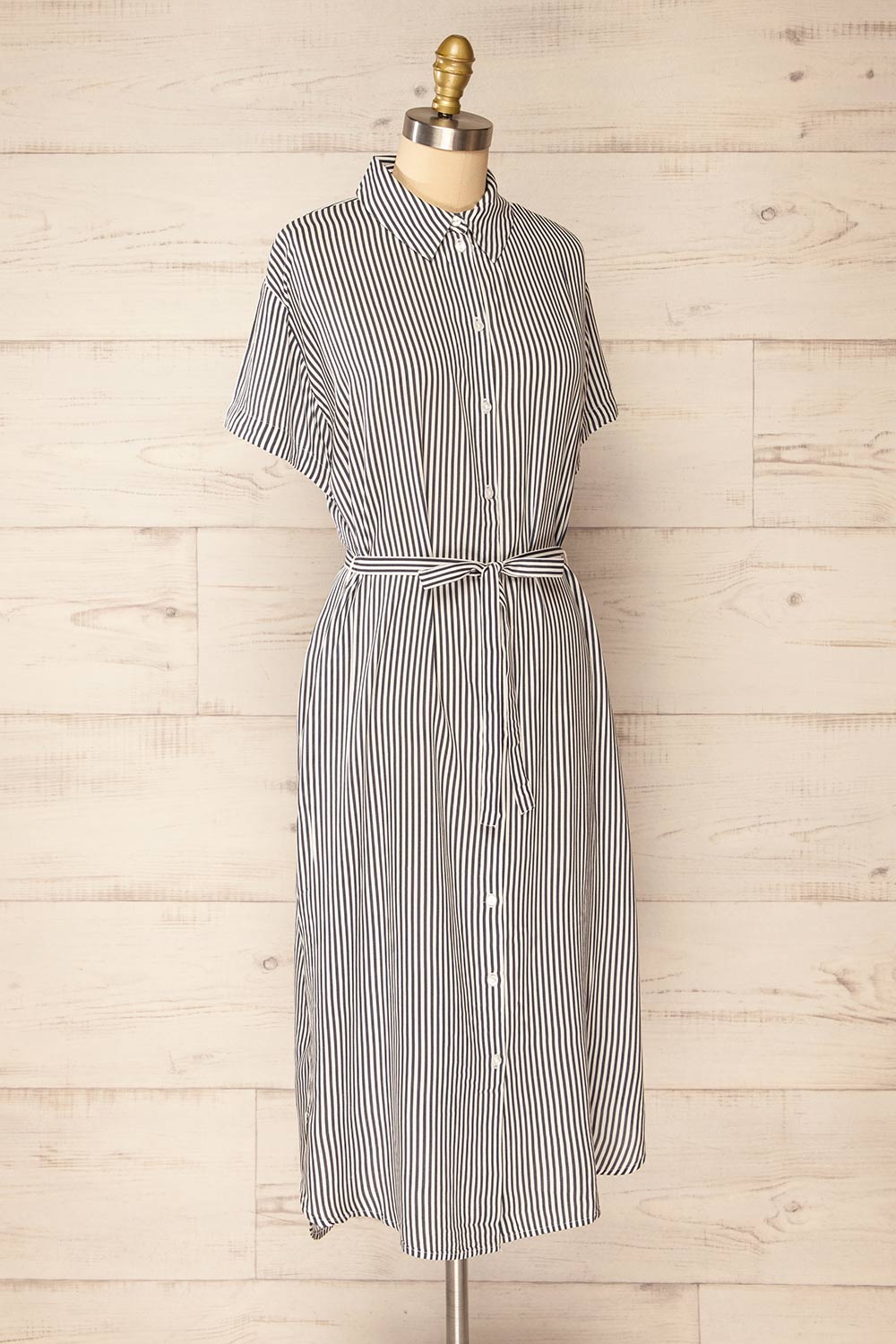 Célébrez l'arrivée de l'été avec cette adorable robe chemise rayée! Vous adorerez sa coupe ample ainsi que son tissu léger, doux et confortable, le tout parfait pour les journées chaudes de la saison. La ceinture, que vous pourrez enlever au besoin, vous permettra d'ajuster la robe à votre façon. Ajoutez-y une paire de baskets stylée et une paire de lunettes pour un ensemble tendance garanti!