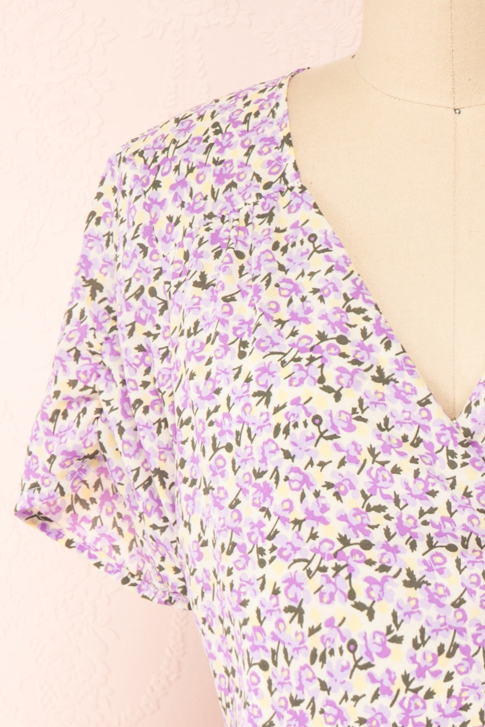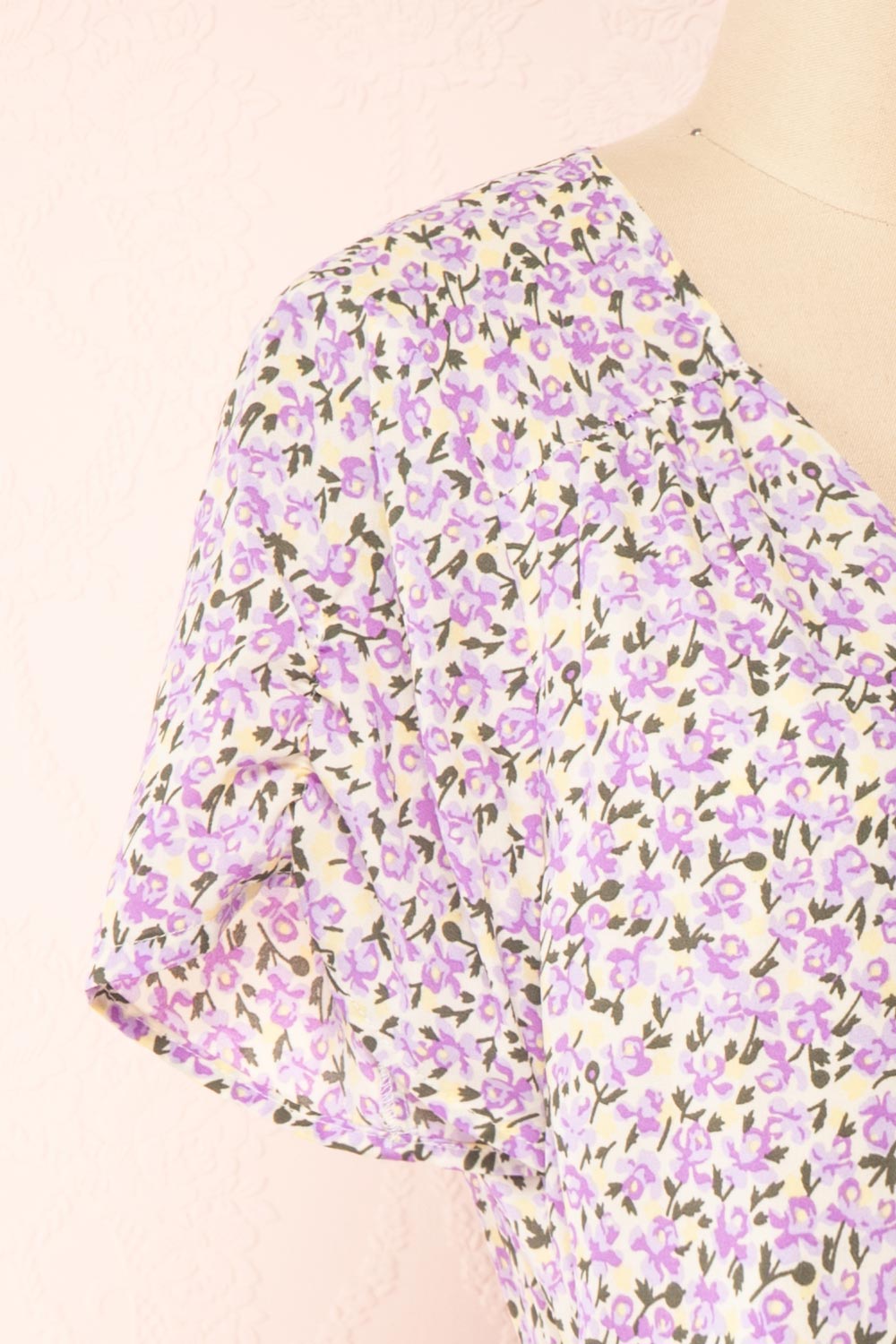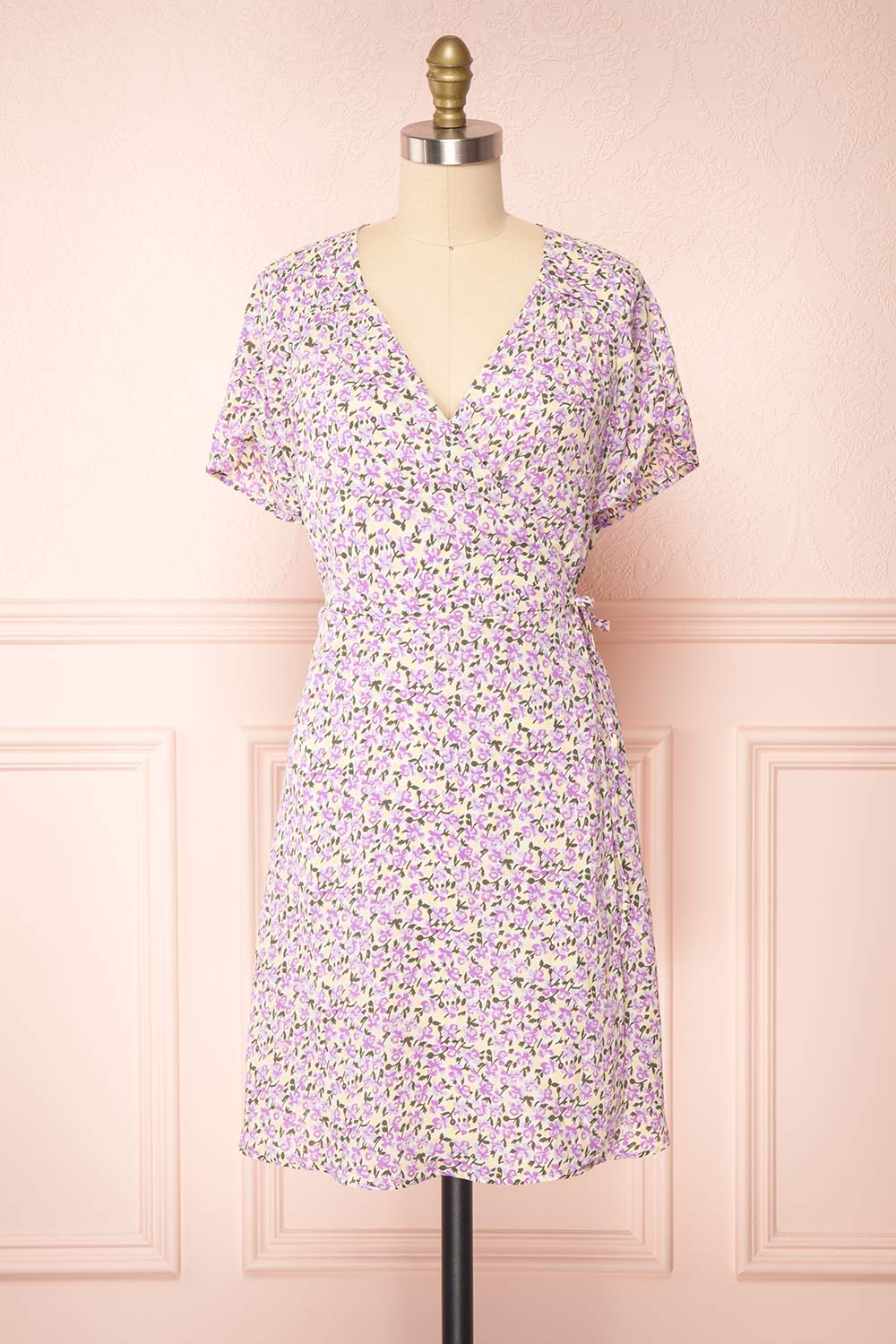 Lauryna | Robe Portefeuille Fleurie à Manches Courtes