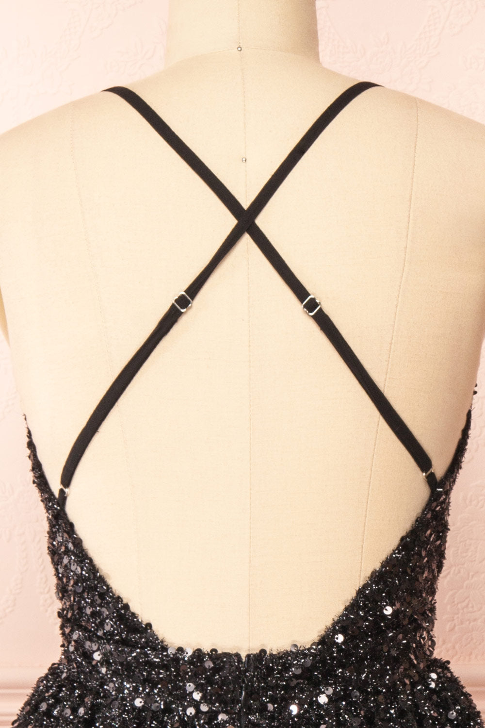 Layla Noir | Robe Courte avec Paillettes à Dos Nu
