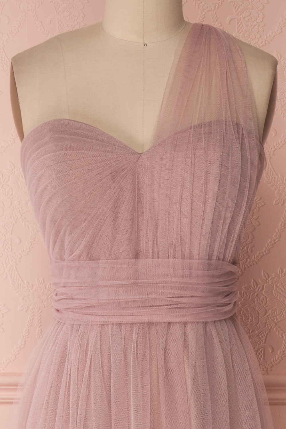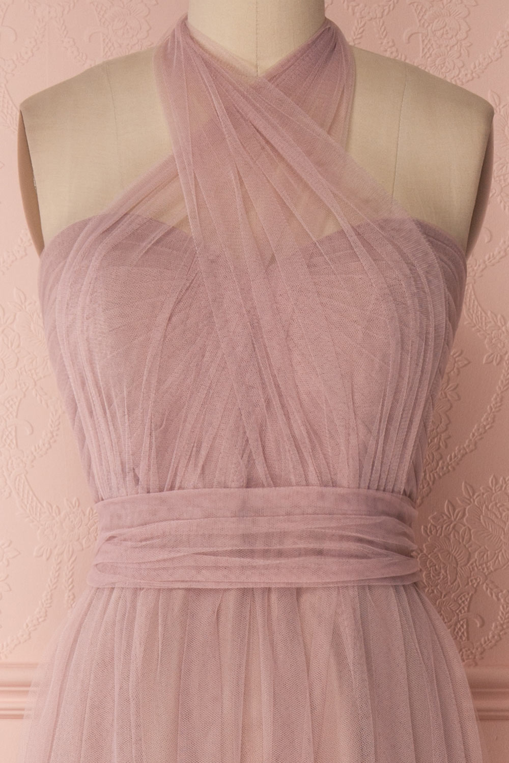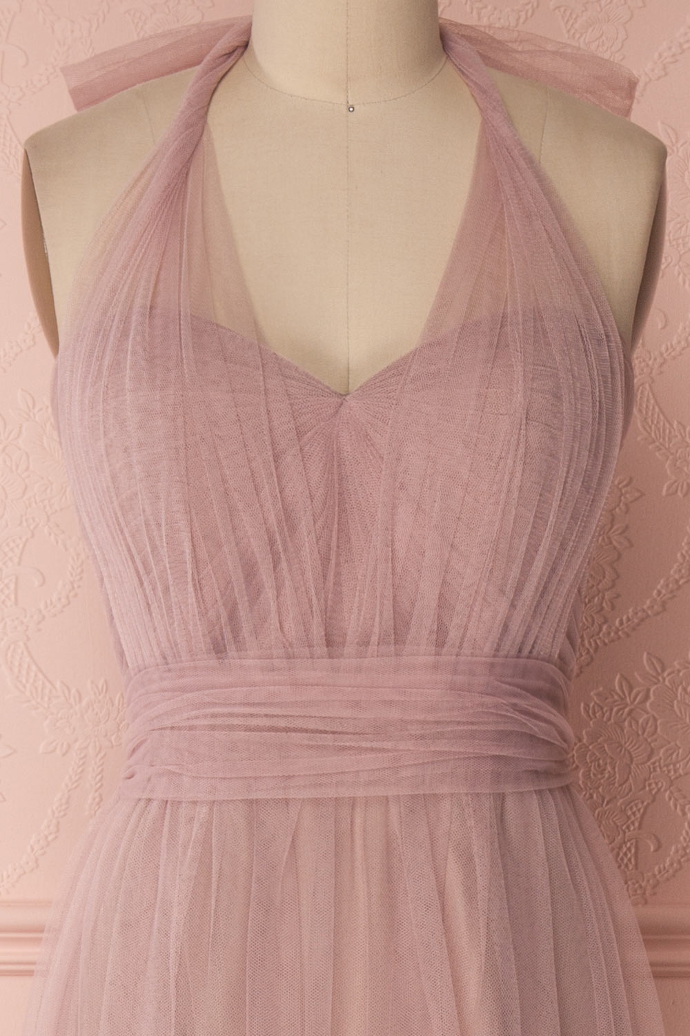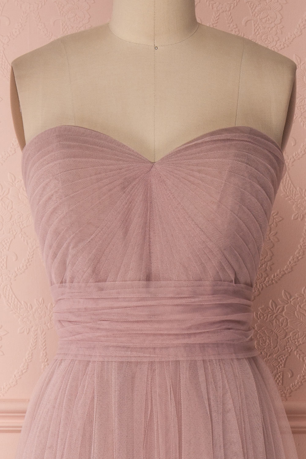 Linaya Rose Cendré | Robe Bustier en Chiffon Drapé