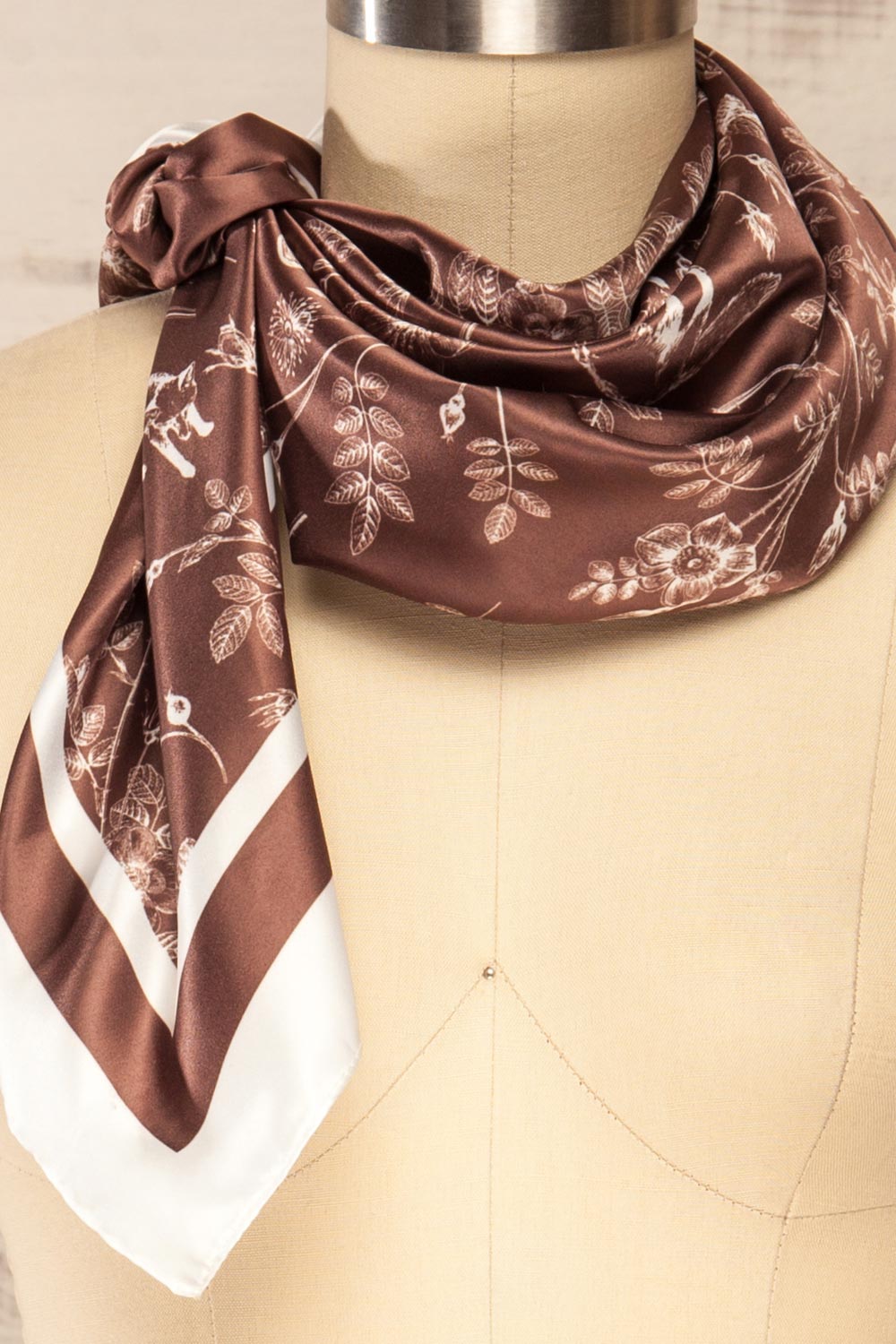 Lisieux Brun | Foulard Satiné à Imprimé Forestier